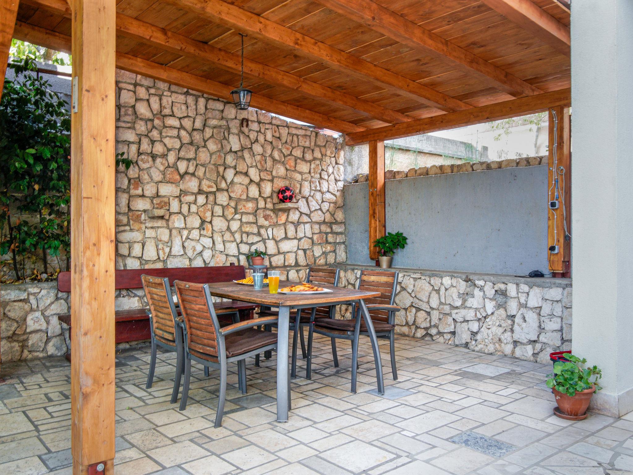Apartment house "Šmit". 1.5 km from the centre of Novi Vinodolski, in a sunny position, 2 km from the sea, 2 km from the beach. Private: property 300 m2 (fenced), garden 100 m2 with wildlife garden. Arbour (20 m2), garden furniture, barbecue. In the house: internet access, air conditioning. Parking at the house on the premises. Shop 200 m, restaurant 500 m, bus stop 800 m, shingle beach 2 km.