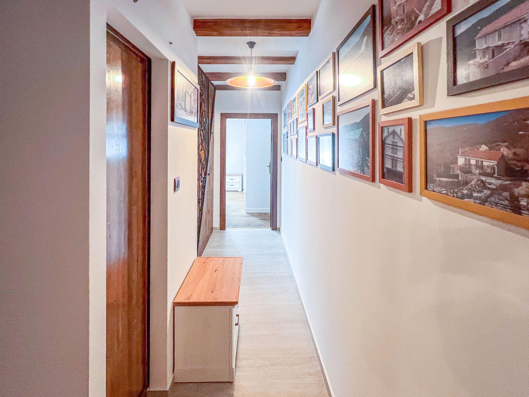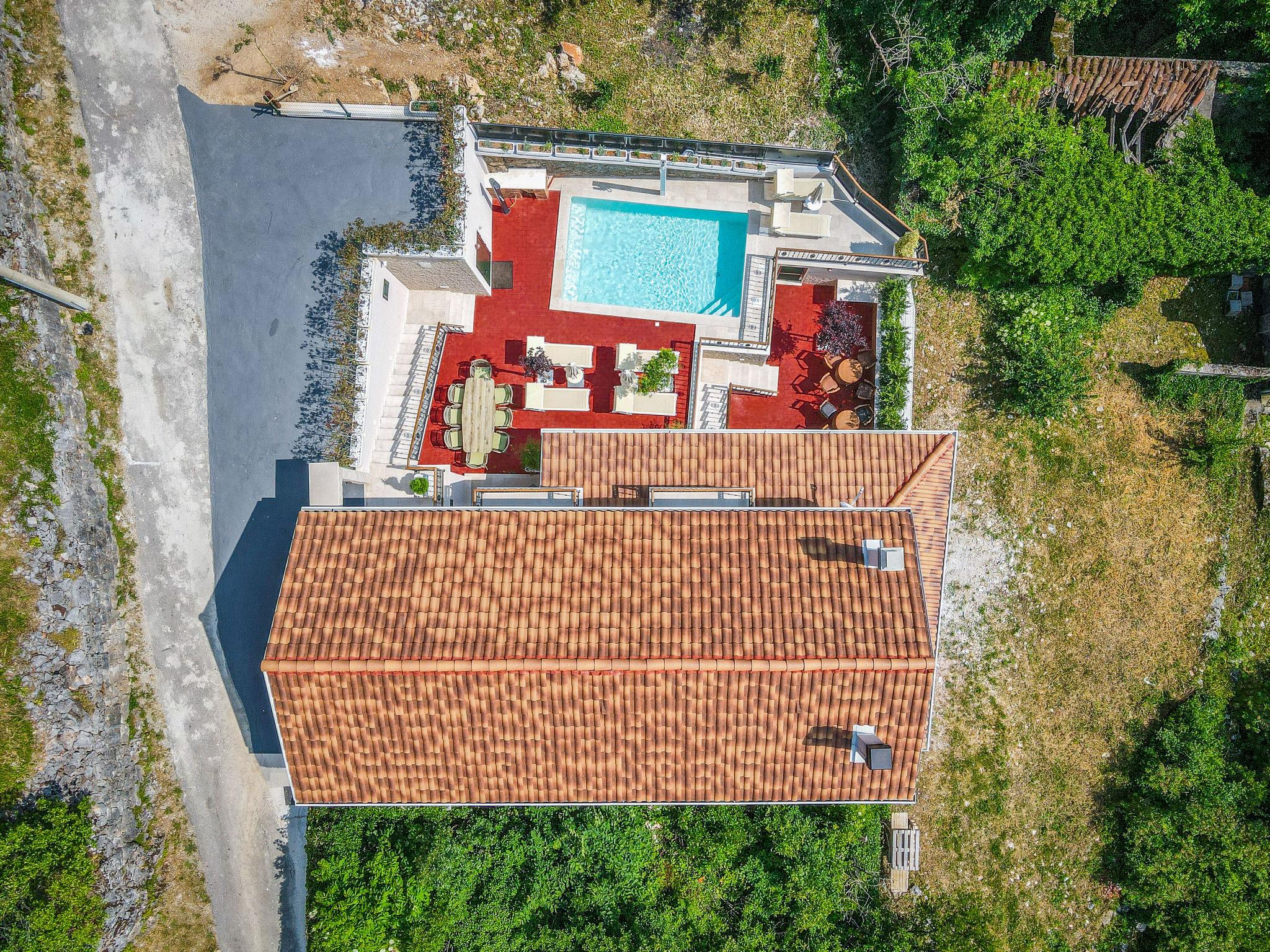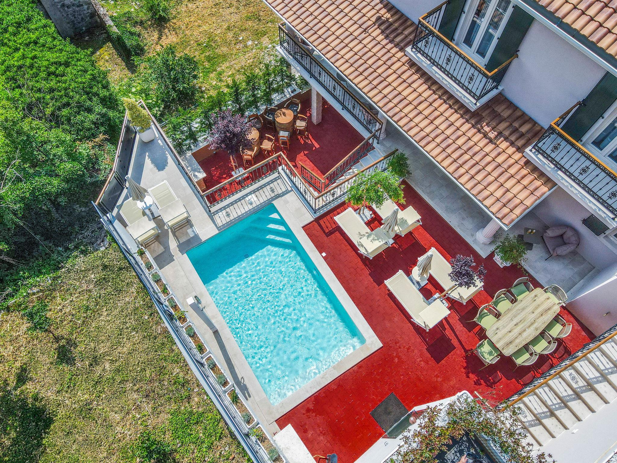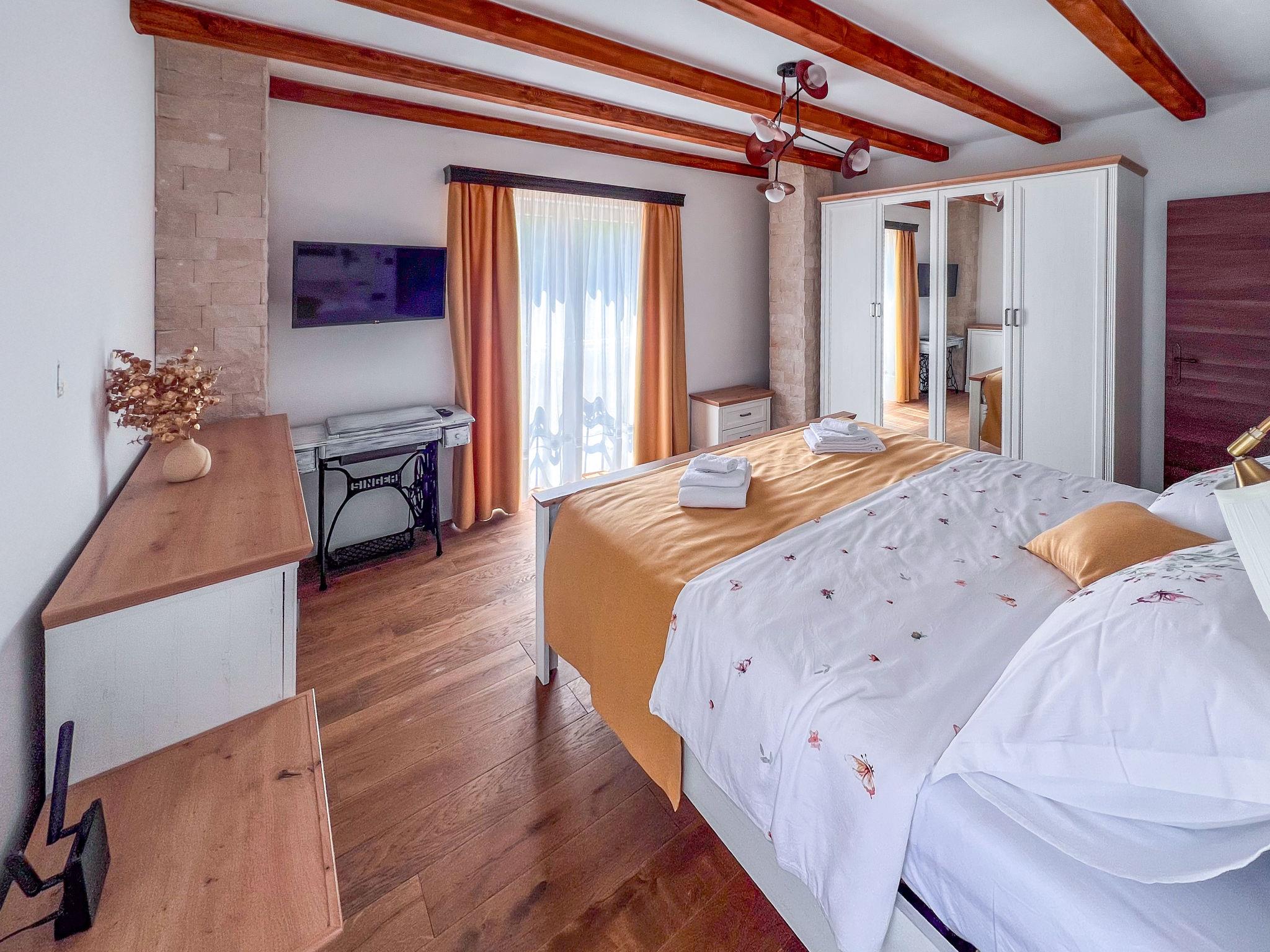 Gornji Zagon: Single-family house "Vila Jurja", 3 storeys, renovated in 2025. Above Novi Vinodolski 16 km from the centre of Novi Vinodolski, 15 km from the sea, in the countryside. Private: property 350 m2 (fenced), swimming pool angular, heated (5 x 3 m, depth 135 cm, seasonal availability: 01.May. - 30.Sep.) with internal staircase and shutter cover. Outdoor shower, barbecue, pool maintenance by the owner/gardener. In the house: internet access, table football, washing machine, tumble dryer. Narrow motor access to the house. Parking (for 3 cars) at the house on the premises. Shop 15 km, restaurant 4 km, café 4 km, bus stop 4 km, pebble beach 15 km.