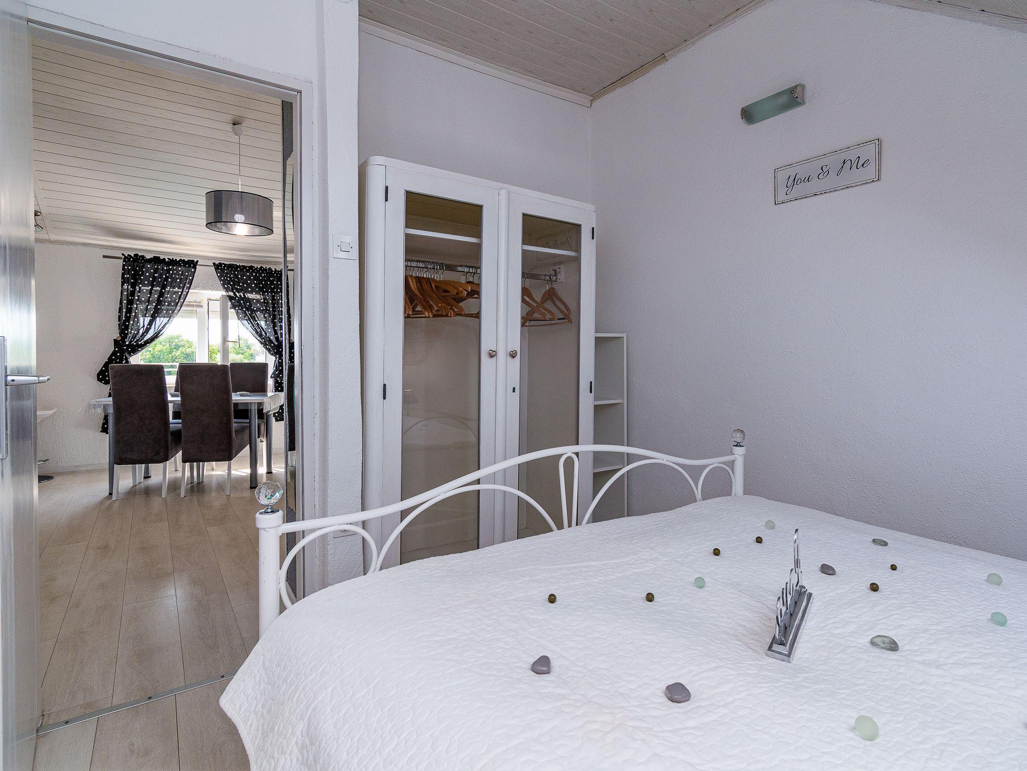 Ferienwohnung bietet Platz für 5 Gäste. Die Betten sind in Schlafzimmern, die es 2 gibt, und in Wohnzimmer, innerhalb einer Gesamtfläche von 42m2, angeordnet. Die Gäste haben eine eigene Terrasse zur Verfügung, auf der sie in warmen Sommernächten genießen können. Das Apartment bietet Meerblick. Es ist erlaubt, Speisen auf dem Gemeinschafts-Grill vorzubereiten. Während ihres Aufenthalts können Gäste das gemeinsam zur Nutzung stehende Schwimmbad benutzen. IM PREIS INBEGRIFFEN: Kurtaxe, Endreinigung, Klimatisierung, Pool, Parkplatz, Internet. Die Verfügbarkeit zusätzlicher Dienstleistungen in Ihrem reservierten Termin und die Preise derselben (falls nicht aufgeführt) müssen im Voraus überprüft werden. Zusätzliche Dienstleistungen die in der Zahlungsaufforderung nicht aufgeführt sind werden direkt beim Vermieter bezahlt, angenommen der Gast nutzt auch diese.
