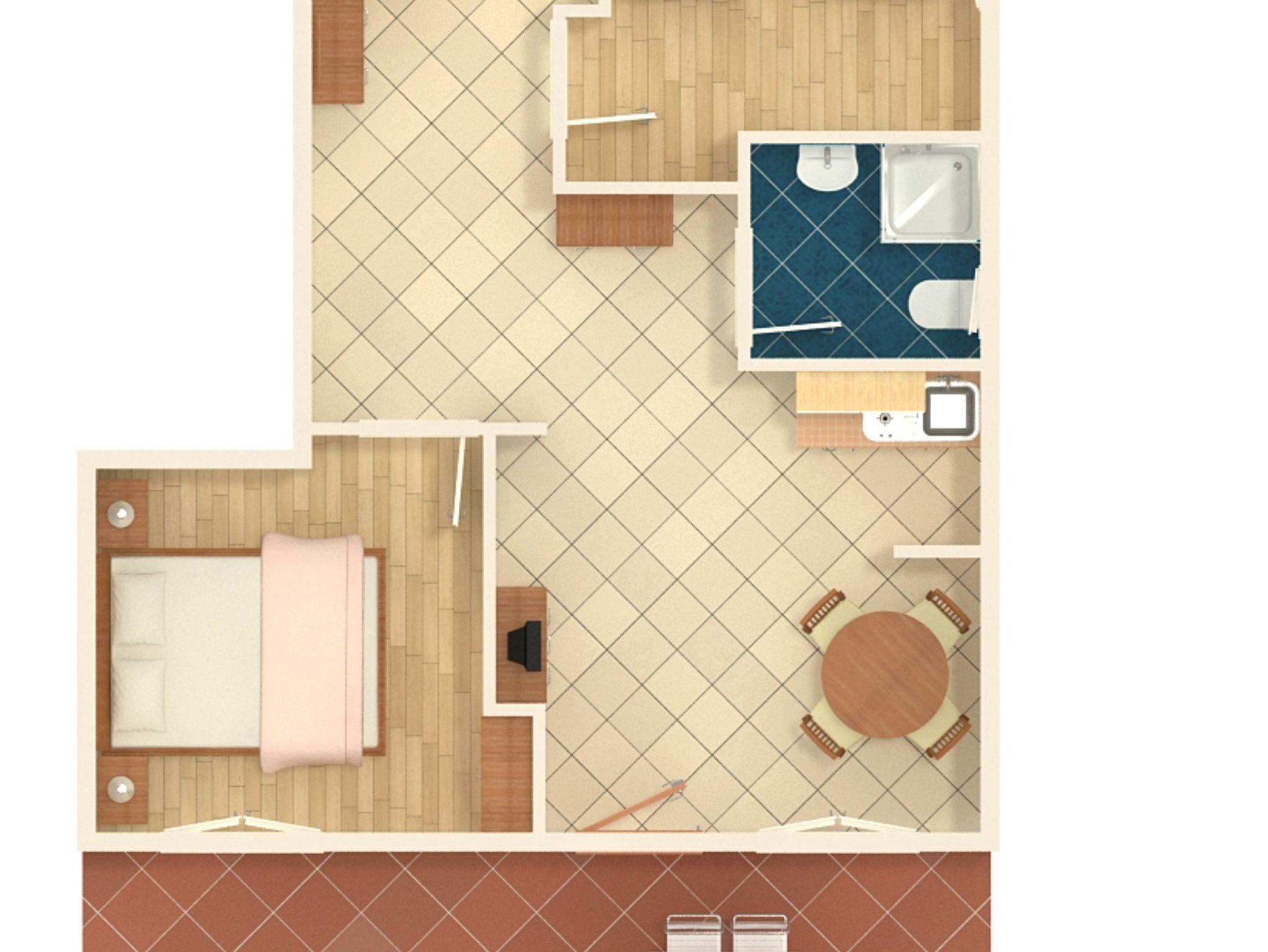 Ferienwohnung bietet Platz für 5 Gäste. Die Betten sind in Schlafzimmern, die es 2 gibt, und in Wohnzimmer, innerhalb einer Gesamtfläche von 41m2, angeordnet. Die Gäste haben eine eigene Terrasse zur Verfügung, auf der sie in warmen Sommernächten genießen können. Es ist erlaubt, Speisen auf dem Gemeinschafts-Grill vorzubereiten. In der Unterkunftseinheit besteht die Möglichkeit des Mitbringens von Haustieren gegen Aufpreis. IM PREIS INBEGRIFFEN: Kurtaxe, Endreinigung, Parkplatz, Internet. VERBINDLICHE ZUSÄTZLICHE KOSTEN: Aufzahlung für Kurzaufenthalte (prozentualer Zuschlag pro Nächtigungsanzahl: 30% - 1, 20% - 2, 10% - 3). UNVERBINDLICHE ZUSÄTZLICHE KOSTEN: Wäschewaschen (7,00 € Waschen), Haustiere (10,00 € pro Nacht). Die Verfügbarkeit zusätzlicher Dienstleistungen in Ihrem reservierten Termin und die Preise derselben (falls nicht aufgeführt) müssen im Voraus überprüft werden. Zusätzliche Dienstleistungen die in der Zahlungsaufforderung nicht aufgeführt sind werden direkt beim Vermieter bezahlt, angenommen der Gast nutzt auch diese.