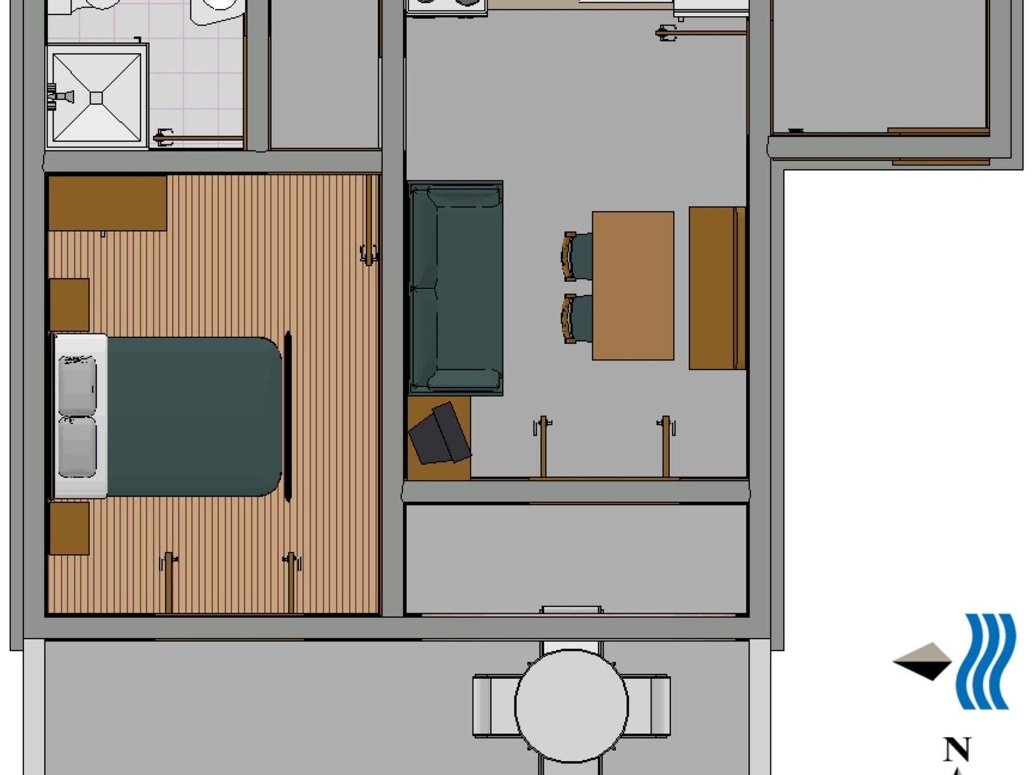 Ferienwohnung bietet Platz für 4 Gäste. Die Betten sind in Schlafzimmern, die es 1 gibt, und in Esszimmer, innerhalb einer Gesamtfläche von 35m2, angeordnet. Die Gäste haben eine eigene Terrasse zur Verfügung, auf der sie in warmen Sommernächten genießen können. Es ist erlaubt, Speisen auf dem Gemeinschafts-Grill vorzubereiten. In der Unterkunftseinheit besteht die Möglichkeit des Mitbringens von Haustieren gegen Aufpreis. IM PREIS INBEGRIFFEN: Kurtaxe, Endreinigung, Parkplatz, Internet, Bügeleisen, Bügelbrett, Föhn. VERBINDLICHE ZUSÄTZLICHE KOSTEN: Aufzahlung für Kurzaufenthalte (prozentualer Zuschlag pro Nächtigungsanzahl: 30% - 1, 20% - 2, 10% - 3). UNVERBINDLICHE ZUSÄTZLICHE KOSTEN: Klimatisierung (10,00 € pro Nacht), Wäschewaschen (10,00 € Waschen), Haustiere (15,00 € pro Nacht). Die Verfügbarkeit zusätzlicher Dienstleistungen in Ihrem reservierten Termin und die Preise derselben (falls nicht aufgeführt) müssen im Voraus überprüft werden. Zusätzliche Dienstleistungen die in der Zahlungsaufforderung nicht aufgeführt sind werden direkt beim Vermieter bezahlt, angenommen der Gast nutzt auch diese. Ermäßigung auf den Grundpreis: Gratistag 21=19 (bei einem Aufenthalt von 21 Tagen oder mehr erhalten Sie 2 Gratistage für den Aufenthalt bis 31.12.26).