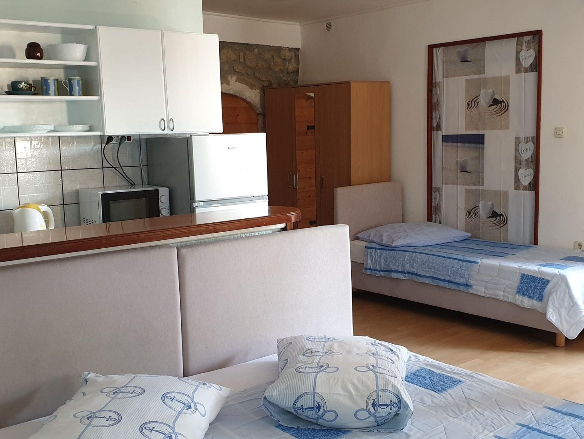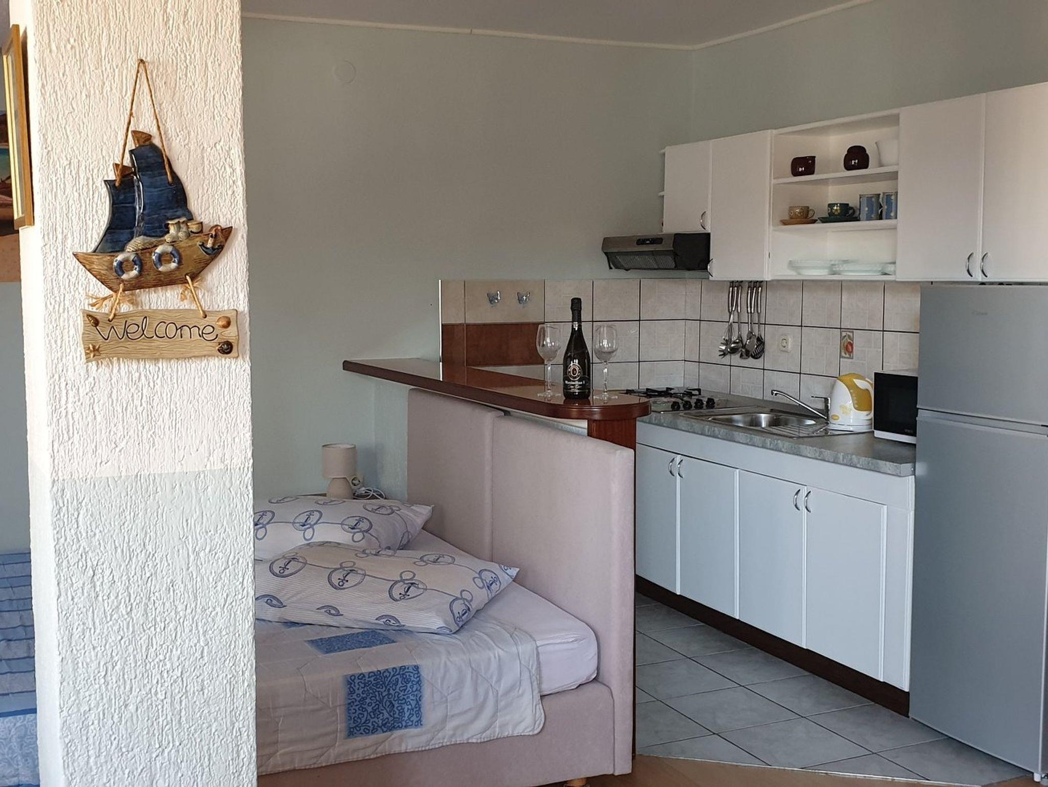 Studio bietet Platz für 3 Gäste. Die Betten sind in Schlafzimmern, die es 1 gibt, innerhalb einer Gesamtfläche von 33m2, angeordnet. Die Gäste haben eine eigene Terrasse zur Verfügung, auf der sie in warmen Sommernächten genießen können. Das Studio-Apartment bietet Meerblick. Es ist erlaubt, Speisen auf dem Gemeinschafts-Grill vorzubereiten. In der Unterkunftseinheit besteht die Möglichkeit des Mitbringens von Haustieren gegen Aufpreis. IM PREIS INBEGRIFFEN: Kurtaxe, Endreinigung, Klimatisierung, Parkplatz, Internet, tragbarer Grill. VERBINDLICHE ZUSÄTZLICHE KOSTEN: Aufzahlung für Kurzaufenthalte (prozentualer Zuschlag pro Nächtigungsanzahl: 30% - 1, 20% - 2, 10% - 3). UNVERBINDLICHE ZUSÄTZLICHE KOSTEN: Haustiere (5,00 € pro Nacht). Die Verfügbarkeit zusätzlicher Dienstleistungen in Ihrem reservierten Termin und die Preise derselben (falls nicht aufgeführt) müssen im Voraus überprüft werden. Zusätzliche Dienstleistungen die in der Zahlungsaufforderung nicht aufgeführt sind werden direkt beim Vermieter bezahlt, angenommen der Gast nutzt auch diese.