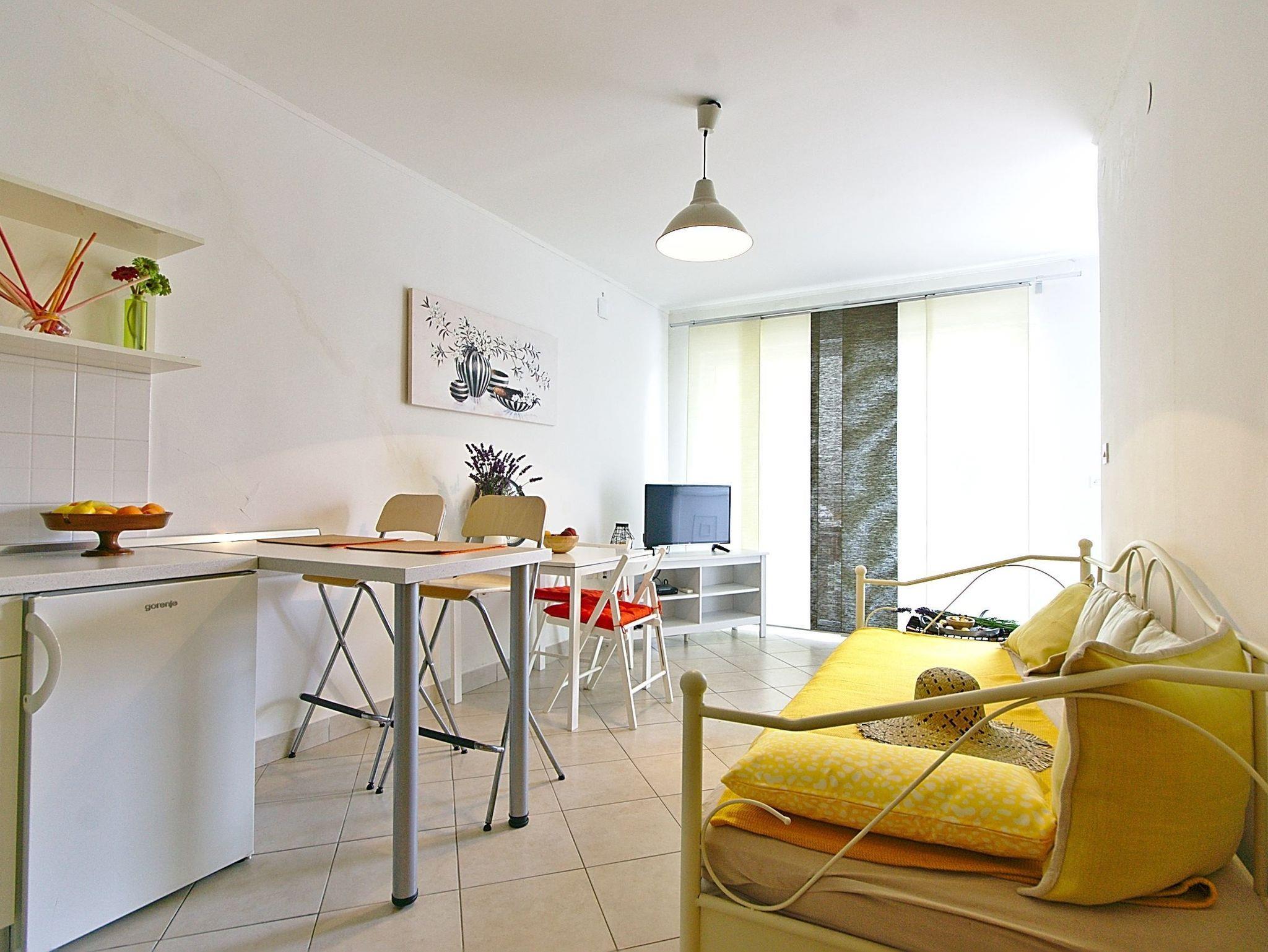 Ferienwohnung bietet Platz für 3 Gäste. Die Betten sind in Schlafzimmern, die es 1 gibt, und in Wohnzimmer, innerhalb einer Gesamtfläche von 35m2, angeordnet. Die Gäste haben eine eigene Terrasse zur Verfügung, auf der sie in warmen Sommernächten genießen können. Es ist erlaubt, Speisen auf dem Gemeinschafts-Grill vorzubereiten. IM PREIS INBEGRIFFEN: Kurtaxe, Endreinigung, Klimatisierung, Parkplatz, Internet, Bügeleisen, Bügelbrett, Föhn. VERBINDLICHE ZUSÄTZLICHE KOSTEN: Aufzahlung für Kurzaufenthalte (prozentualer Zuschlag pro Nächtigungsanzahl: 30% - 1, 20% - 2, 10% - 3). Die Verfügbarkeit zusätzlicher Dienstleistungen in Ihrem reservierten Termin und die Preise derselben (falls nicht aufgeführt) müssen im Voraus überprüft werden. Zusätzliche Dienstleistungen die in der Zahlungsaufforderung nicht aufgeführt sind werden direkt beim Vermieter bezahlt, angenommen der Gast nutzt auch diese.