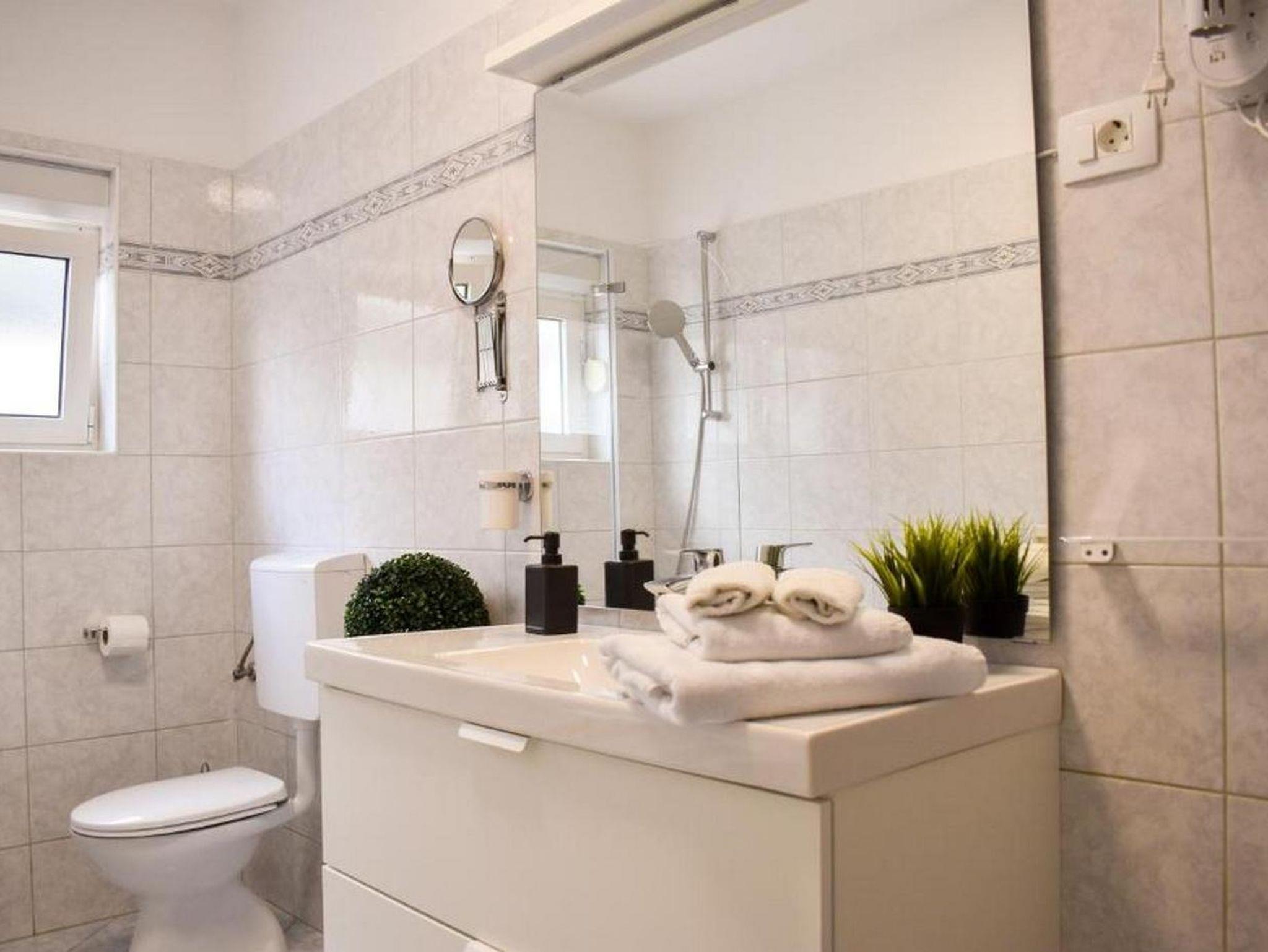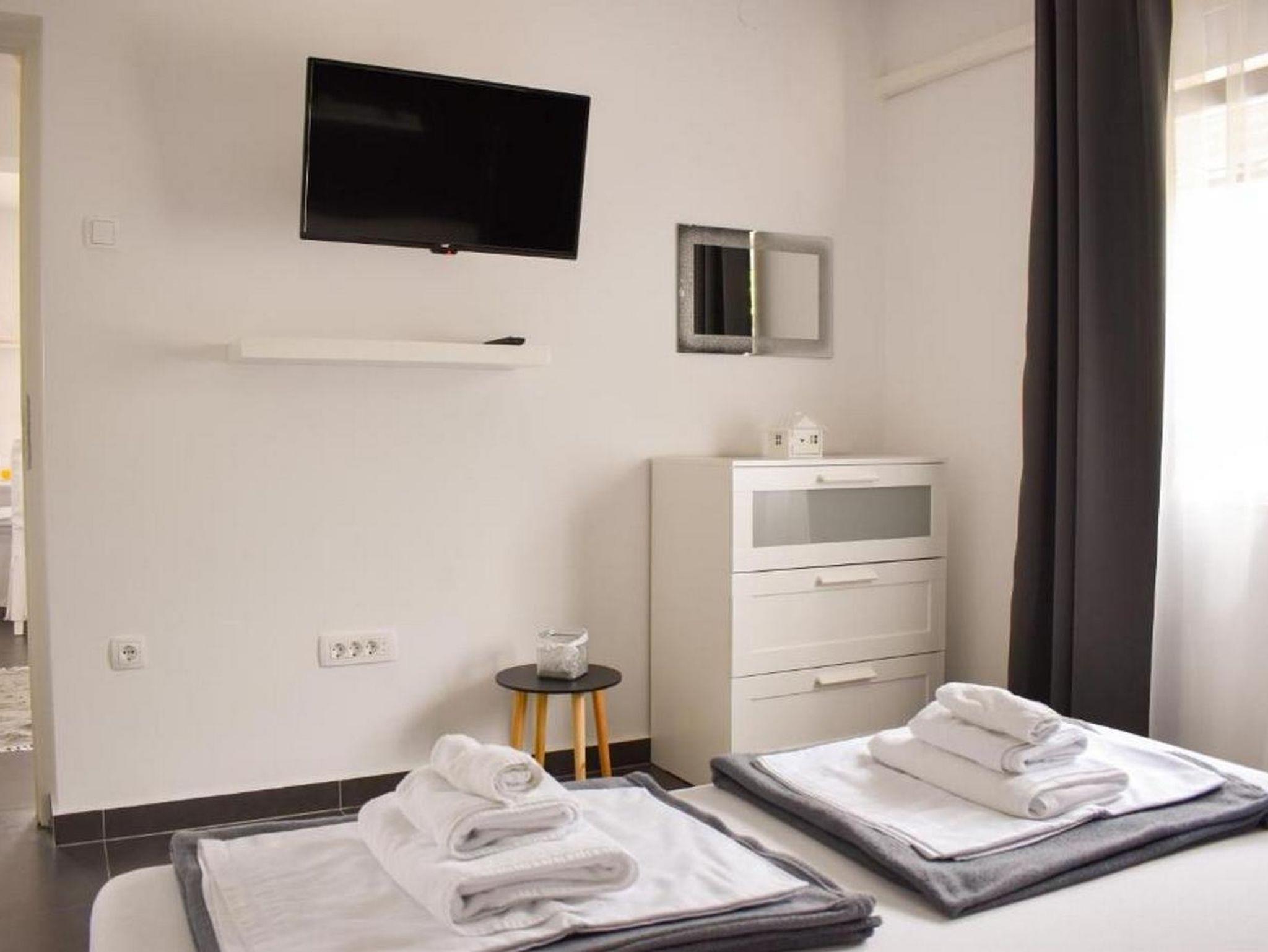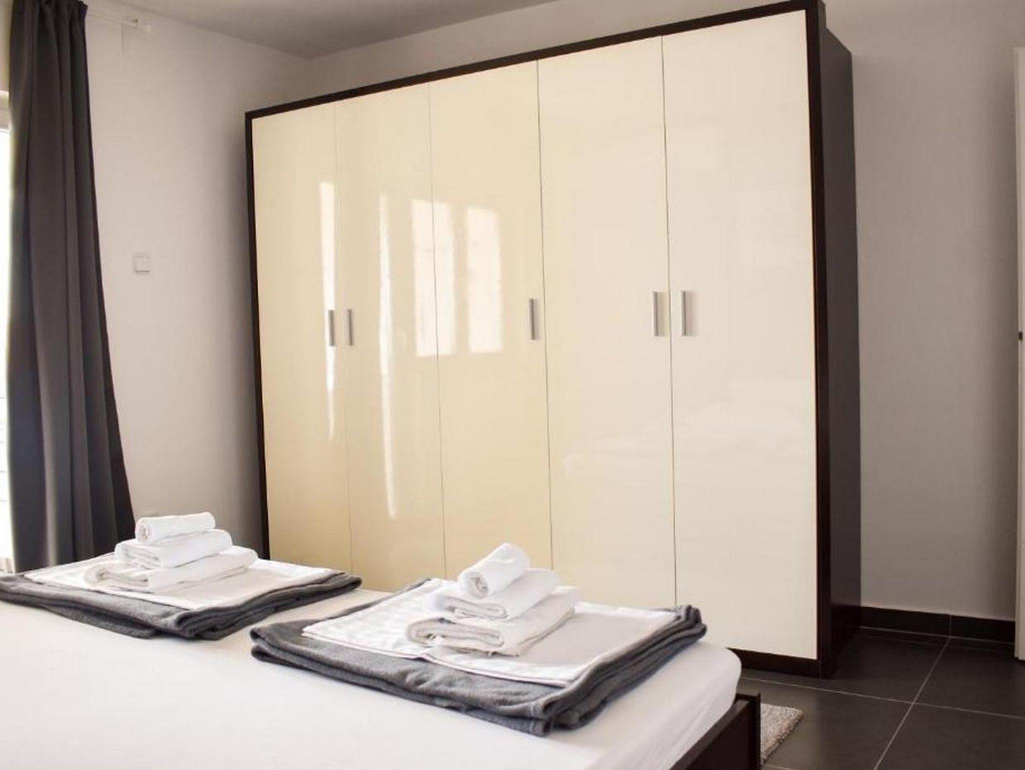 Ferienwohnung bietet Platz für 4 Gäste. Die Betten sind in Schlafzimmern, die es 2 gibt, innerhalb einer Gesamtfläche von 75m2, angeordnet. Die Gäste haben eine eigene Terrasse zur Verfügung, auf der sie in warmen Sommernächten genießen können. Das Apartment bietet Meerblick. Es ist erlaubt, Speisen auf dem Gemeinschafts-Grill vorzubereiten. IM PREIS INBEGRIFFEN: Kurtaxe, Endreinigung, Parkplatz, Internet, Wäschewaschen, Kinderbett, Bügeleisen, Bügelbrett, Föhn. VERBINDLICHE ZUSÄTZLICHE KOSTEN: Aufzahlung für Kurzaufenthalte (prozentualer Zuschlag pro Nächtigungsanzahl: 30% - 1, 20% - 2, 10% - 3). UNVERBINDLICHE ZUSÄTZLICHE KOSTEN: Klimatisierung (21,00 € pro Nacht). Die Verfügbarkeit zusätzlicher Dienstleistungen in Ihrem reservierten Termin und die Preise derselben (falls nicht aufgeführt) müssen im Voraus überprüft werden. Zusätzliche Dienstleistungen die in der Zahlungsaufforderung nicht aufgeführt sind werden direkt beim Vermieter bezahlt, angenommen der Gast nutzt auch diese.