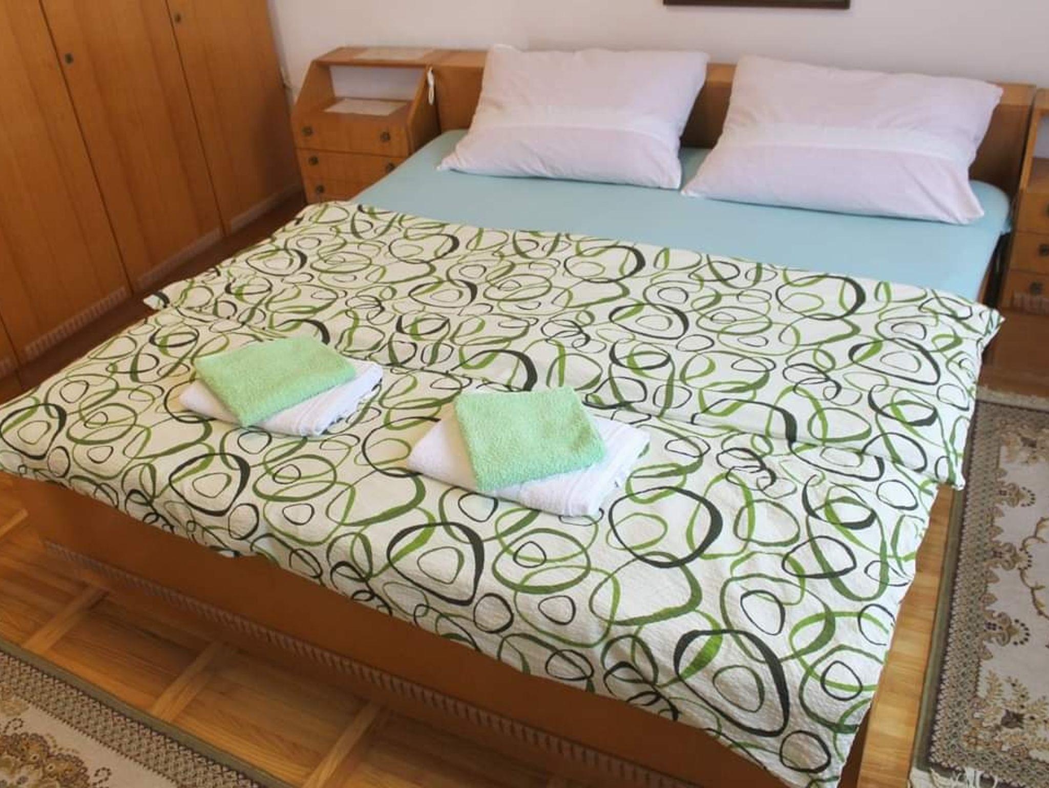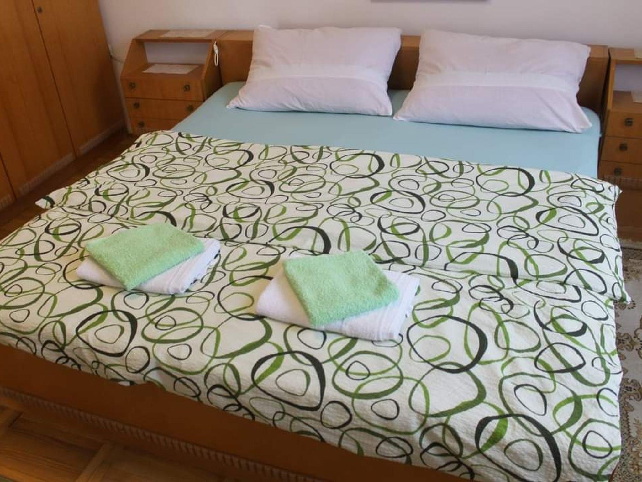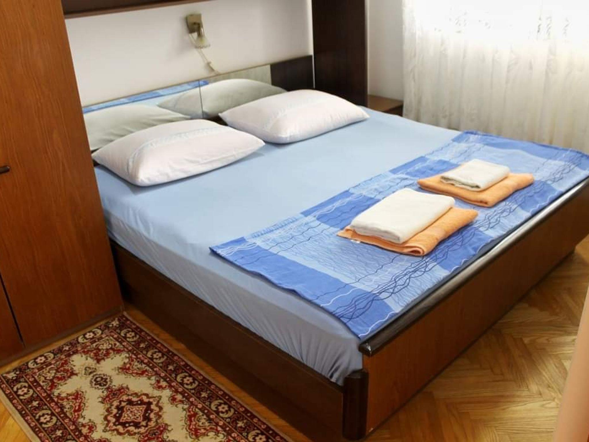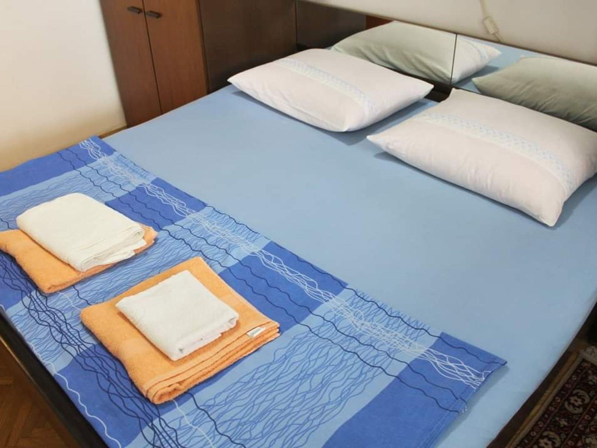 Ferienwohnung bietet Platz für 5 Gäste. Die Betten sind in Schlafzimmern, die es 2 gibt, und in Wohnzimmer, innerhalb einer Gesamtfläche von 69m2, angeordnet. Die Gäste haben einen eigenen Balkon zur Verfügung, auf der sie in warmen Sommernächten genießen können. Es ist erlaubt, Speisen auf dem Gemeinschafts-Grill vorzubereiten. In der Unterkunftseinheit besteht die Möglichkeit des Mitbringens von Haustieren gegen Aufpreis. IM PREIS INBEGRIFFEN: Kurtaxe, Endreinigung, Klimatisierung, Parkplatz, Internet, Bügeleisen, Bügelbrett. VERBINDLICHE ZUSÄTZLICHE KOSTEN: Aufzahlung für Kurzaufenthalte (prozentualer Zuschlag pro Nächtigungsanzahl: 30% - 1, 20% - 2, 10% - 3). UNVERBINDLICHE ZUSÄTZLICHE KOSTEN: Haustiere (10,00 € pro Nacht). Die Verfügbarkeit zusätzlicher Dienstleistungen in Ihrem reservierten Termin und die Preise derselben (falls nicht aufgeführt) müssen im Voraus überprüft werden. Zusätzliche Dienstleistungen die in der Zahlungsaufforderung nicht aufgeführt sind werden direkt beim Vermieter bezahlt, angenommen der Gast nutzt auch diese.