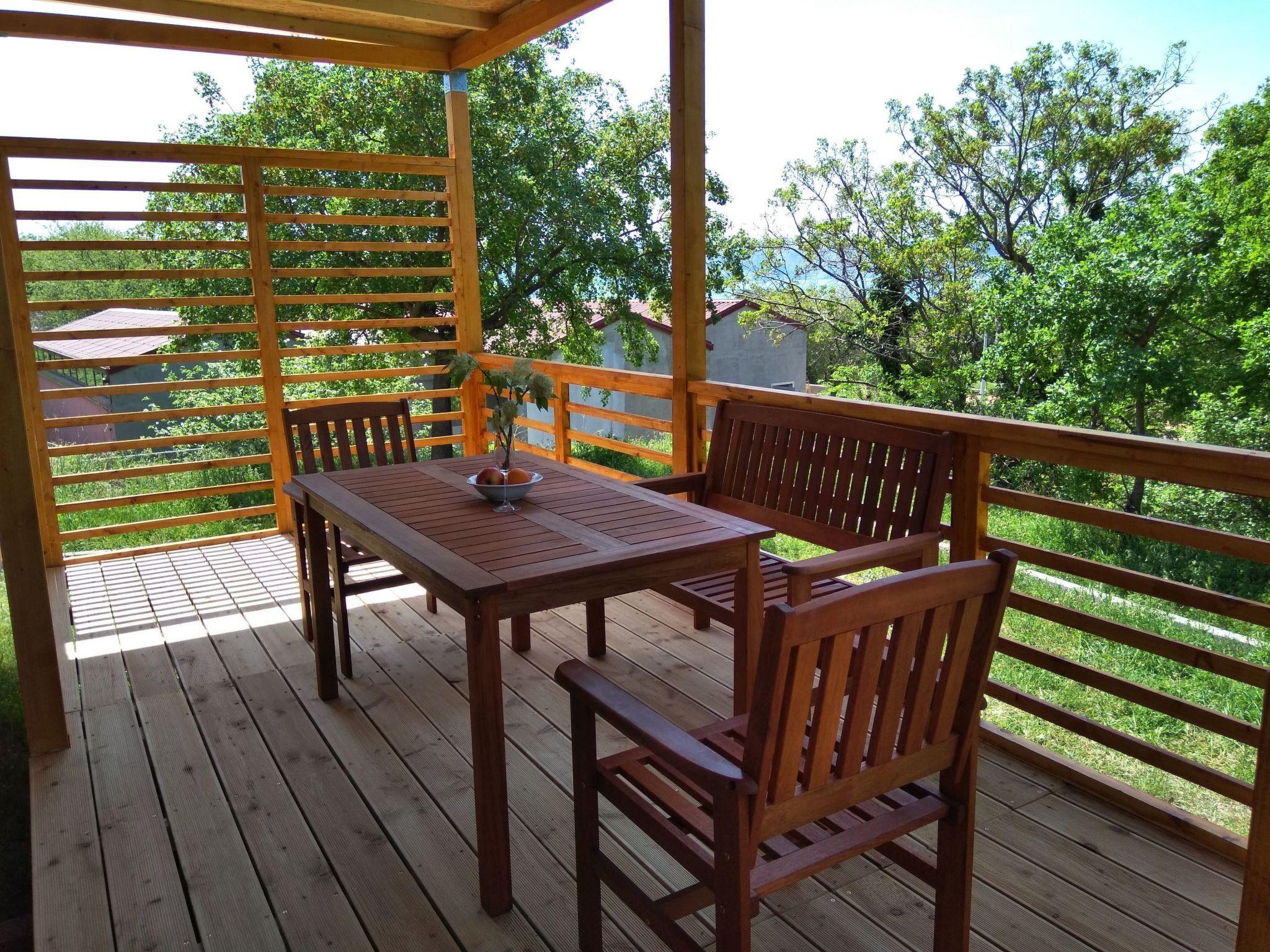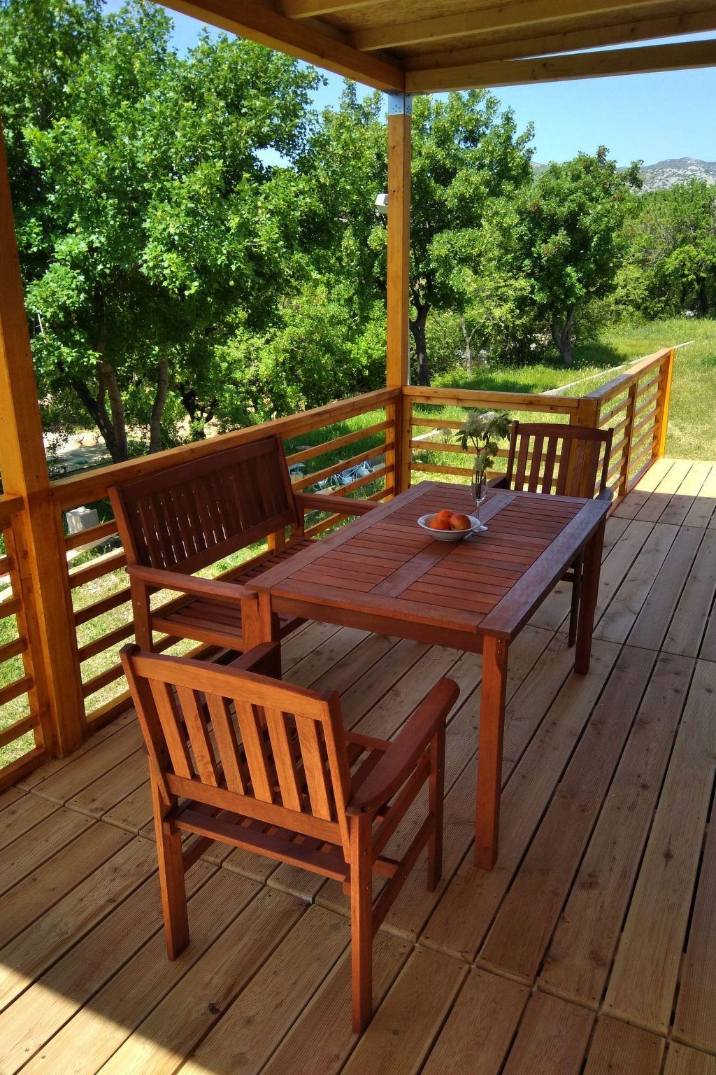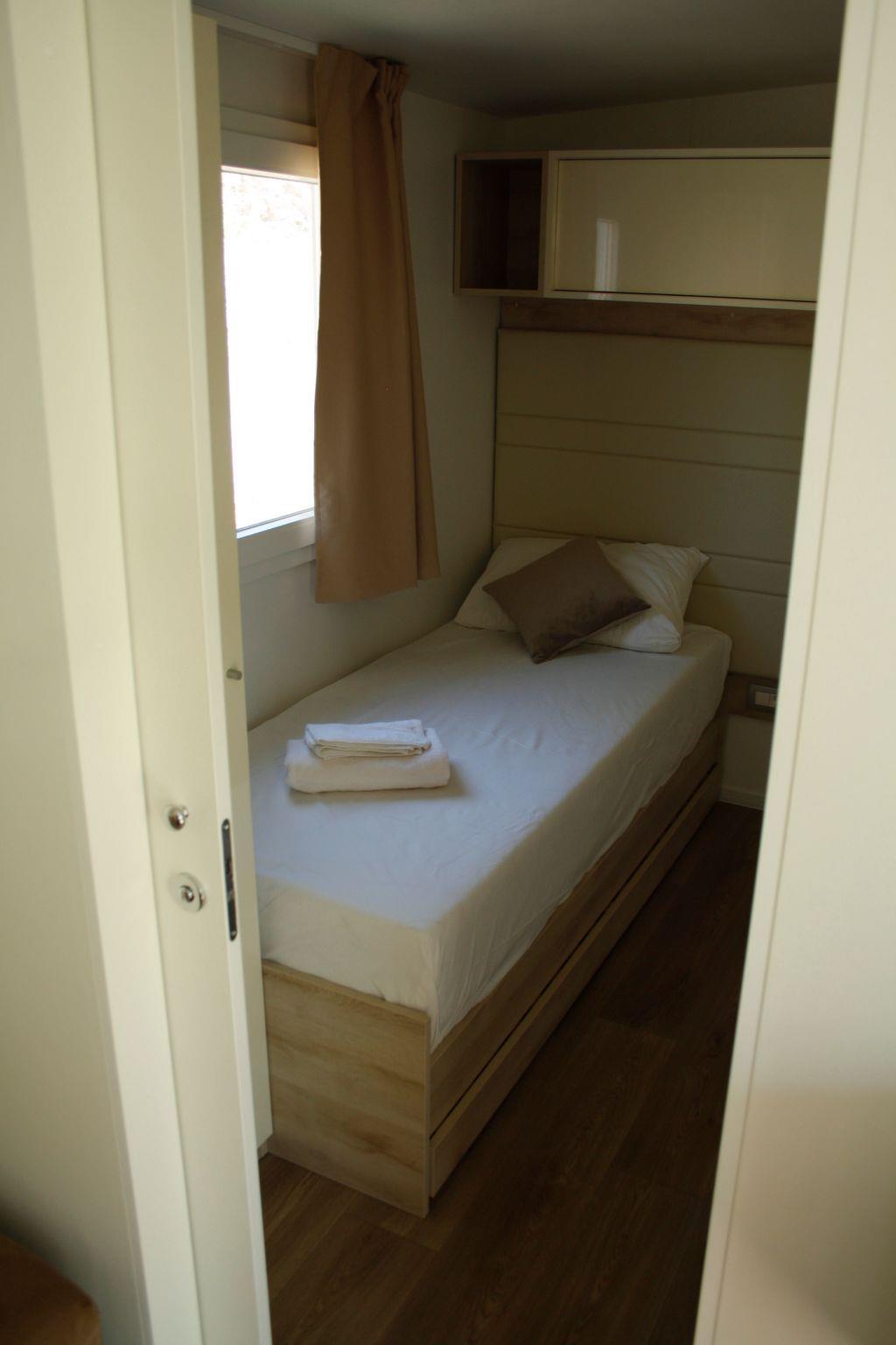 Typ QUEEN CAMPAGNA 4+2 Premium zone Surface 38,80 m²; Manufacture year: 2017 Number of bedrooms: 2 (1 with double bed, 1 with 2 single beds) Kitchen/Living room (additional bed on corner furniture ) Bathroom/ Toilets : 2; Air conditioning; Wooden terrace Additional equipment: table + chairs on terrace, coffee machine, electric kettle, TV, microwave