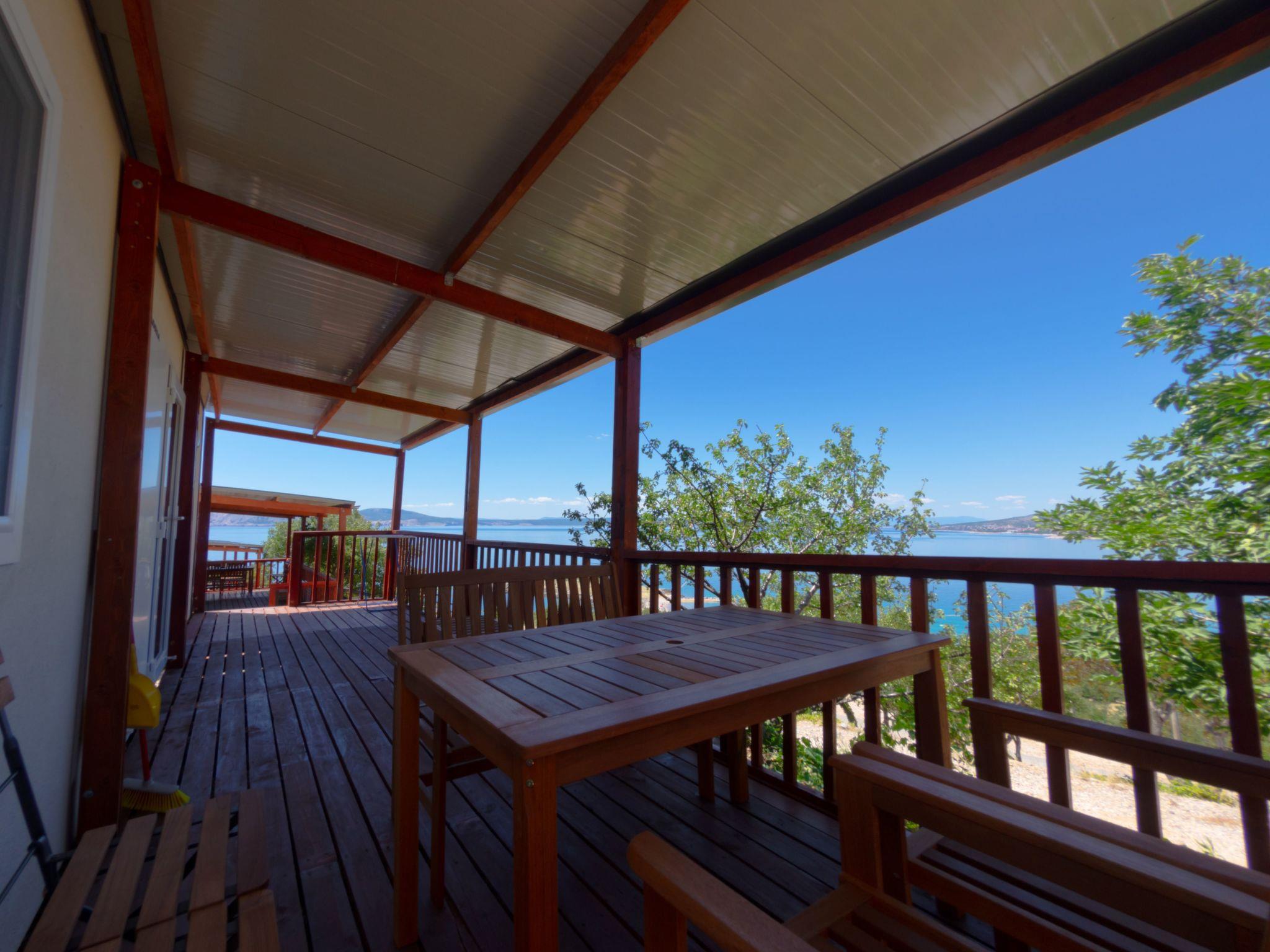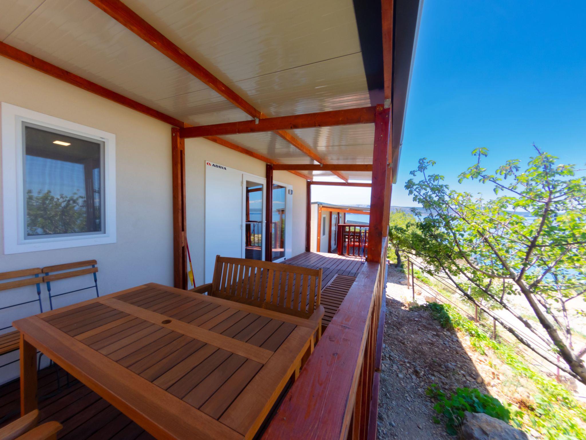 There are 20 units of this type of mobile homes at disposal. In front of each mobile home there is a wooden terrace with table and chairs. A parking space is available in front of the accommodation.