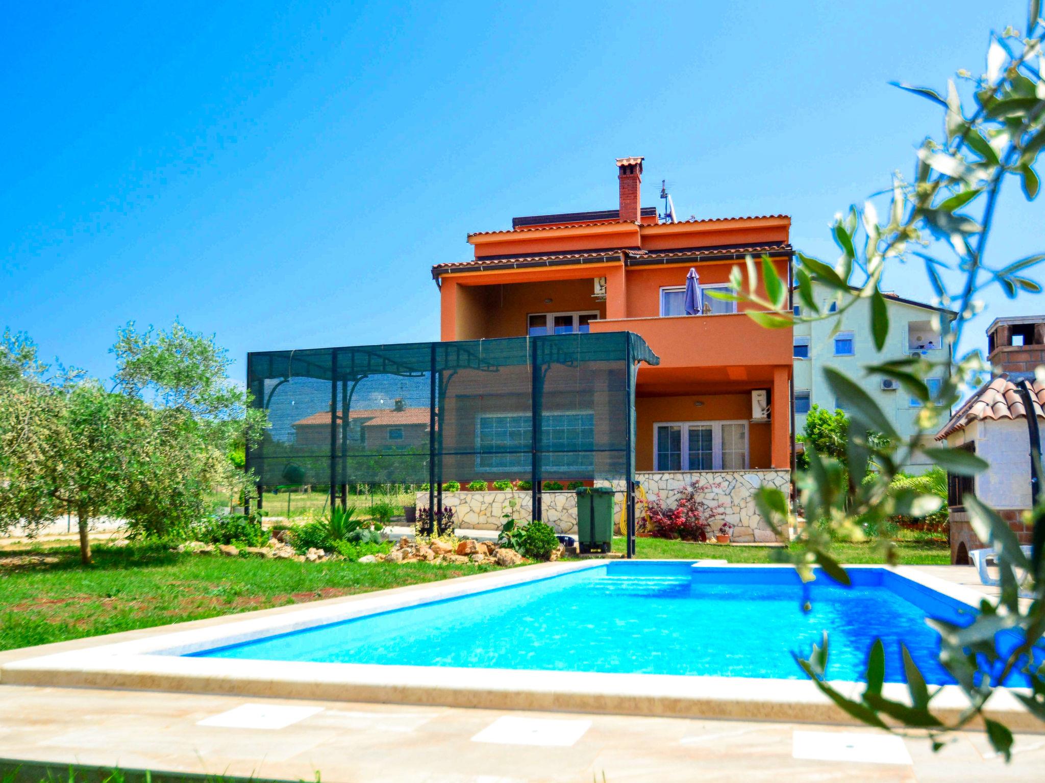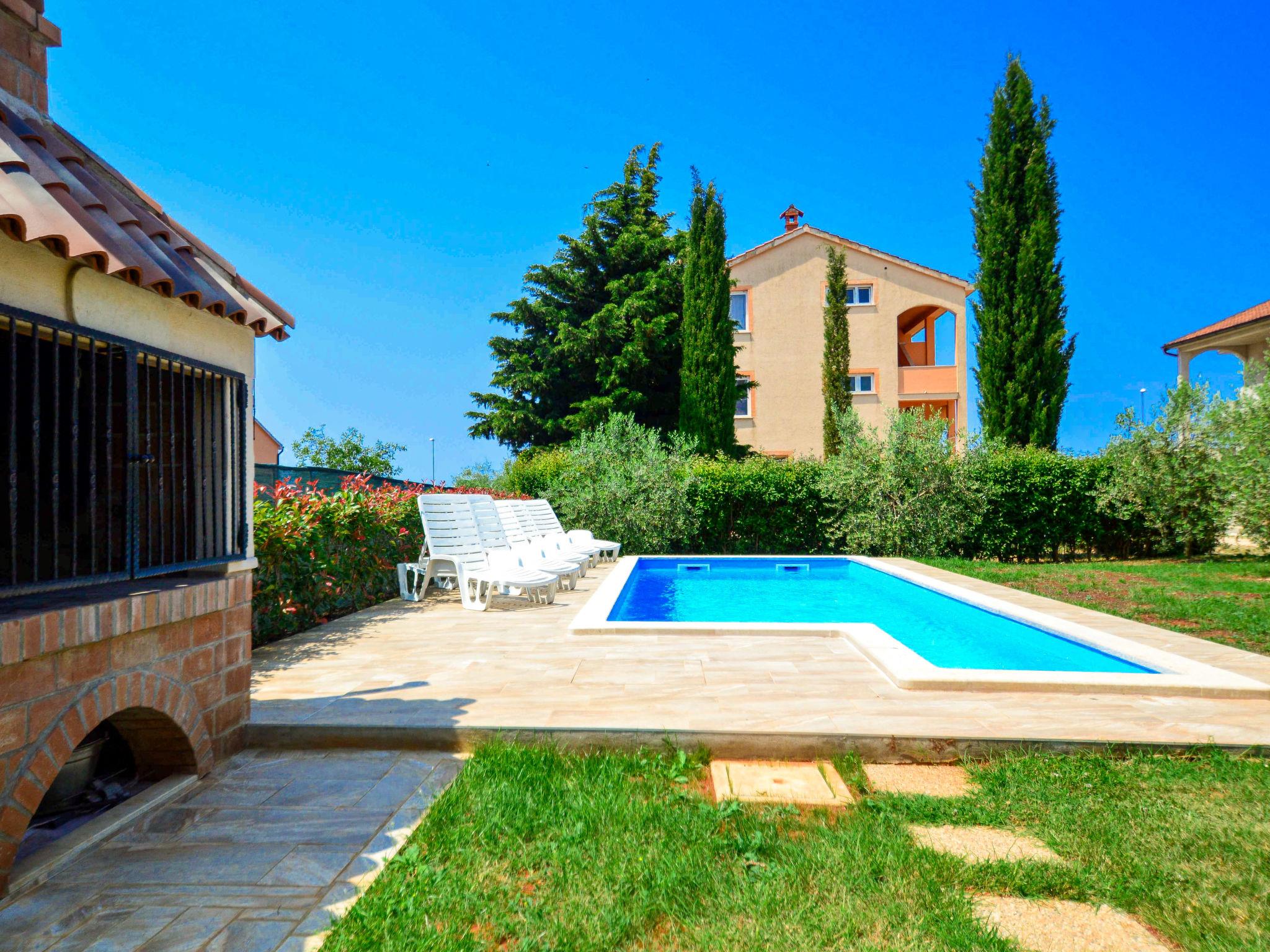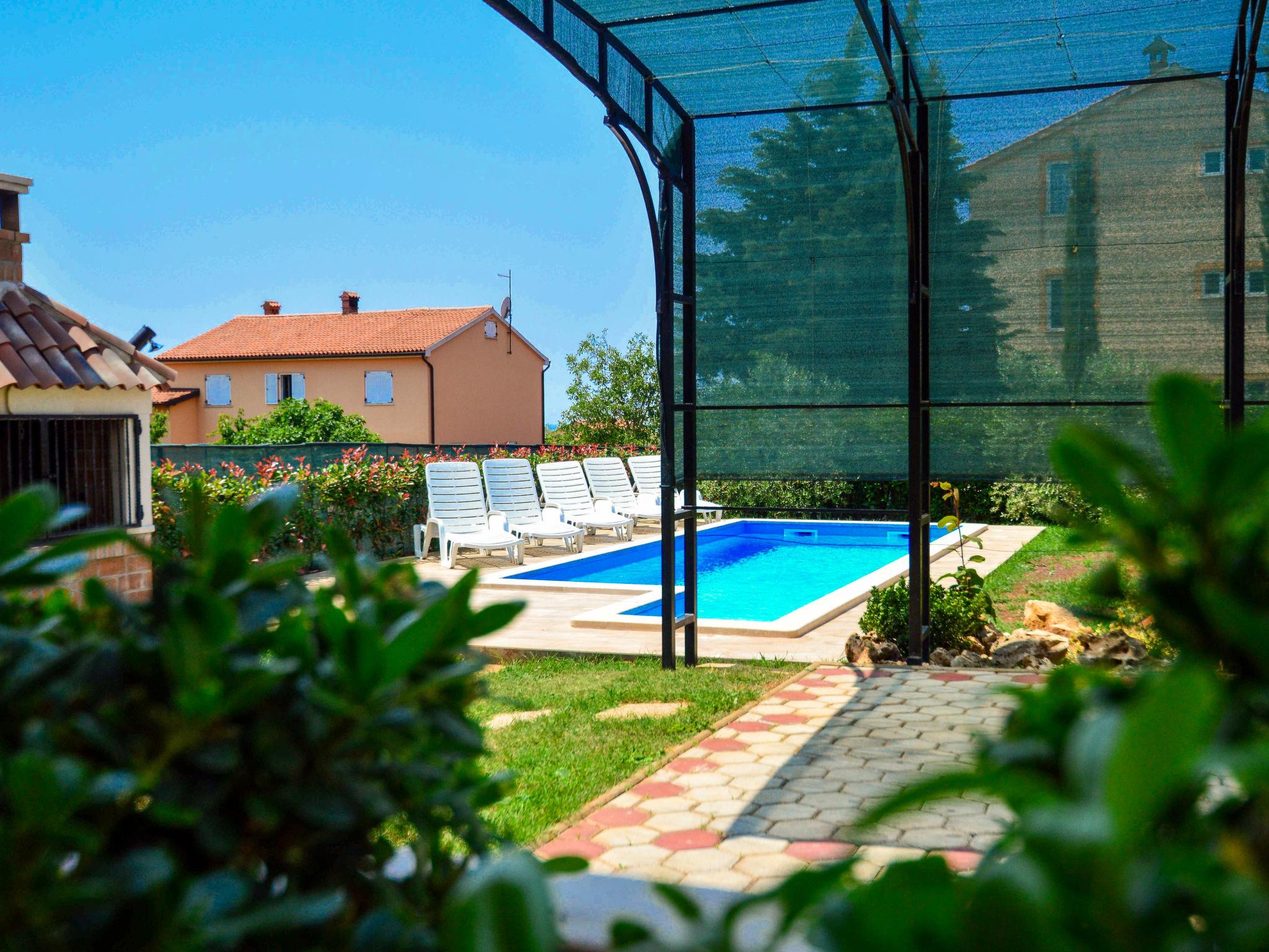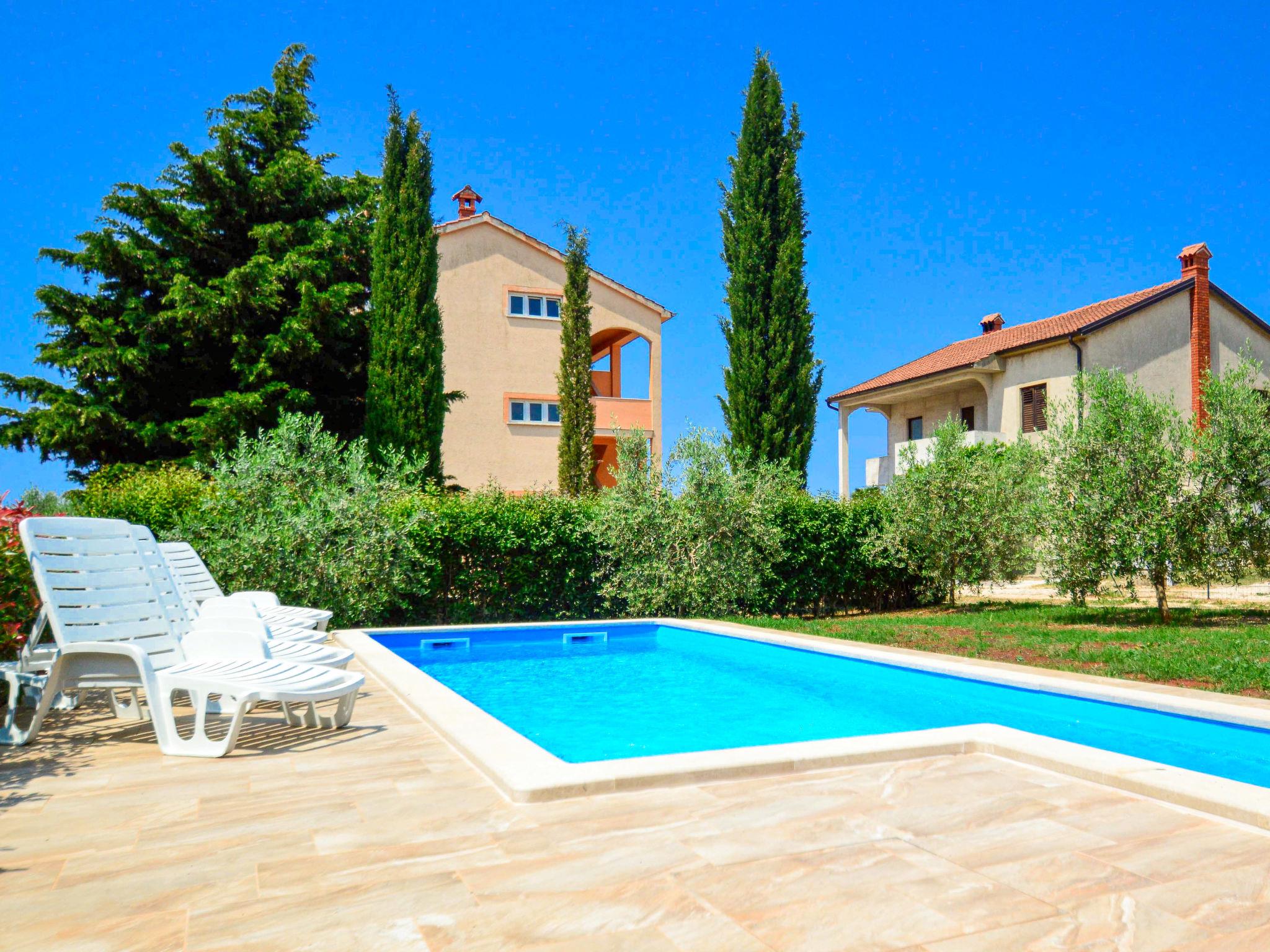 Semi-detached house "Marko", 3 storeys. 2 km from the centre of Novigrad, in a sunny position, 2.5 km from the sea, 2.5 km from the beach. Private: property 400 m2, garden with wildlife garden and trees, swimming pool angular (21 m2, depth 140 cm, seasonal availability: 30.Apr. - 15.Oct.) with internal staircase. Outdoor shower, barbecue (swing). In the house: internet access, washing machine. Parking (for 3 cars) at the house on the premises. Supermarket 2 km, restaurant 2 km, bus stop 2.3 km, pebble beach 2.5 km, rocky beach 2.5 km. Golf course (18 hole) 25 km, tennis 2 km. The owner does not accept any youth groups.