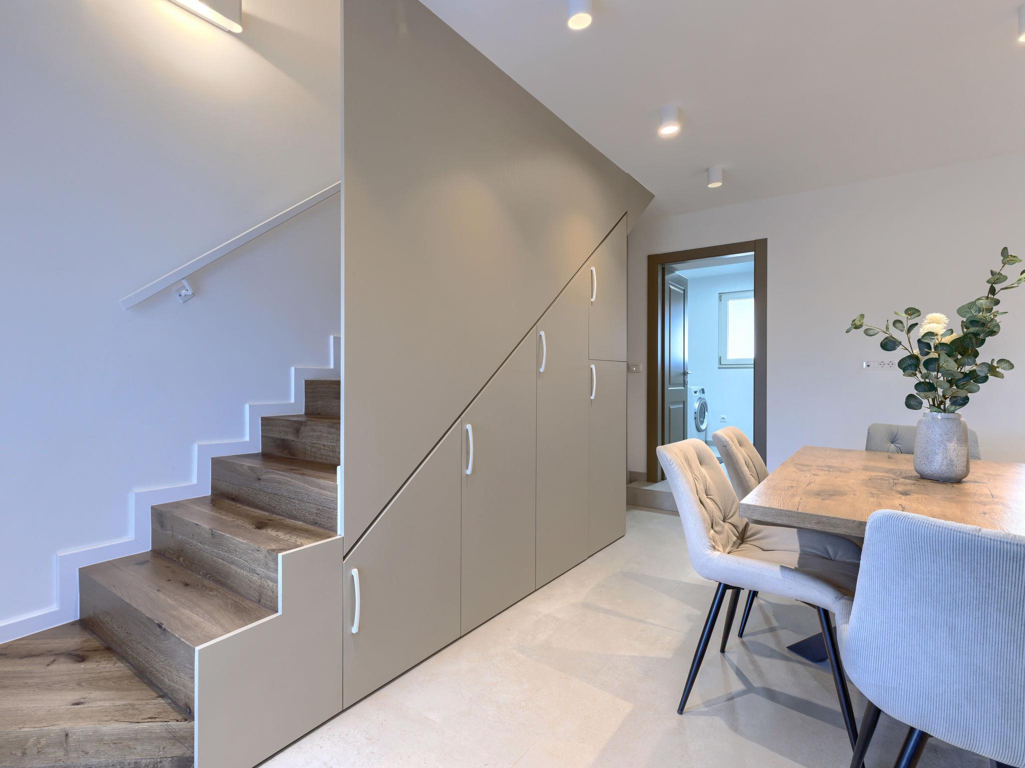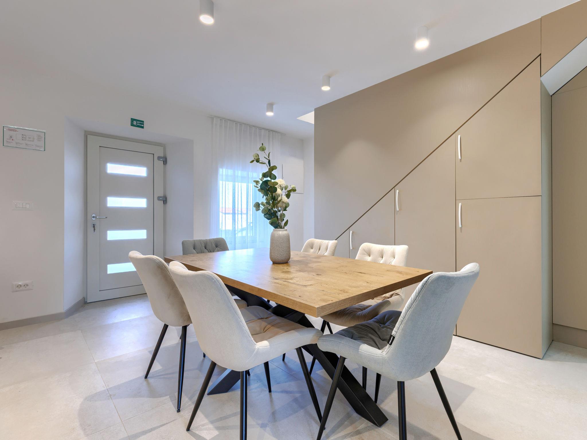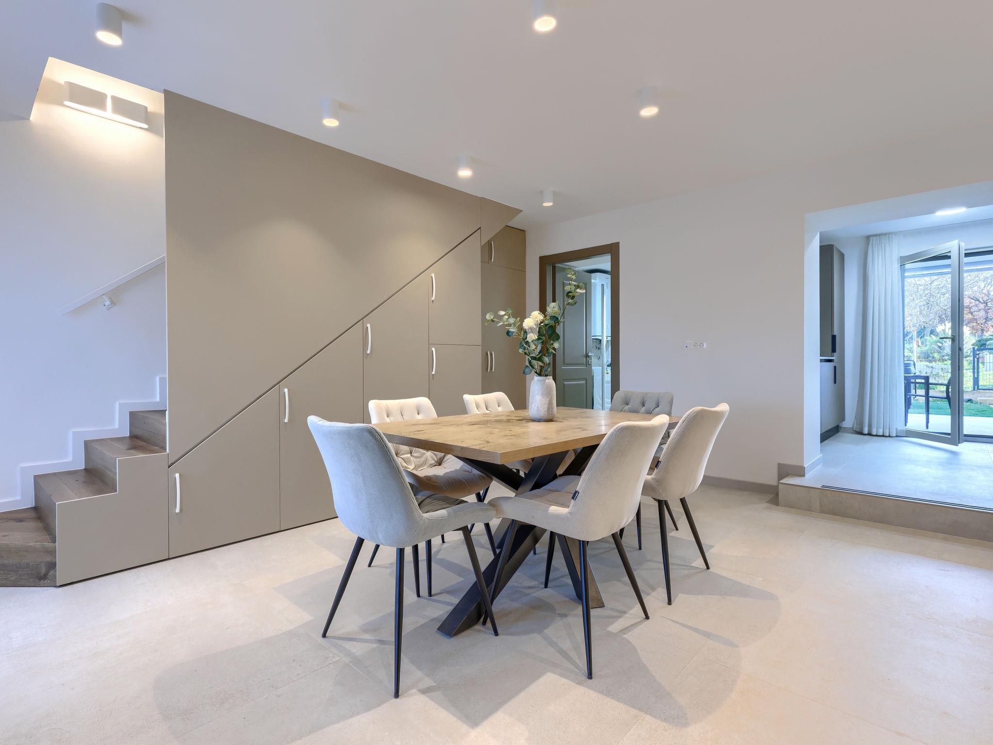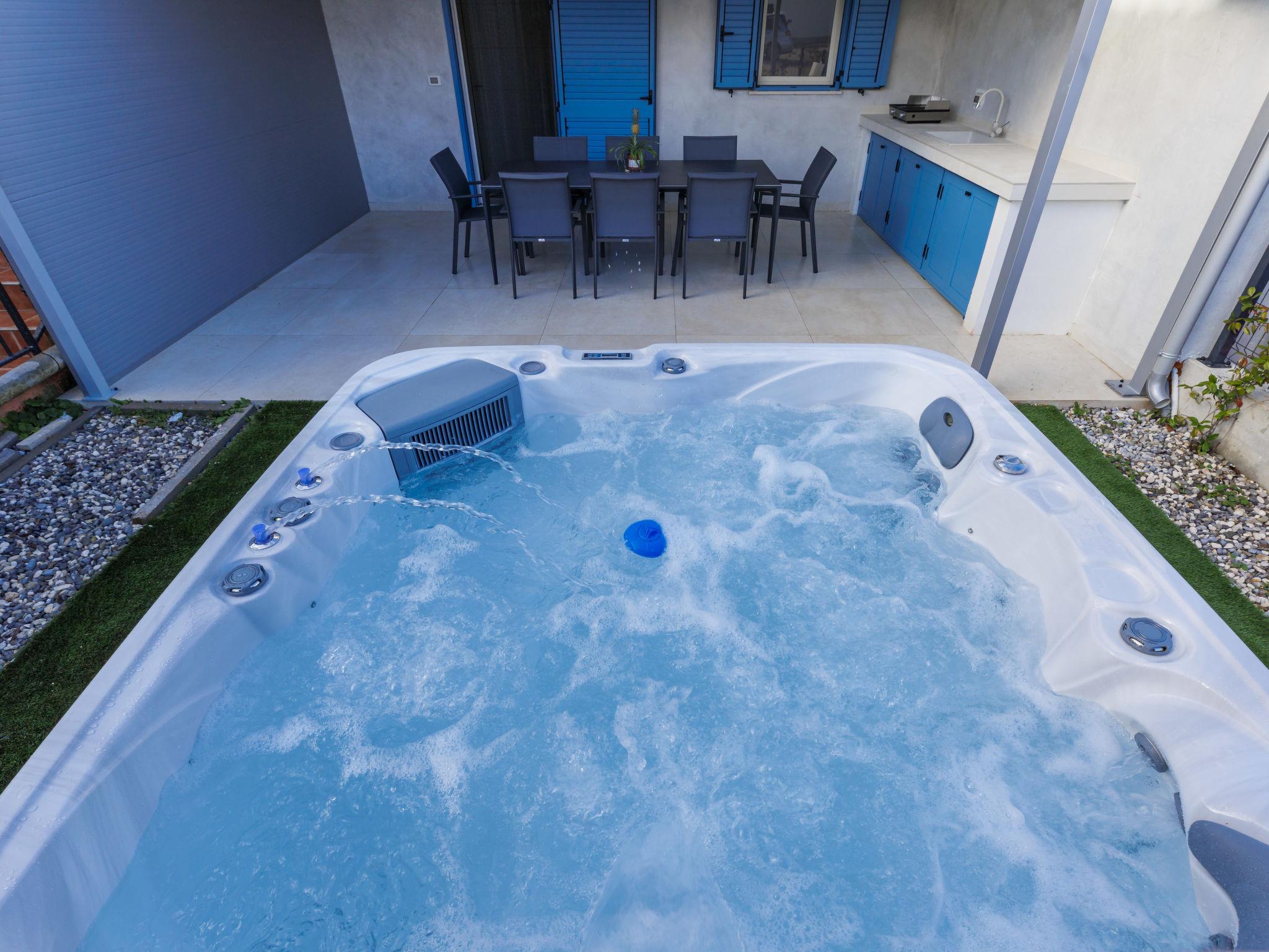 Cosy terraced house "Rinata", 3 storeys, terraced. In the hamlet Bužinija 3.8 km from the centre of Novigrad, in a sunny position, 4 km from the sea, 4 km from the beach. Private: hot tub, pergola, garden furniture, barbecue. In the house: internet access, washing machine. Parking (for 3 cars) at the house on the premises. Shop 3 km, supermarket 3 km, restaurant 50 m, bus stop 350 m, pebble beach 3.8 km, rocky beach 3.8 km. Tennis 3.5 km, riding stable 3 km, walking paths from the house 100 m, cycle lane 150 m. Nearby attractions: Aquapark 6.5 km, Mramornica cave 6 km.
