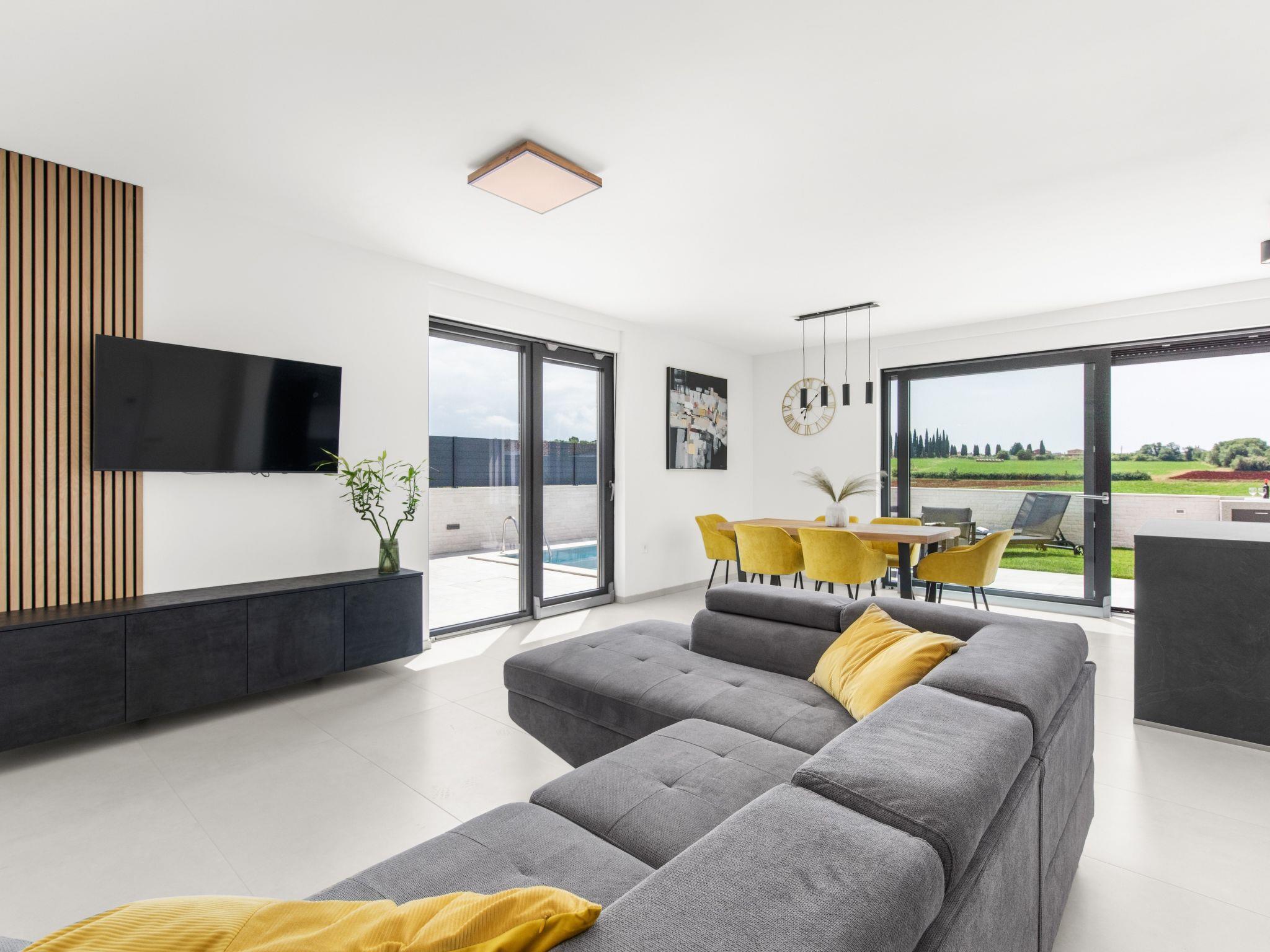 Modern terraced house "Villa Valero", 2 storeys, built in 2023. In the hamlet Strada Contessa 1 km from the centre of Novigrad, in a quiet, sunny position, 2 km from the sea, 2 km from the beach. Private: property 250 m2 (fenced) with lawn, swimming pool (20 m2, depth 140 cm, seasonal availability: 01.Apr. - 01.Nov.). Outdoor shower, terrace (20 m2), garden furniture, barbecue. In the house: internet access, air conditioning, washing machine. Parking (for 3 cars) at the house on the premises. Shop 2 km, supermarket 2 km, restaurant 1 km, bus stop 2.5 km, railway station 37 km, pebble beach 2 km, rocky beach 2 km. Golf course (18 hole) 20 m, tennis 1.5 km. Nearby attractions: Aquapark 4 km. The owner does not accept any youth groups.