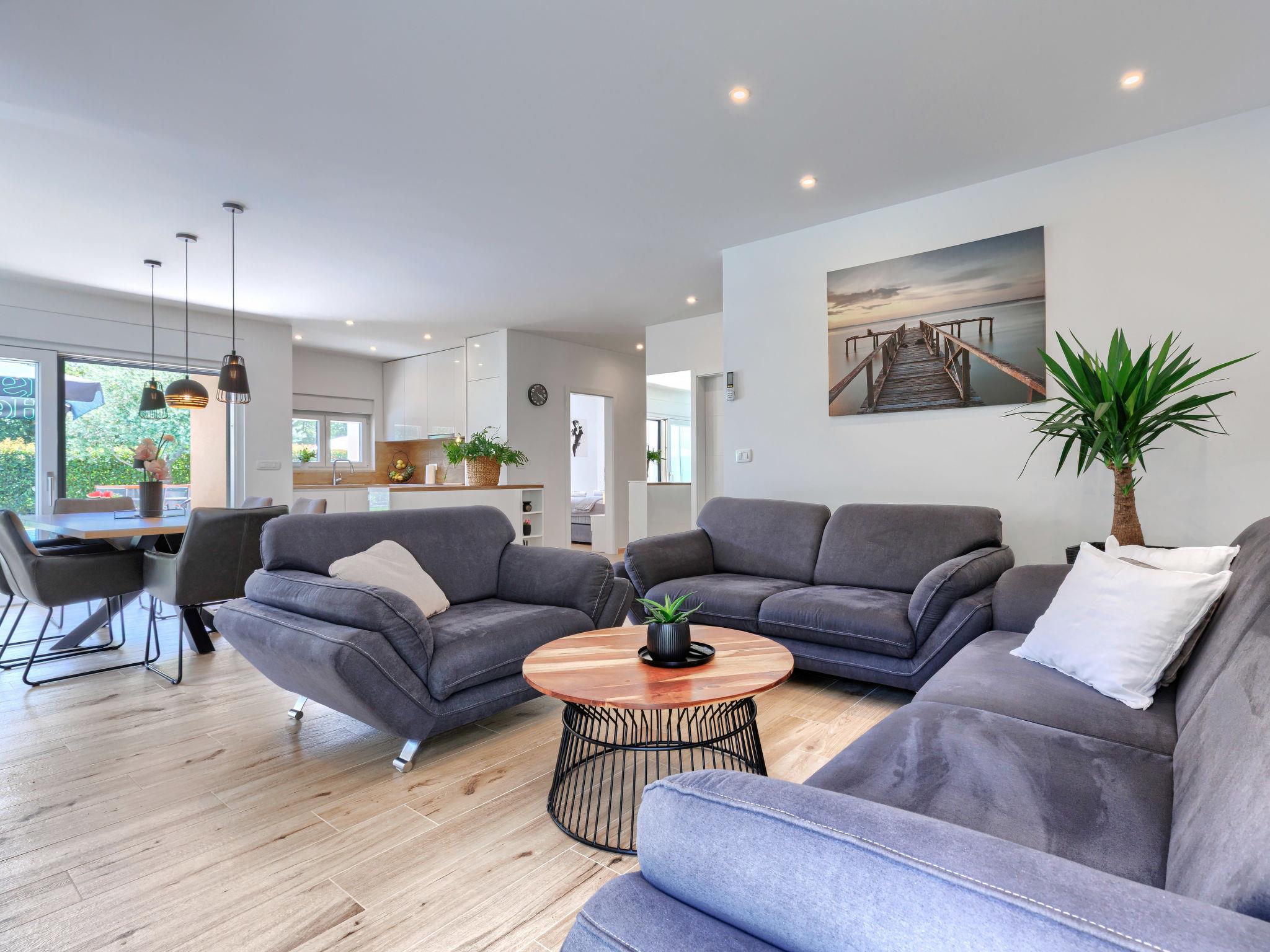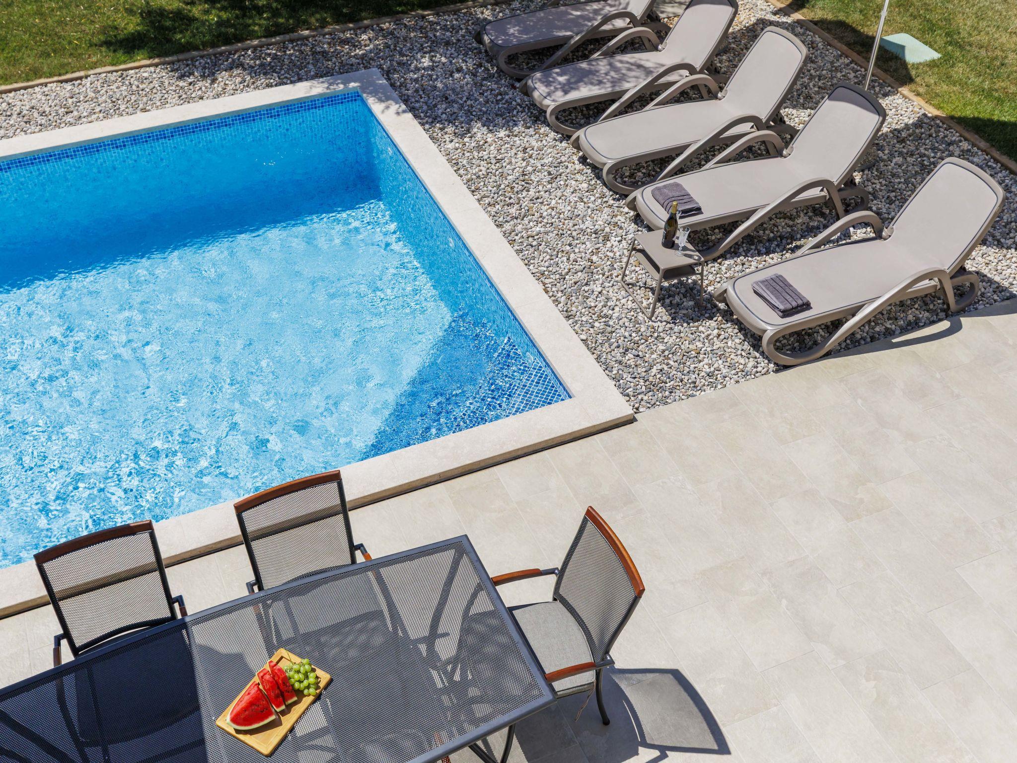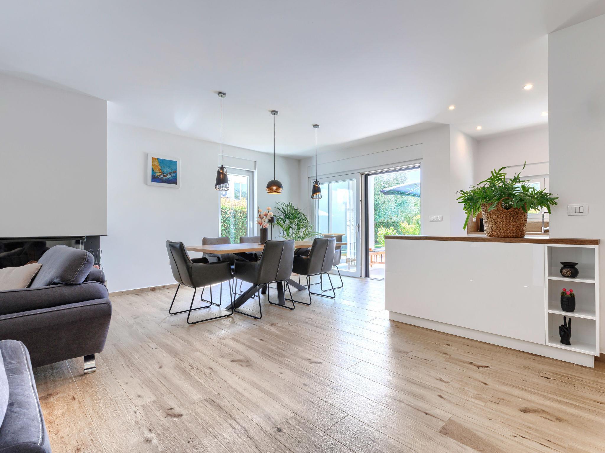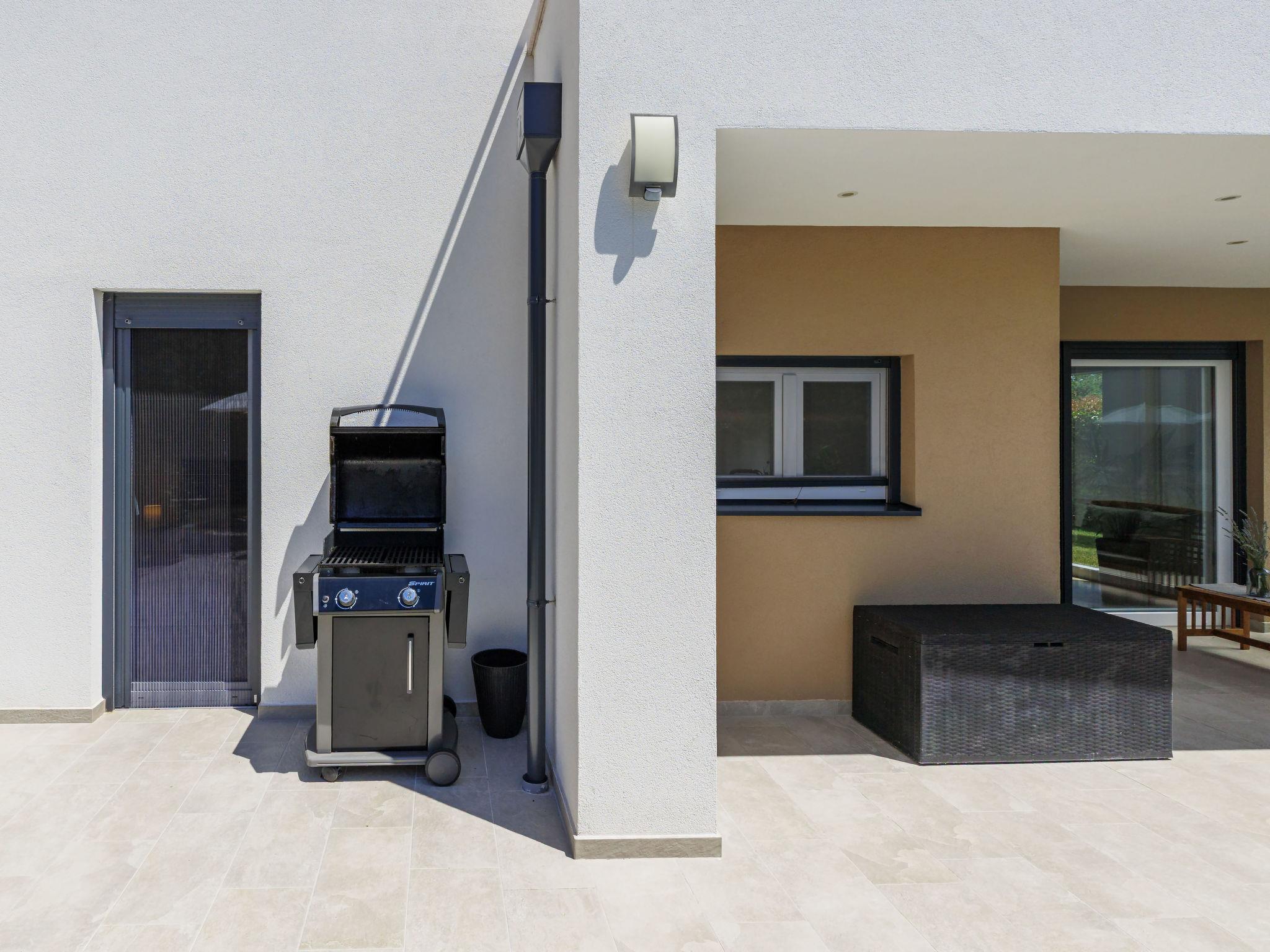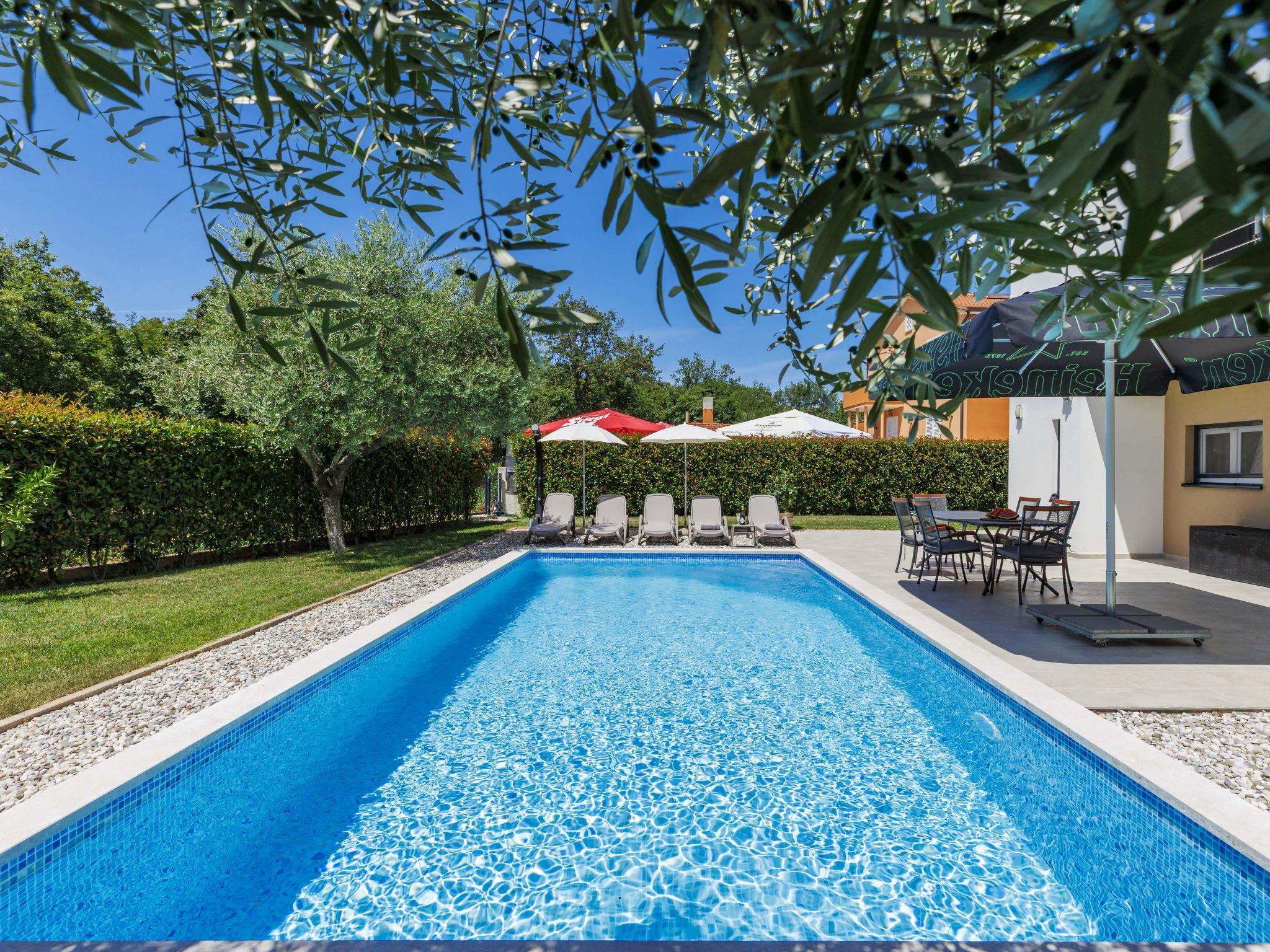 Semi-detached house "Cancar", 2 storeys. In the hamlet Fiorini 8 km from the centre of Novigrad, in a sunny position, 2 km from the sea, 2 km from the beach, in a cul-de-sac. Private: property 400 m2 (fenced), garden with lawn and wildlife garden, swimming pool angular (8 x 4 m, depth 145 cm, seasonal availability: 01.Jun. - 30.Sep.) with internal staircase and salt-electrolysis pool-cleaning system. Outdoor shower, pool maintenance by the owner/gardener. In the house: internet access, washing machine. Parking (for 2 cars) at the house on the premises. Shop 6 km, restaurant 50 m, bus stop 2.4 km, pebble beach 2 km, rocky beach 2 km. Walking paths from the house 50 m, cycle lane 100 m.