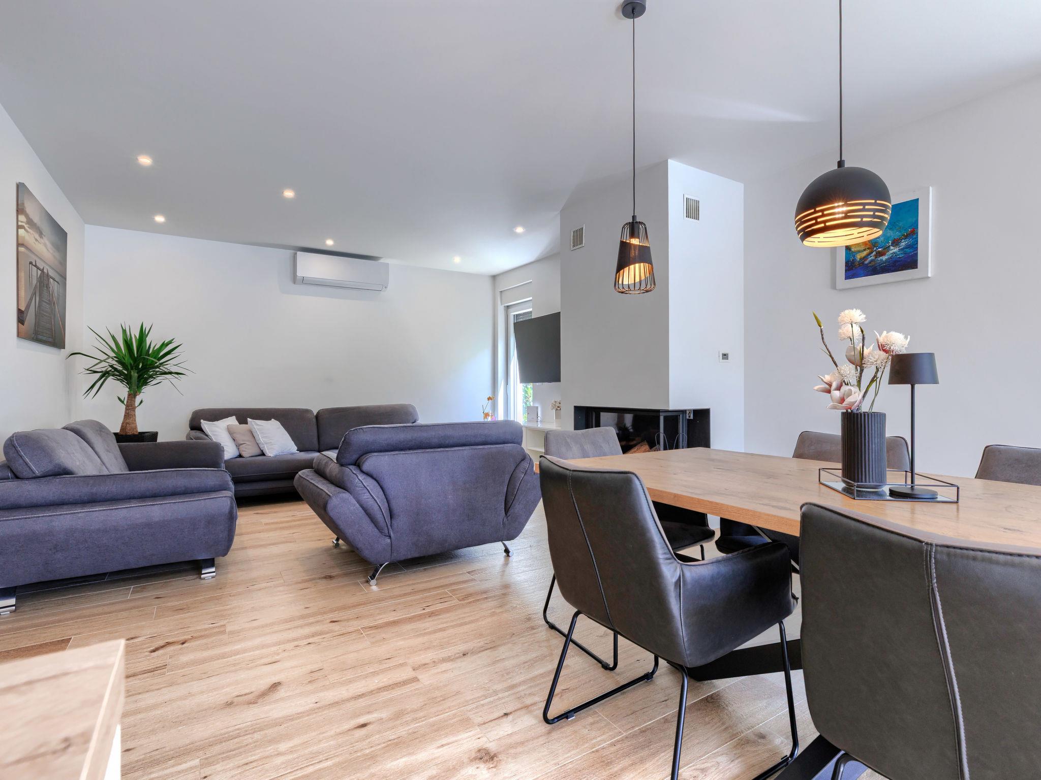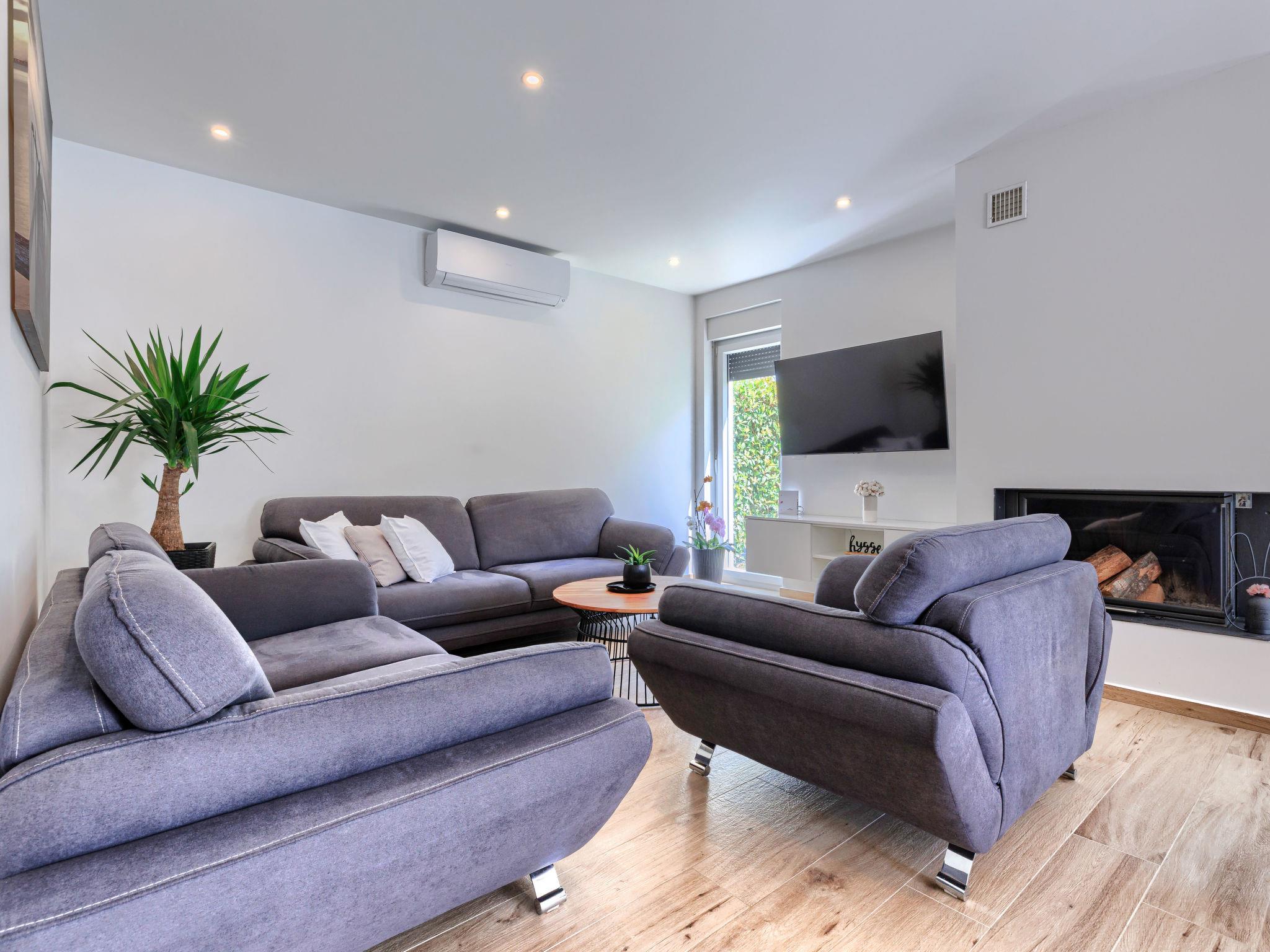 5-room semi-detached house 140 m2 on 2 levels. Living/dining room with open-hearth fireplace (only for decoration), satellite TV (flat screen), air conditioning. Exit to the terrace, to the swimming pool. 1 room with 1 french bed (180 cm, length 200 cm), air conditioning. Open kitchen (oven, dishwasher, 4 induction hot plates, toaster, kettle, microwave, freezer, electric coffee machine). Shower/bidet/WC. Upper floor: living/dining room with satellite TV (flat screen), air conditioning. Exit to the terrace. 1 room with 1 french bed (180 cm, length 200 cm), air conditioning. 1 room with 1 bed (160 cm, length 200 cm), air conditioning. Open kitchen (oven, dishwasher, 4 induction hot plates, toaster, microwave, freezer, electric coffee machine). Shower/WC. No heating option. Terrace 15 m2 partly roofed, terrace 15 m2. Terrace furniture, barbecue (portable), deck chairs. View of the swimming pool. Facilities: children's high chair, baby cot. Internet (WiFi, free).