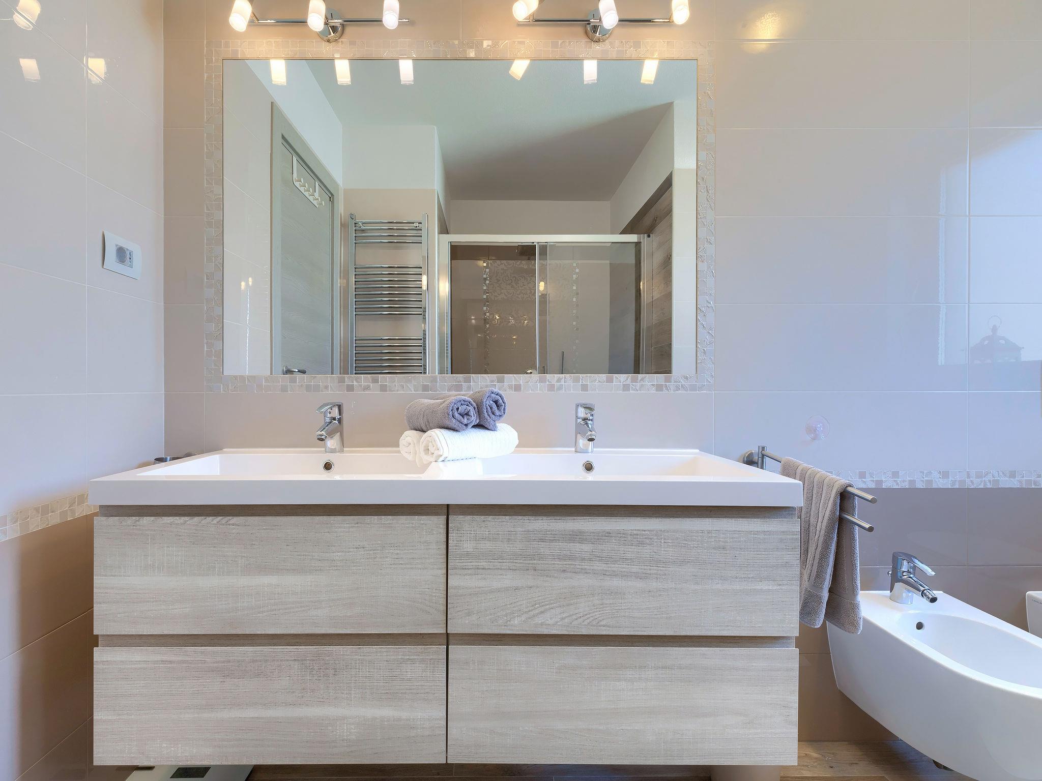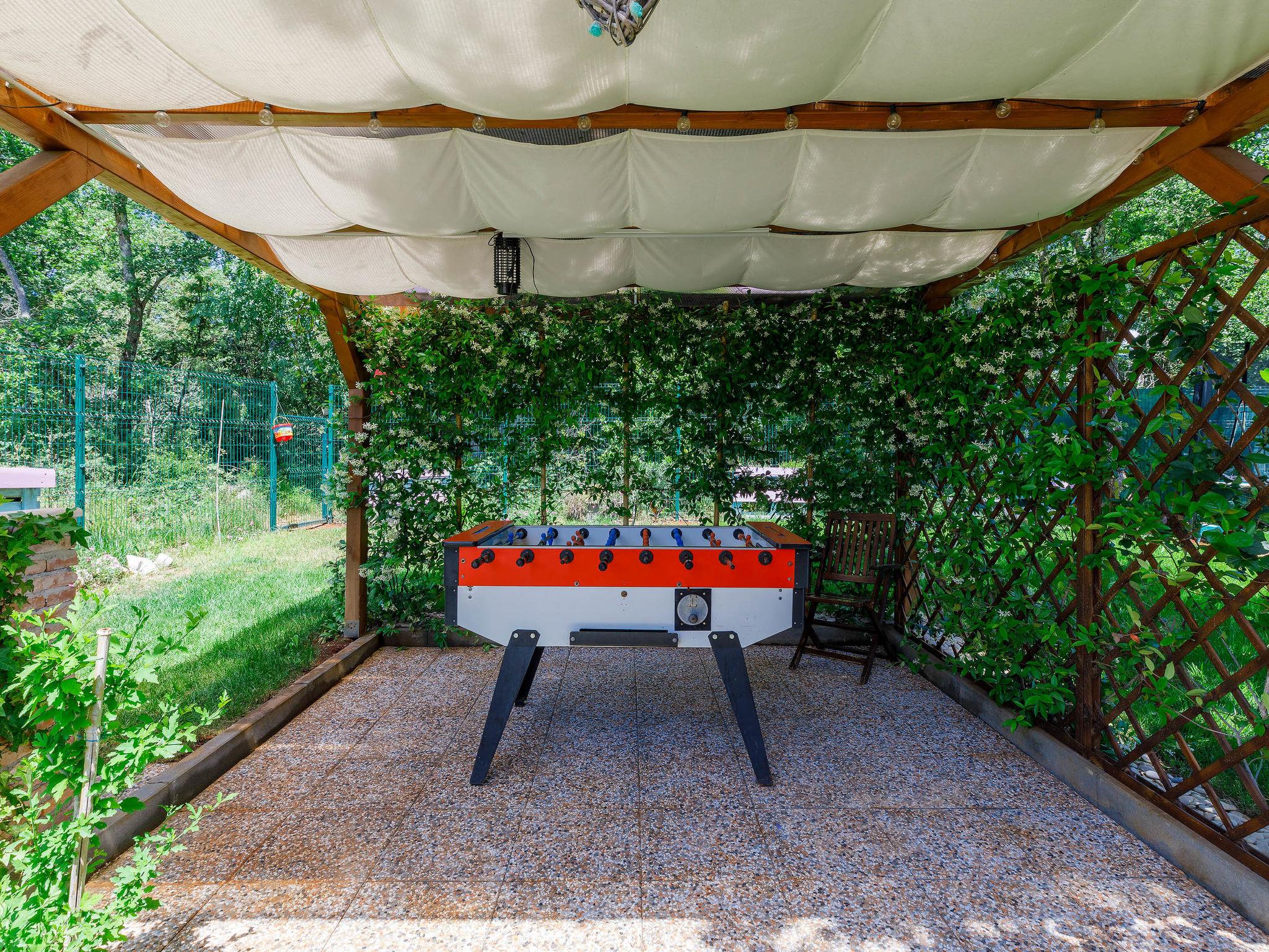 5-room house 165 m2 on 2 levels. Beautiful and tasteful furnishings: living/dining room with satellite TV (flat screen), air conditioning. Exit to the terrace, to the swimming pool. Open kitchen (oven, dishwasher, 4 induction hot plates, kettle, microwave, electric coffee machine). Shower/WC. No heating option. Upper floor: living/sleeping room with 1 french bed (180 cm, length 200 cm), dining table, kitchen corner, shower/WC and satellite TV (flat screen), air conditioning. Entrance hall with air conditioning. 1 room with 1 french bed (180 cm, length 200 cm), satellite TV (flat screen). 1 room with 1 x 2 bunk beds (140 cm, length 200 cm), satellite TV (flat screen). 1 room with 1 french bed (160 cm, length 200 cm), satellite TV (flat screen). Exit to the terrace. Shower/bidet/WC, double hand-basin. Terrace 30 m2, roofed, terrace 5 m2. Terrace furniture, deck chairs. View of the swimming pool. Facilities: iron, children's high chair, baby cot, hair dryer. Internet (WiFi, free).
