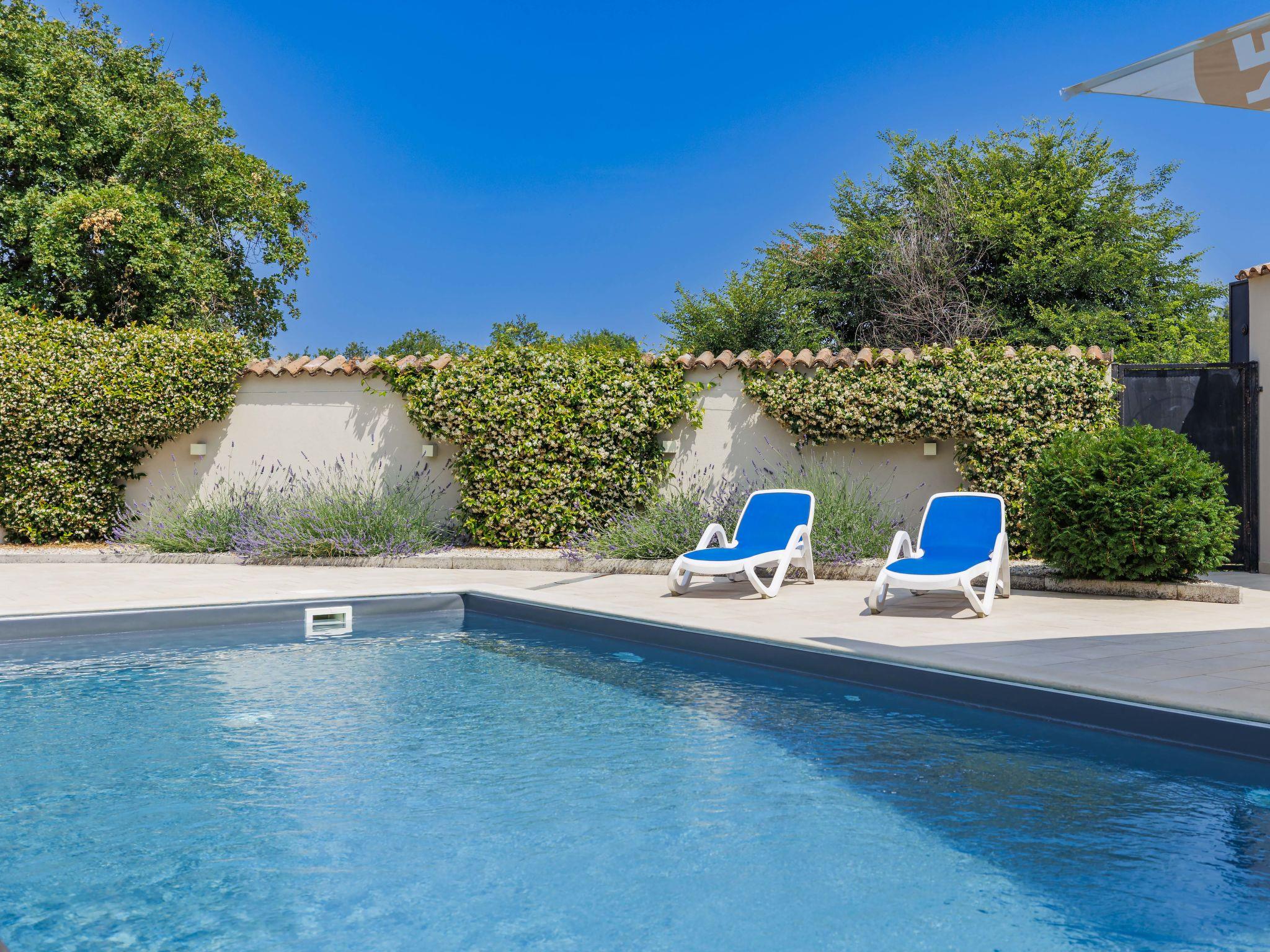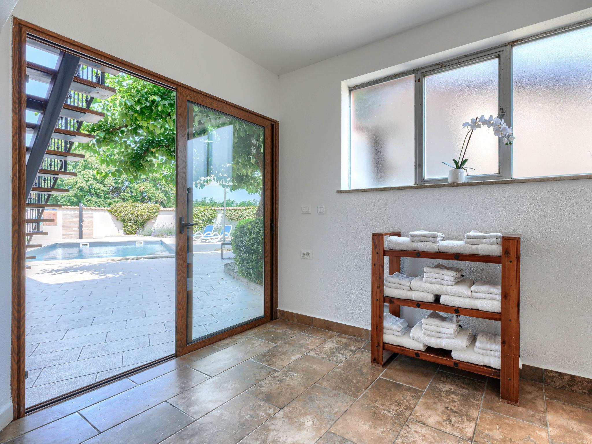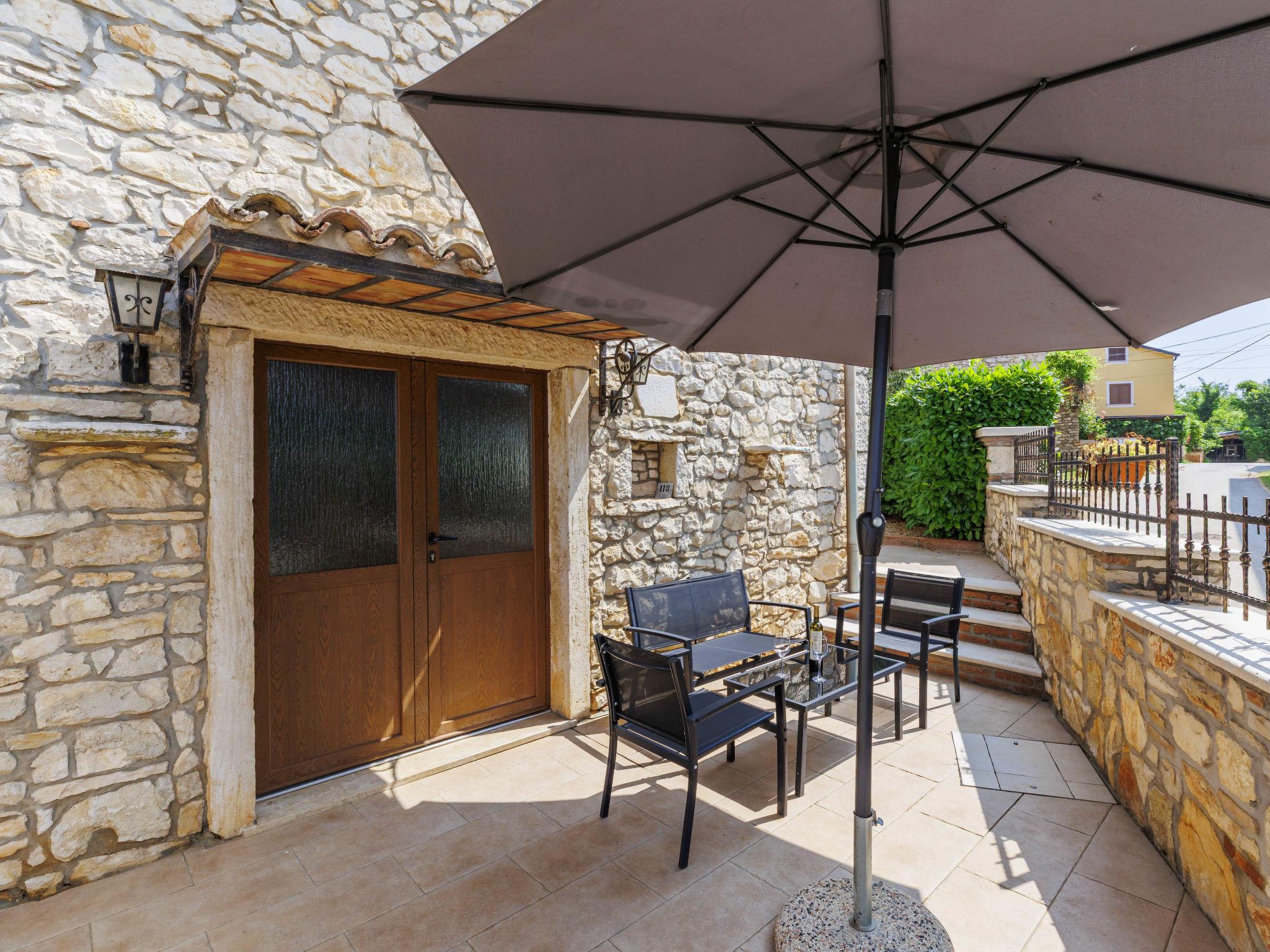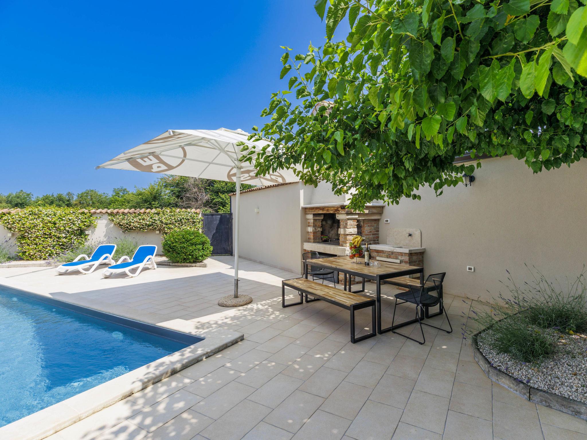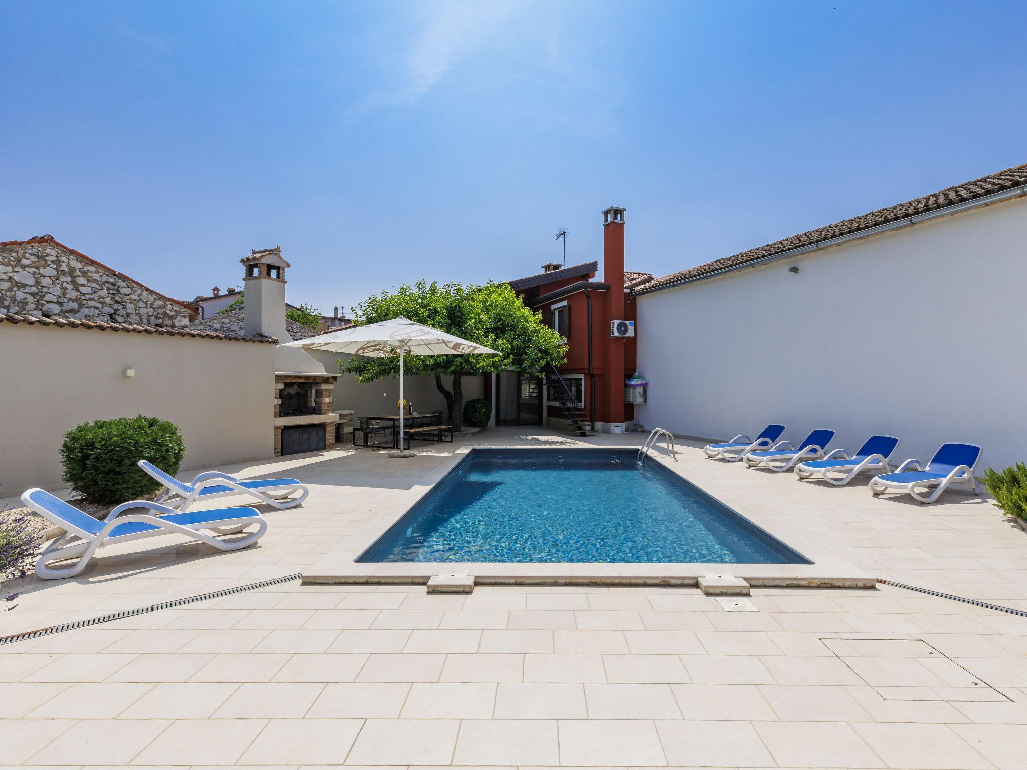 Beautiful semi-detached house "Darija", 2 storeys. In the hamlet Pavici 1 km from the centre of Nova Vas, 3 km from the centre of Brtonigla, 7 km from the centre of Novigrad, in a quiet, sunny position, 8 km from the sea. Private: property 500 m2 (fenced), garden with wildlife garden, swimming pool angular (8 x 4 m, depth 140 cm, seasonal availability: 01.Jun. - 15.Sep.). Outdoor shower, garden furniture, barbecue. In the house: internet access, trampoline, washing machine. Parking on the premises. Shop 1 km, supermarket 8 km, restaurant 1 km, bus stop 3.6 km, pebble beach 8 km, rocky beach 8 km. Walking paths from the house 500 m, cycle lane 550 m. Nearby attractions: Aquapark 2 km. Semi-detached house consists of 2 apartments rented as one unit.