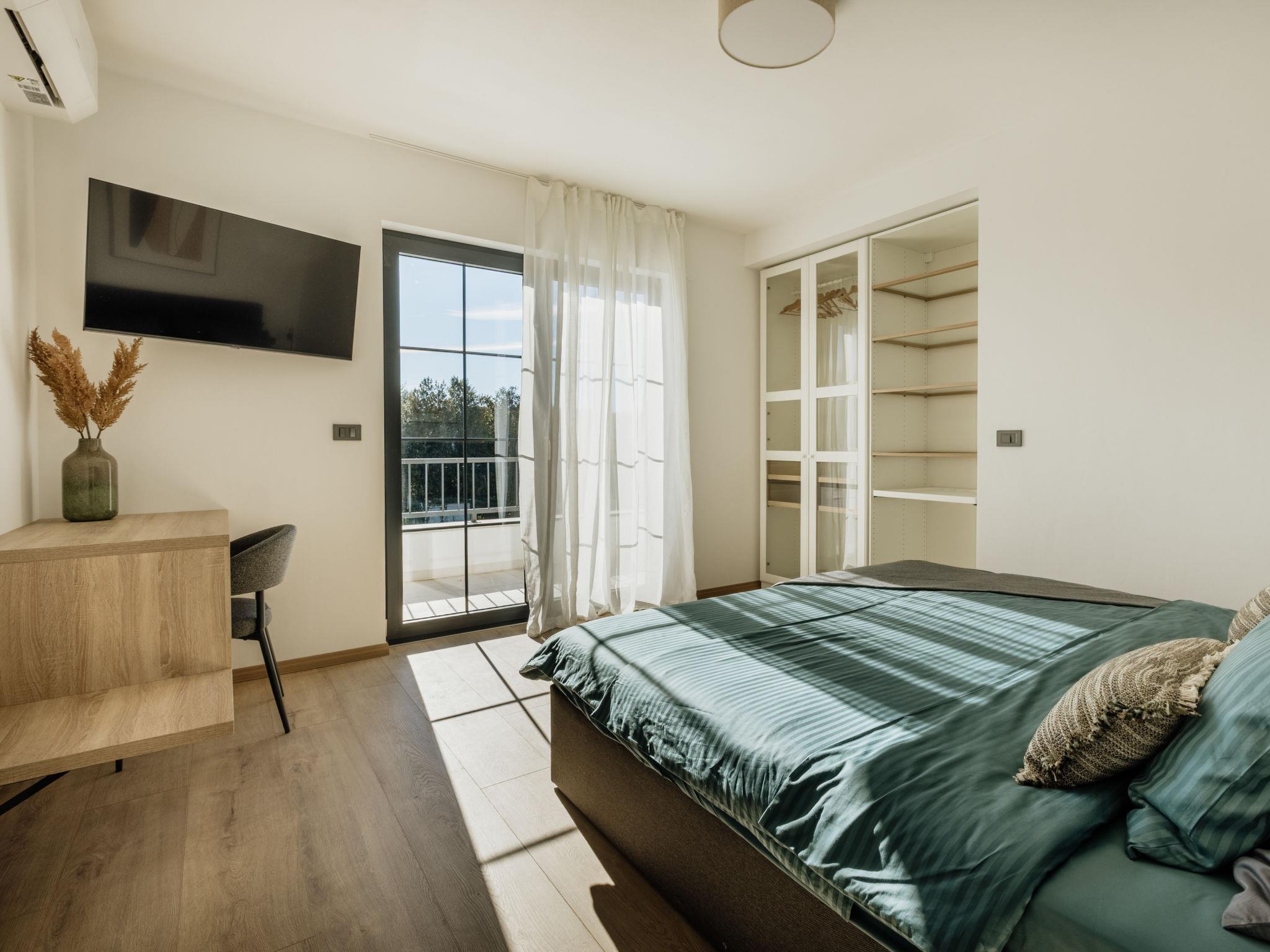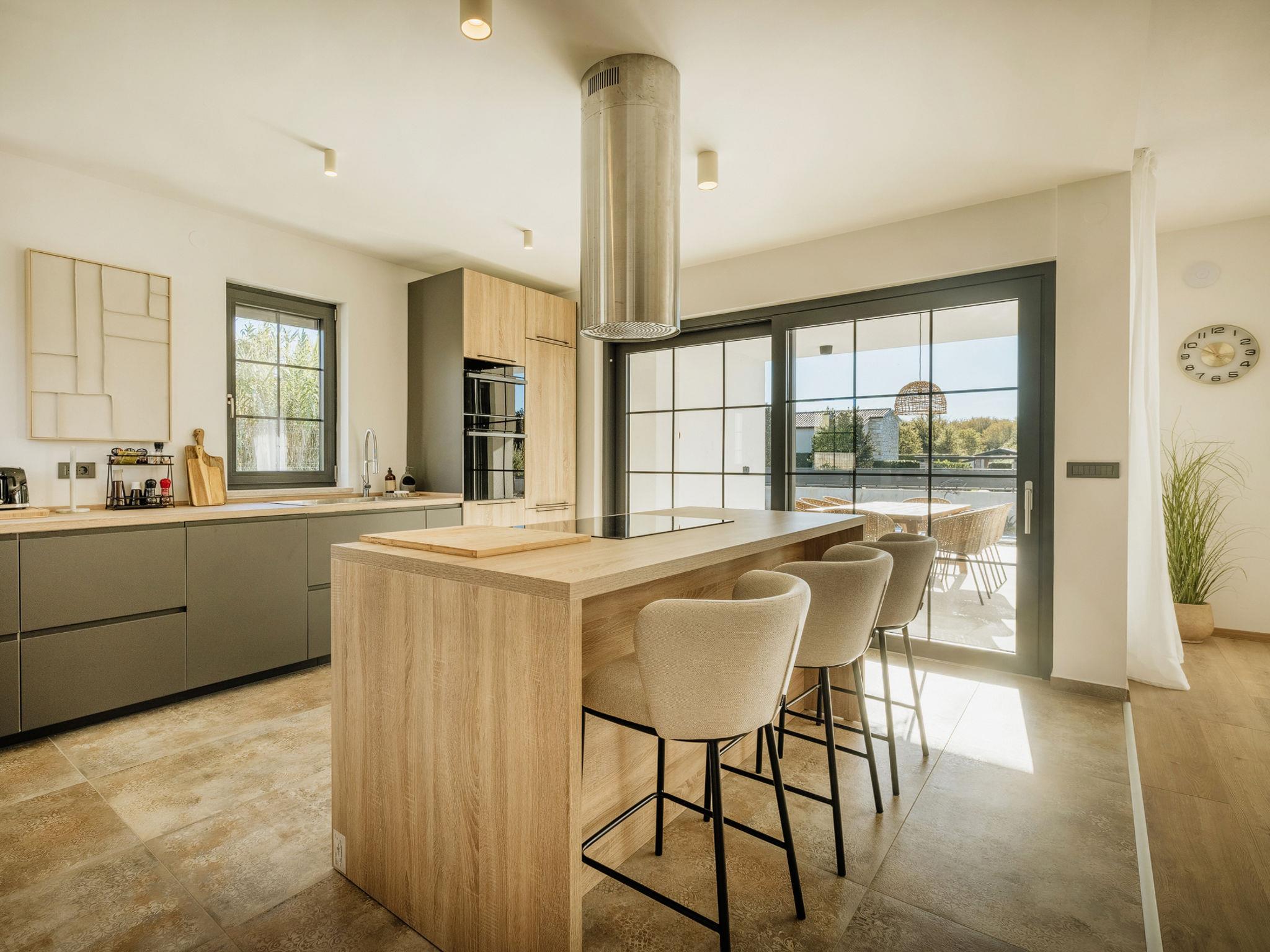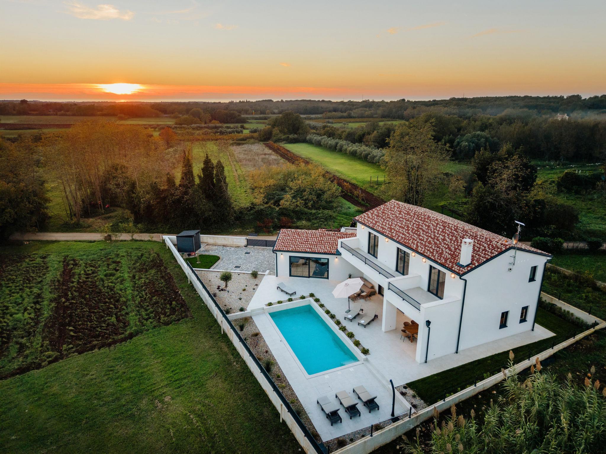 Beautiful, luxurious villa "Nina", 2 storeys, built in 2025. In the hamlet Pavici 1 km from the centre of Nova Vas, 3 km from the centre of Brtonigla, 7 km from the centre of Novigrad, in a quiet, sunny position, 8 km from the sea, 8 km from the beach. Private: property 500 m2 (fenced), garden with lawn, swimming pool angular (9 x 4 m, depth 145 cm, seasonal availability: 15.May. - 15.Sep.) with internal staircase. Outdoor shower, garden furniture, barbecue. In the house: internet access, washing machine. Parking (for 3 cars) at the house on the premises. Shop 1 km, supermarket 8 km, restaurant 1 km, bus stop 3.6 km, pebble beach 8 km, rocky beach 8 km. Walking paths from the house 500 m, cycle lane 550 m. Nearby attractions: Aquapark 2 km.