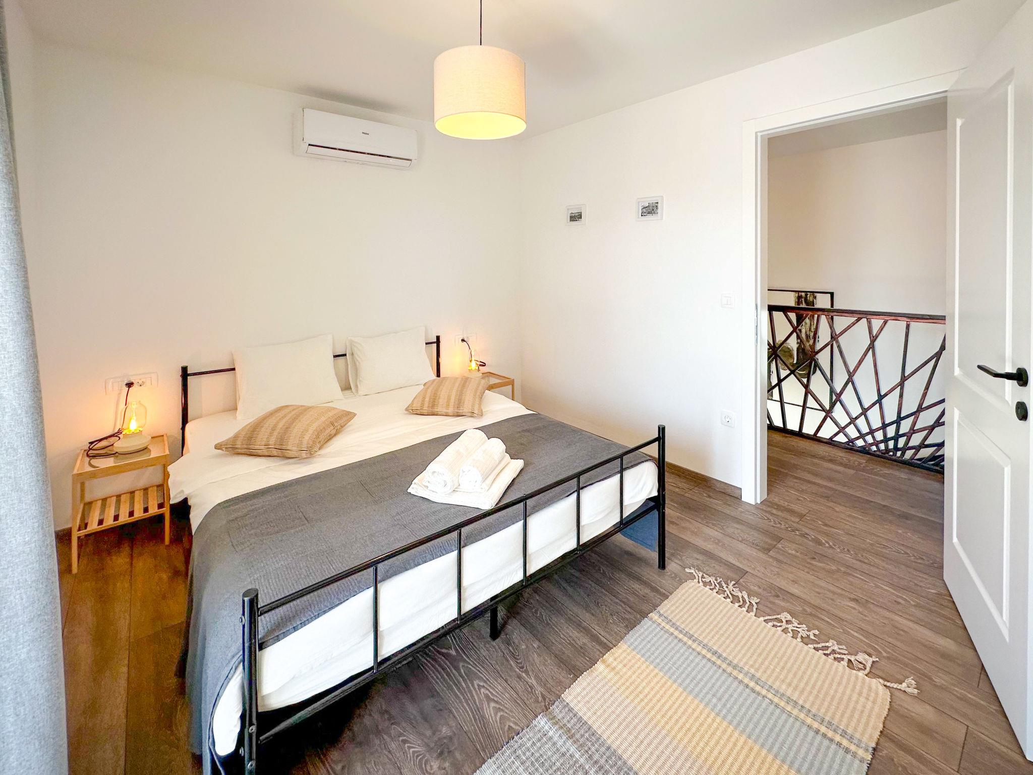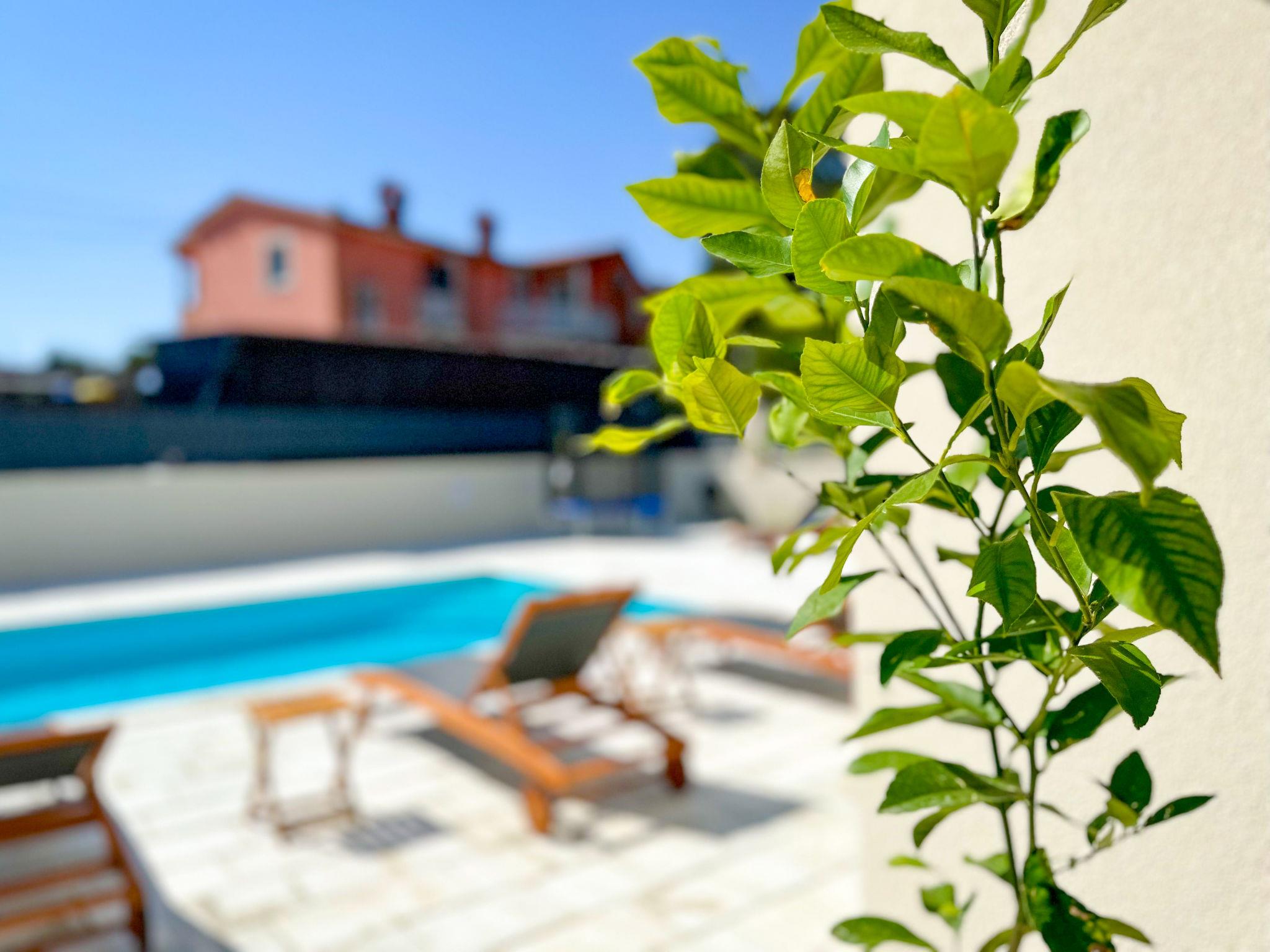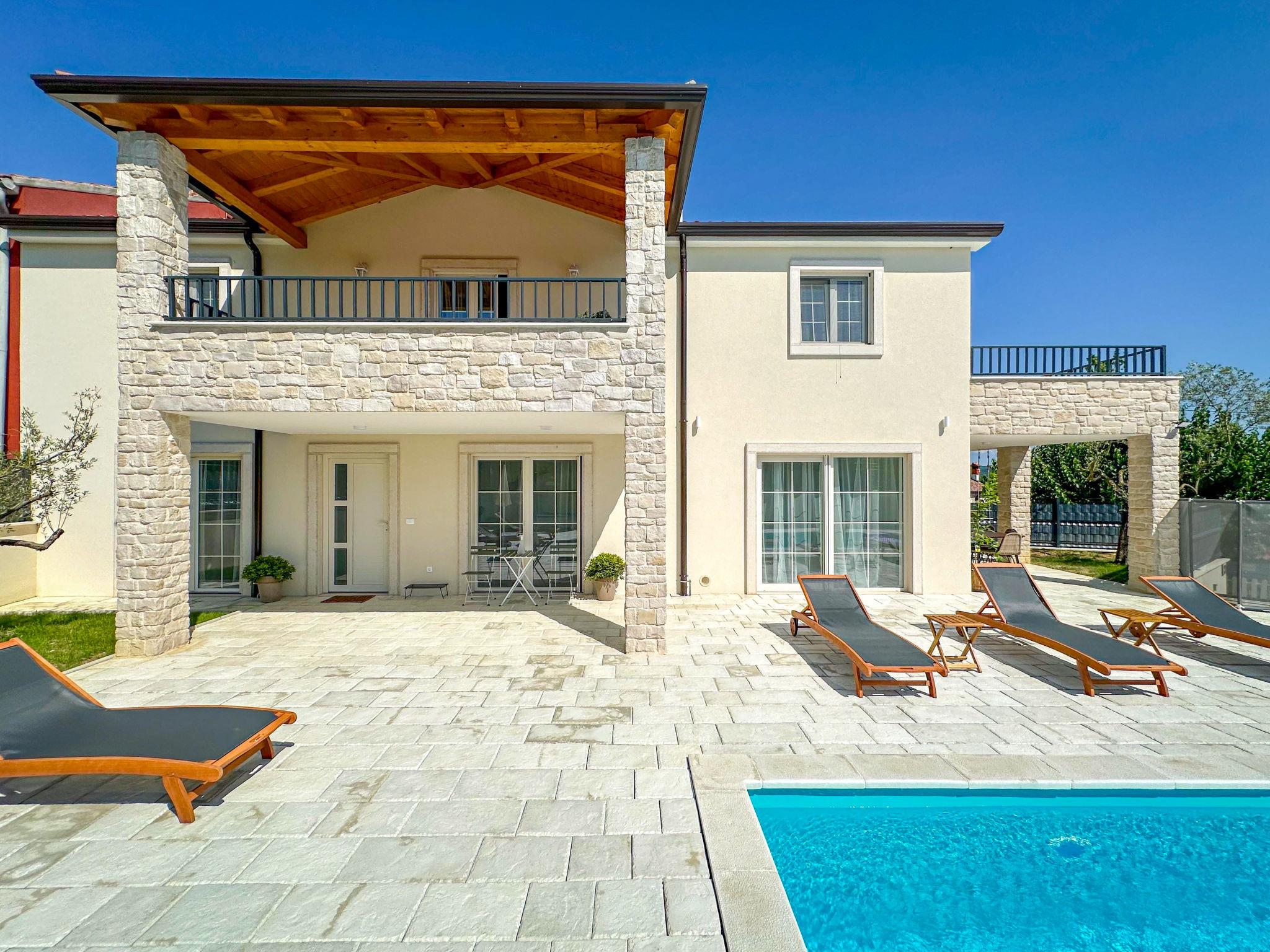 Beautiful terraced house "Villa Gaudeo", 2 storeys, renovated in 2024. In the hamlet Nova Vas 2.5 km from the centre of Brtonigla, 8 km from the centre of Novigrad, in a quiet, sunny position, 8 km from the sea. Private: property 500 m2 (fenced), swimming pool (8 x 4 m, depth 150 cm, seasonal availability: 01.May. - 30.Sep.) with internal staircase. Outdoor shower, garden furniture, barbecue (swing), pool maintenance by the owner/gardener. In the house: internet access, table football, trampoline. Parking (for 2 cars) at the house on the premises. Shop 200 m, supermarket 8 km, restaurant 200 m, bus stop 8 km, railway station 35 km, pebble beach 8 km, rocky beach 8 km. Golf course (18 hole) 24 km, walking paths from the house 50 m, cycle lane 100 m. Nearby attractions: aquapark 3 km. The owner does not accept any groups. The owner does not accept any youth groups. Neighbourhood highly sensitive to noise. Quietness and good behaviour expected.