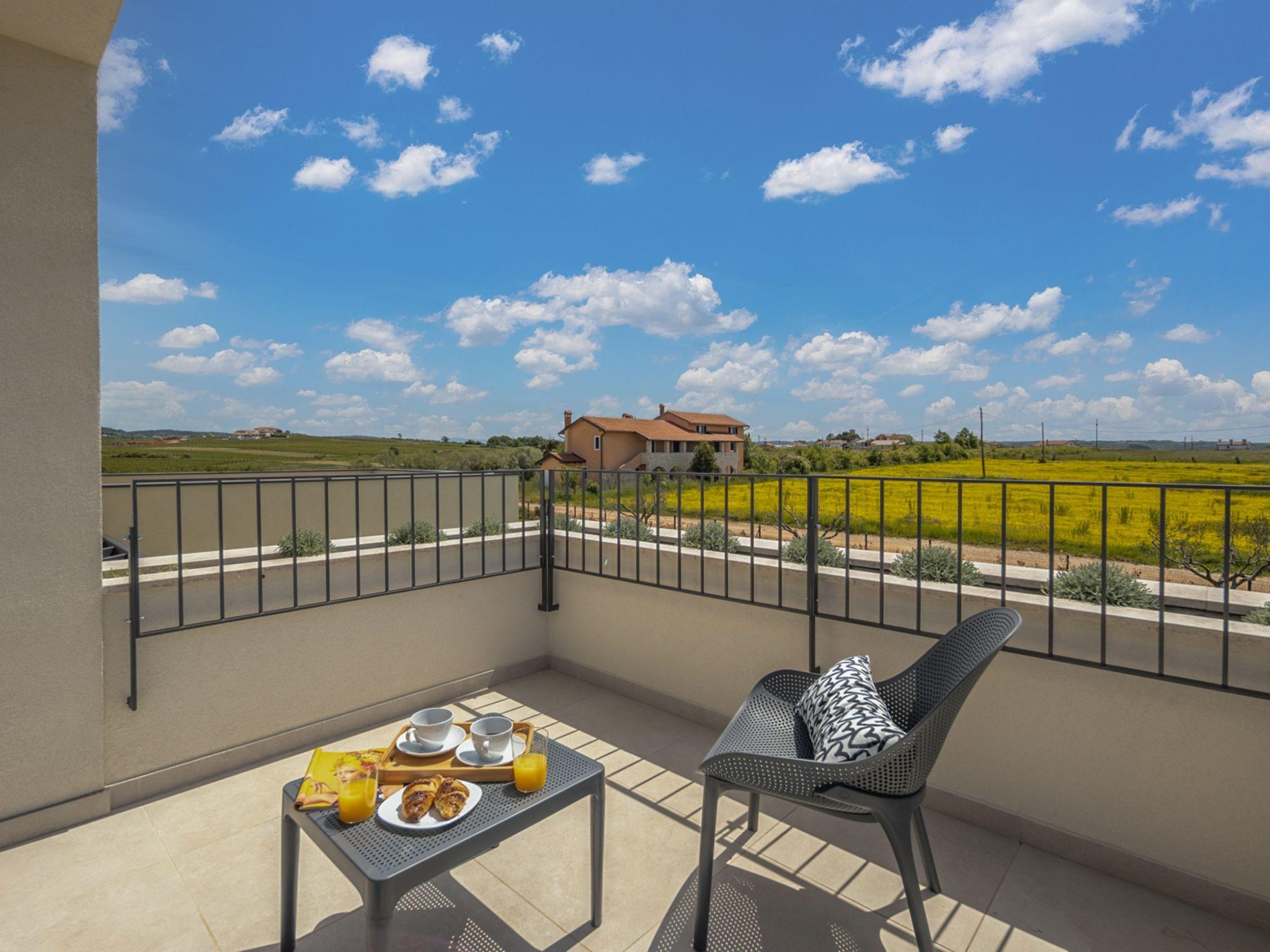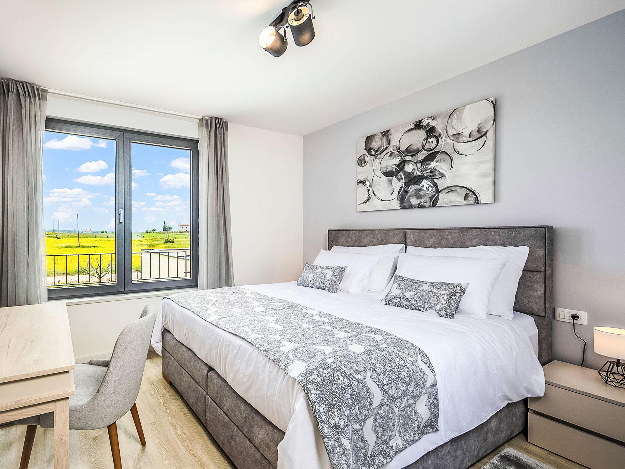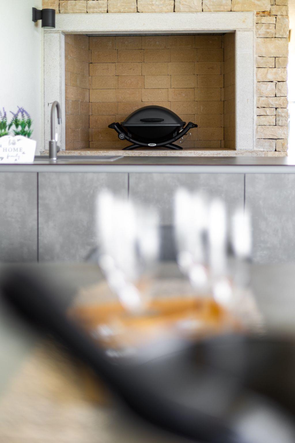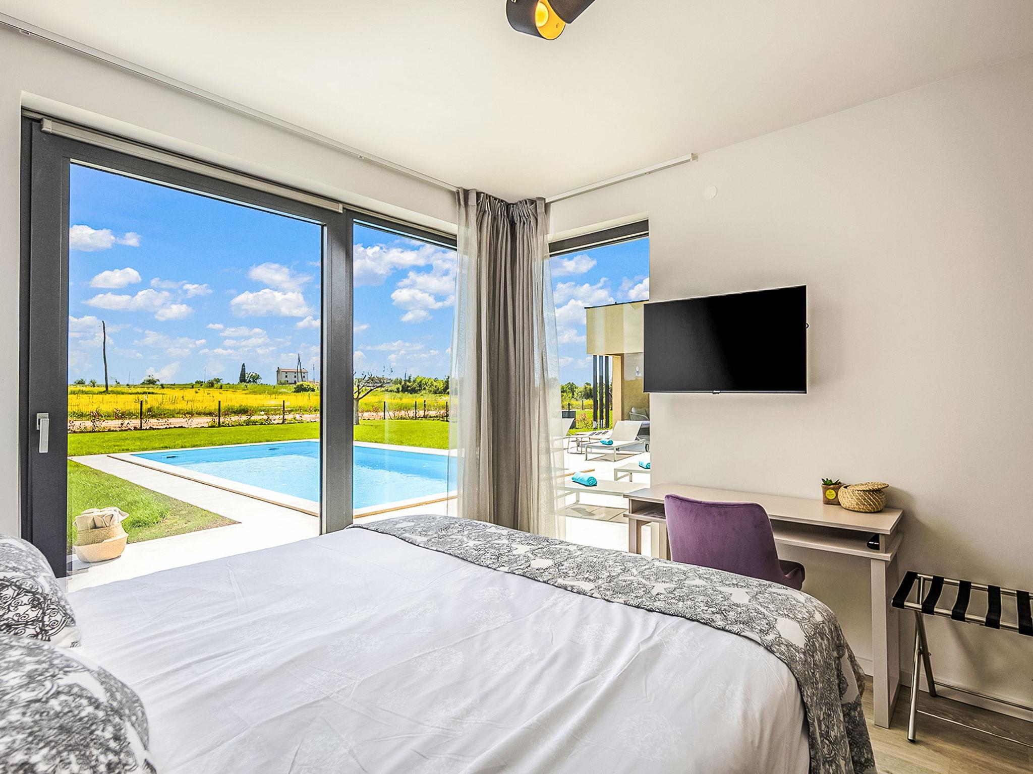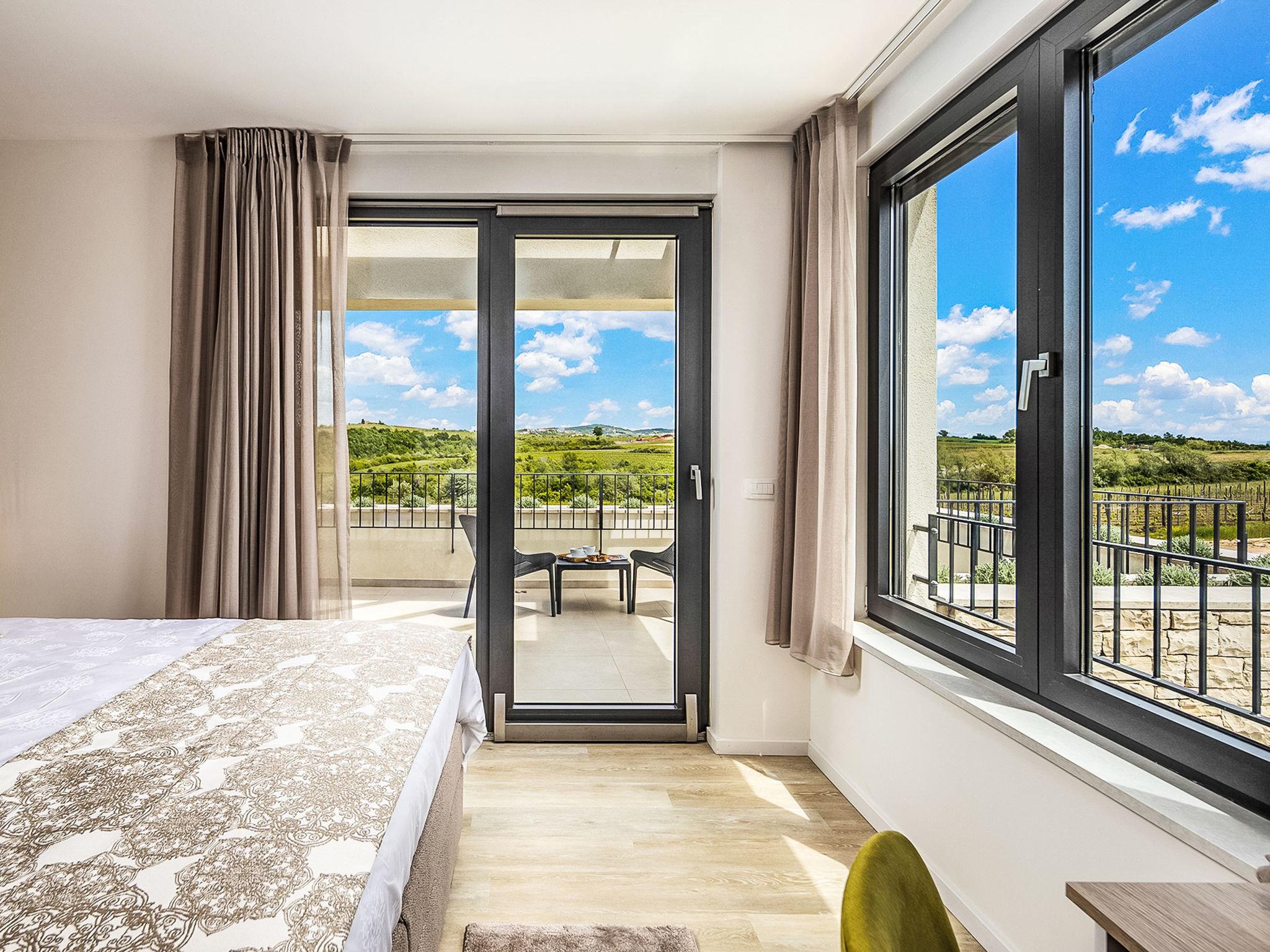 Luxurious villa "Stella & Alba", 2 storeys, built in 2021. 1 km from the centre of Nova Vas, 2 km from the centre of Brtonigla, 10 km from the centre of Novigrad, 8.2 km from the sea. Private: property 1'800 m2 (fenced) with lawn, 2 swimming pools angular, heated (4 x 10 m, depth 135 cm, seasonal availability: 10.Apr. - 01.Nov.) with internal staircase. Outdoor shower, hot tub, badminton, terrace (10 m2), garden furniture, barbecue house. In the house: internet access, trampoline, washing machine, bicycles available. Available: bicycles (4), children's bicycles (2). Motor access (500 m via unmade road). Parking (for 6 cars) at the house on the premises. Shop 1.5 km, restaurant 650 m, bus stop 4 km, pebble beach 8.2 km. Walking paths from the house, cycle lane 100 m. Nearby attractions: Aquapark 2 km. Groups of teenagers on request only. Please note: airfield 20 km from the property. Swimming pool heated (extra). Video surveillance of the driveway and parking. The unit consists of 2 houses rented as one unit.