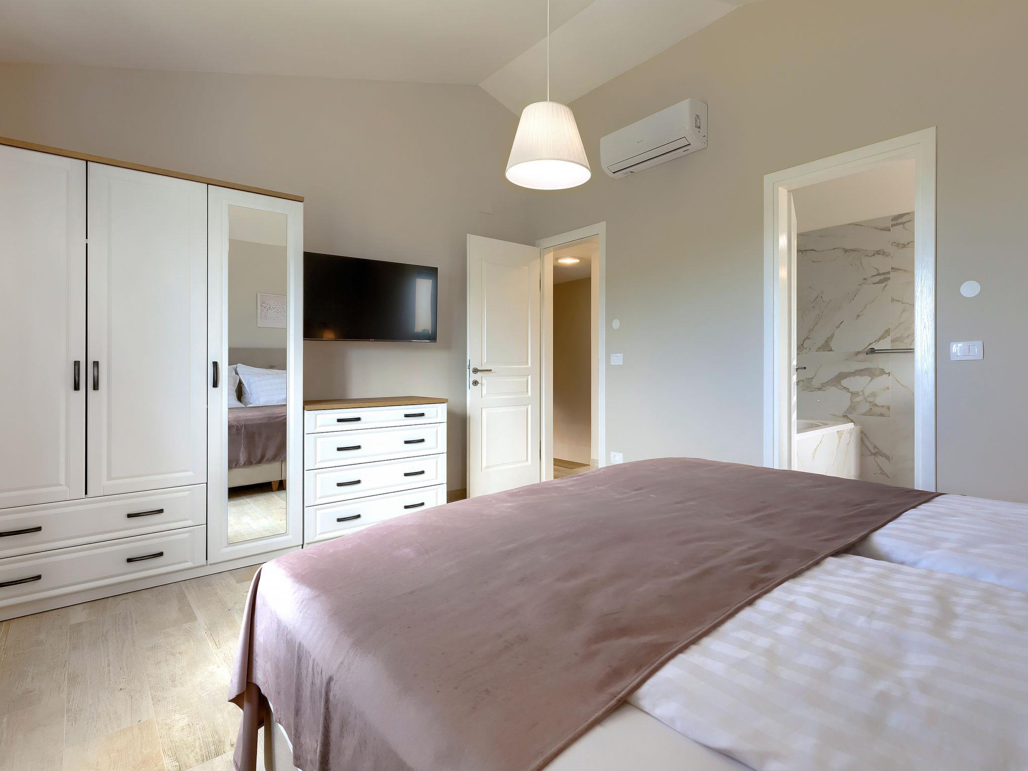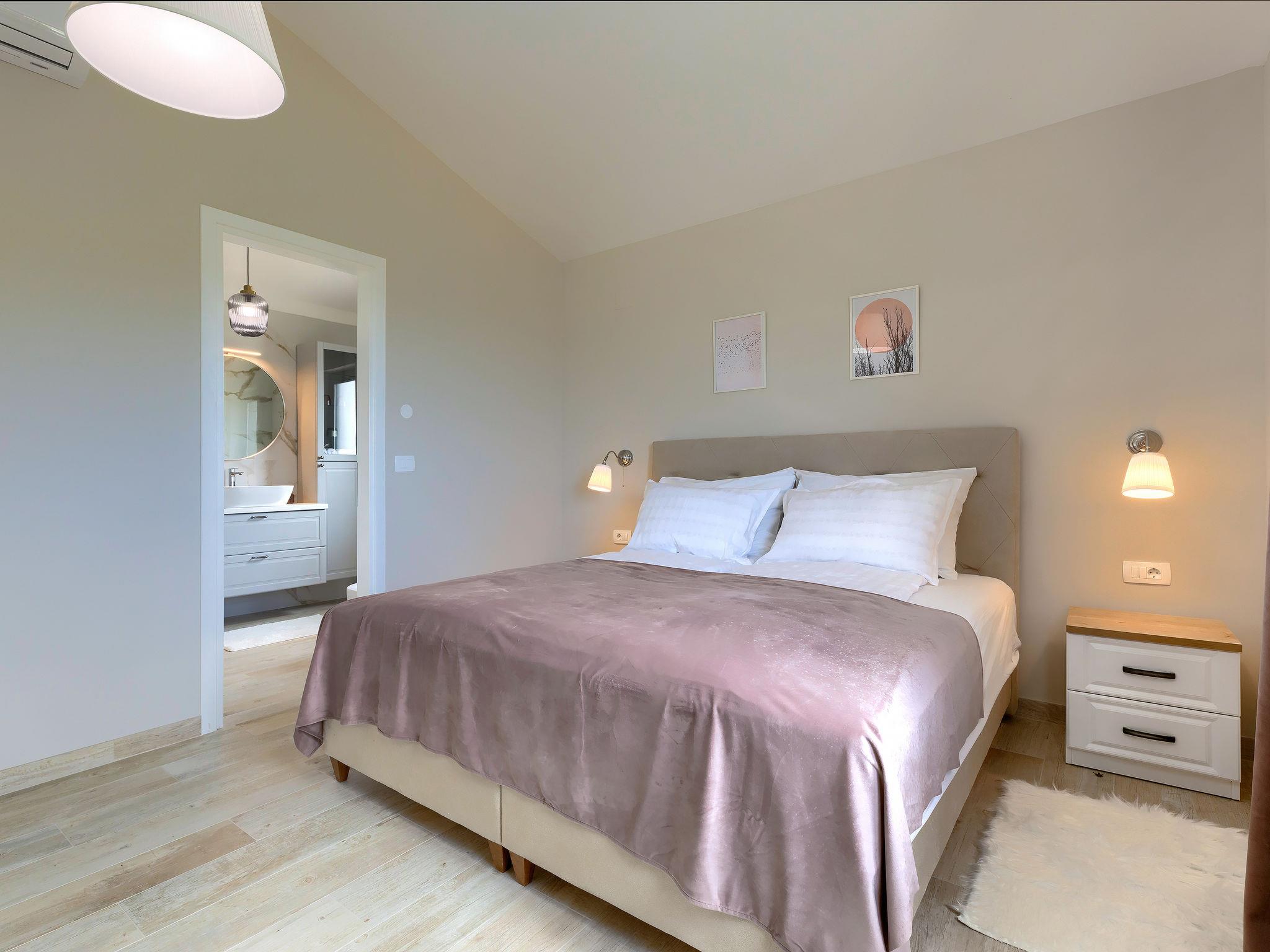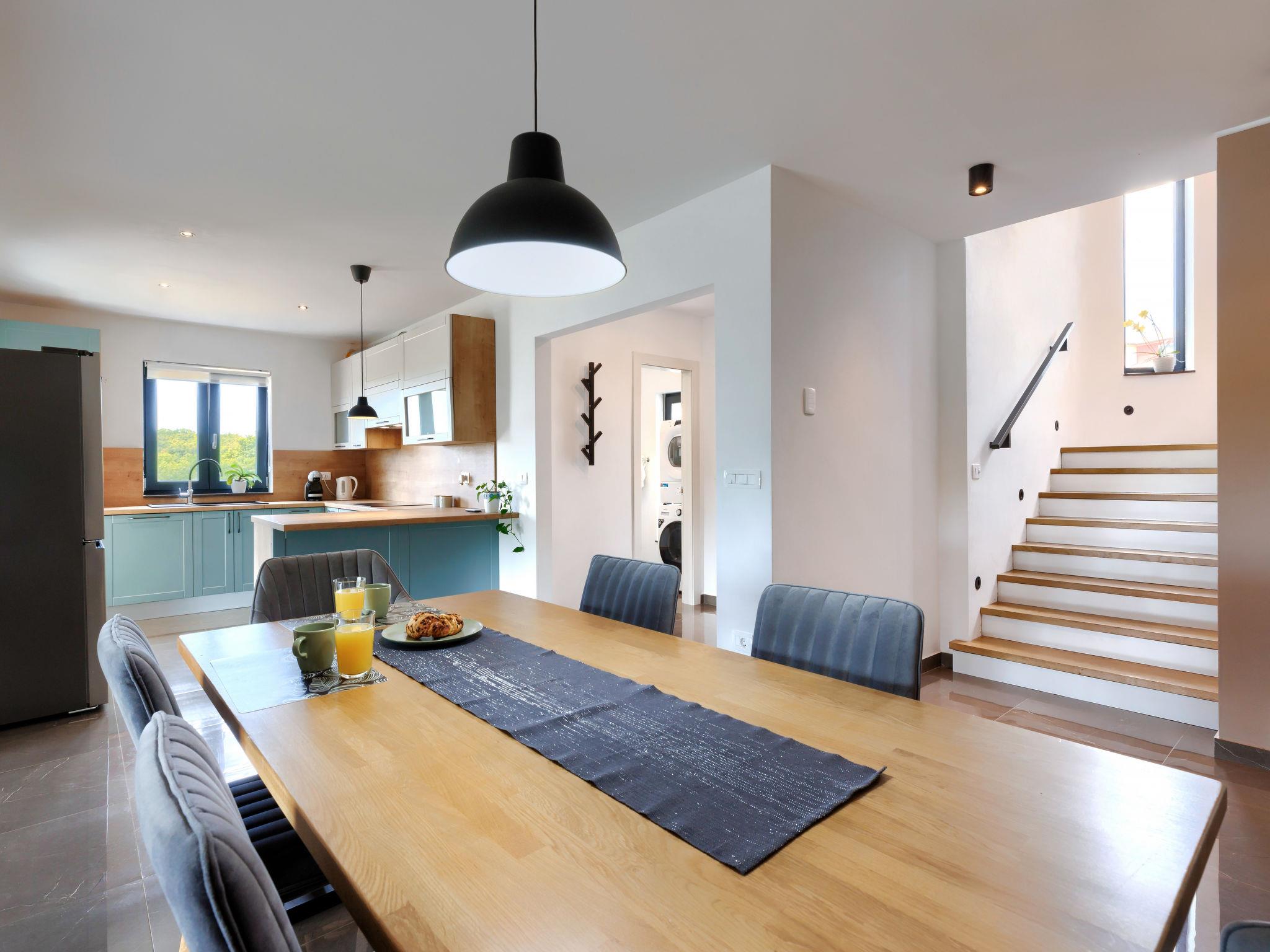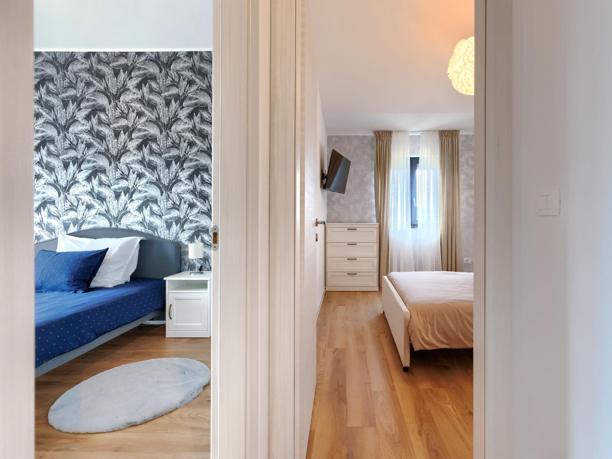 Beautiful single-family house "Villa Bella", 2 storeys. In the hamlet Srbani 4 km from the centre of Brtonigla, 9 km from the centre of Novigrad, in a quiet, sunny position, 9 km from the sea, in a cul-de-sac. Private: property 500 m2, swimming pool angular (8 x 4 m, depth 140 cm, seasonal availability: 01.May. - 01.Nov.) with internal staircase. Outdoor shower, garden furniture, barbecue. In the house: internet access, washing machine. Parking (for 2 cars) at the house on the premises. Shop 3 km, restaurant 3 km, bus stop 4.9 km, pebble beach 9 km, rocky beach 9 km. Walking paths from the house 100 m, cycle lane 150 m. Nearby attractions: aquapark 3 km. Please note: suitable for families. The owner does not accept any youth groups. Organizing a party is not allowed. The unit consists of 2 semi-detached houses rented as one unit.