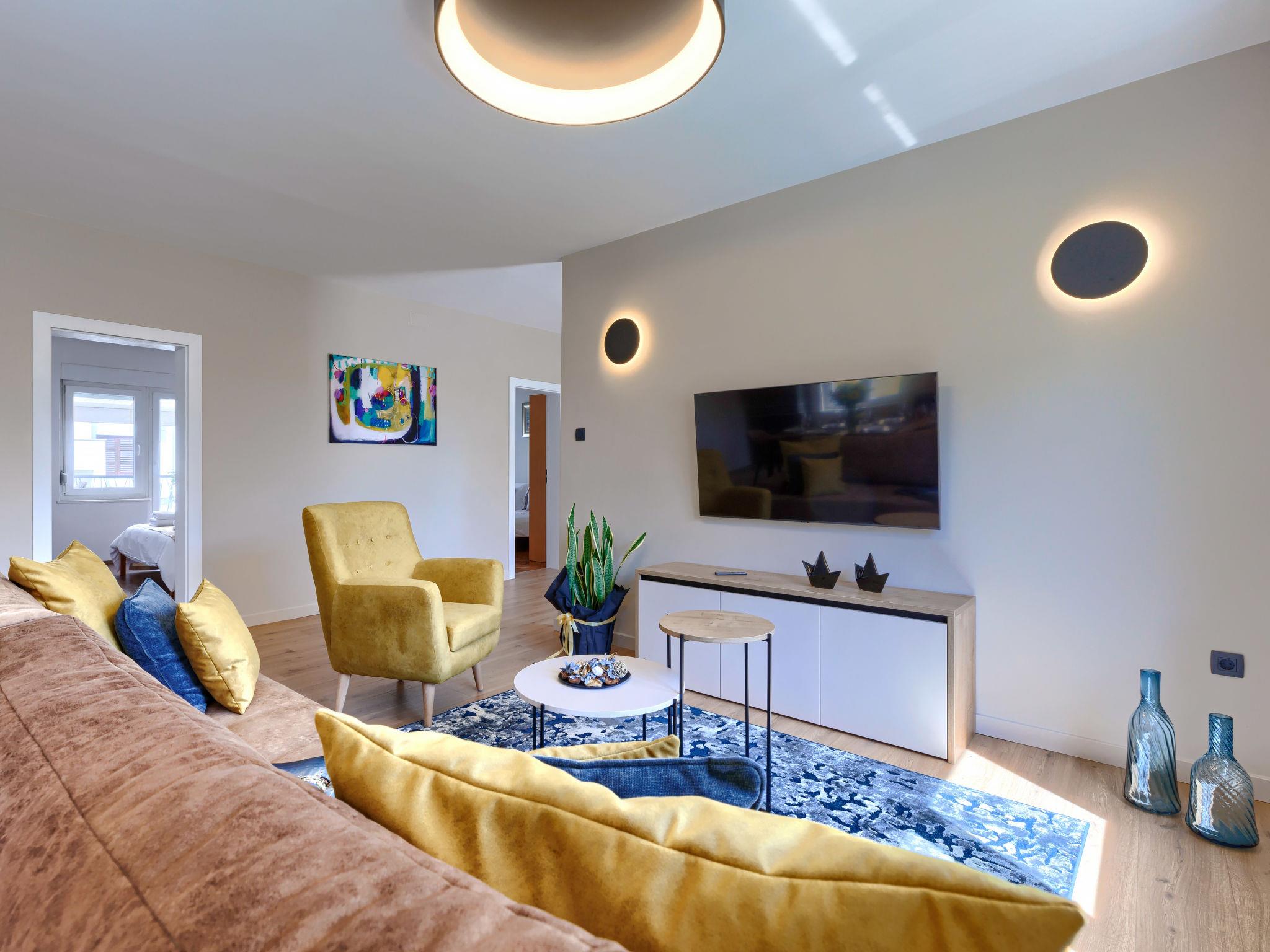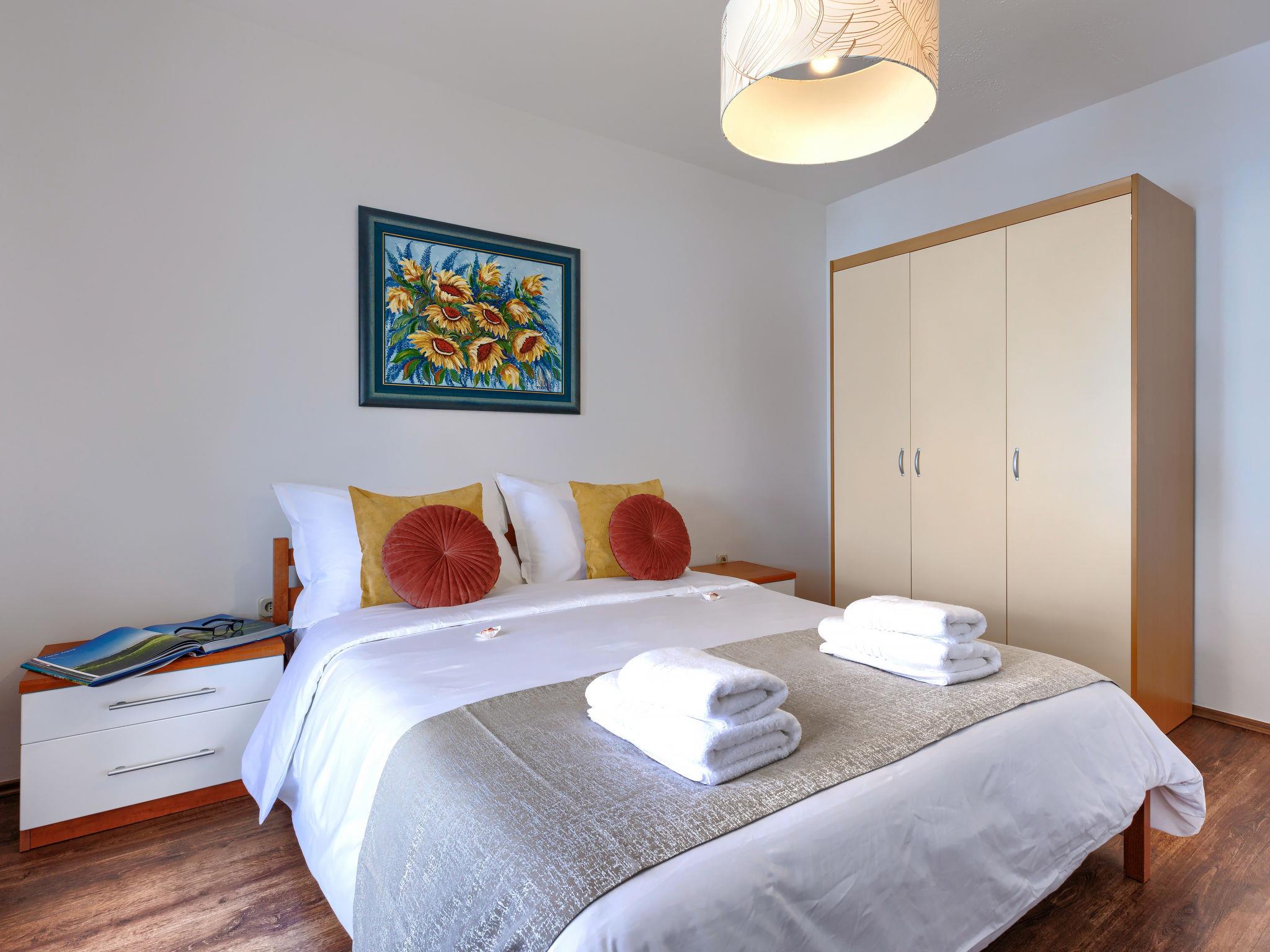 4-room apartment 100 m2 on 1st floor. Fully renovated, tasteful furnishings: living/dining room with satellite TV (flat screen), air conditioning. 1 room with 1 french bed (180 cm, length 200 cm), air conditioning. Exit to the terrace. 1 room with 1 french bed (160 cm, length 200 cm). 1 room with 1 french bed (160 cm, length 200 cm). Exit to the terrace. Open kitchen (4 hot plates, oven, dishwasher, toaster, kettle, microwave, freezer, electric coffee machine). Shower/WC, sep. WC. Forced-air heating. Terrace 20 m2. Terrace furniture, deck chairs (2). View of the sea. Facilities: iron, hair dryer. Internet (WiFi, free). Please note: non-smoking house. Maximum 1 pet/ dog allowed. Private entrance.