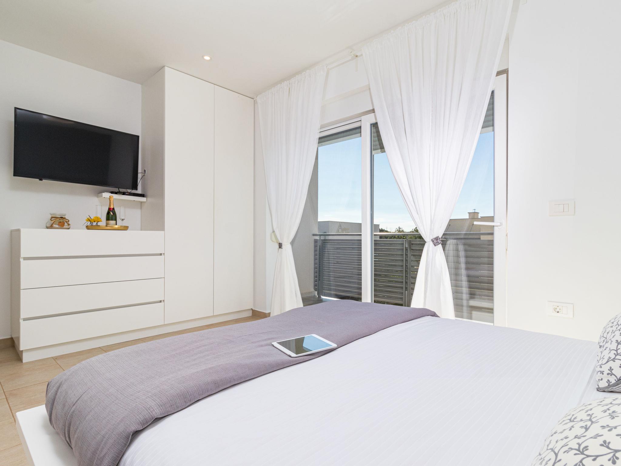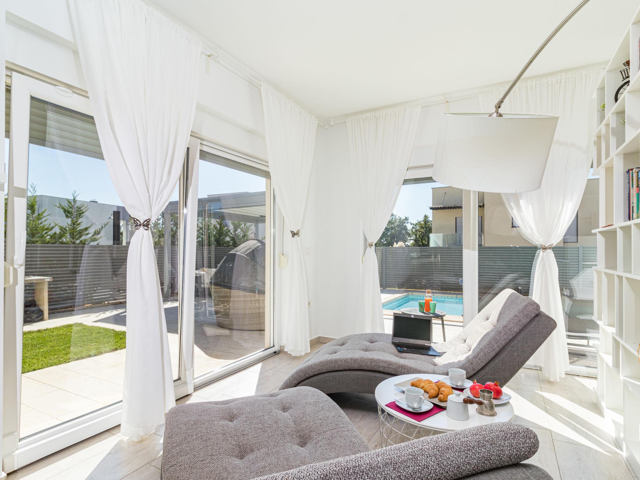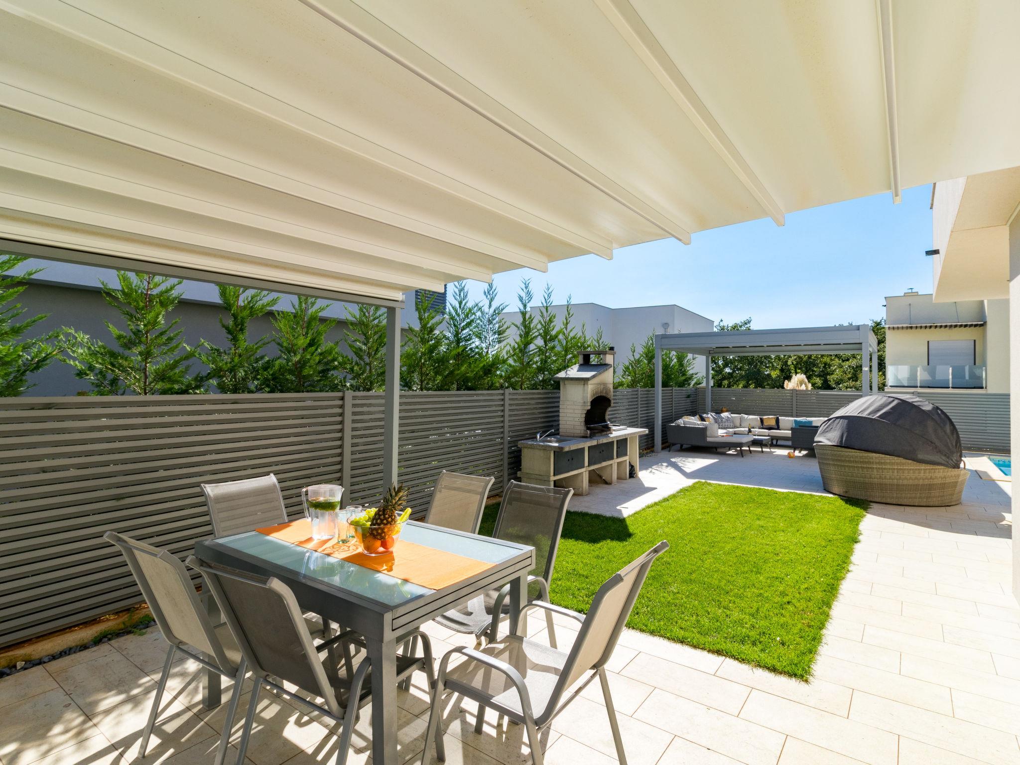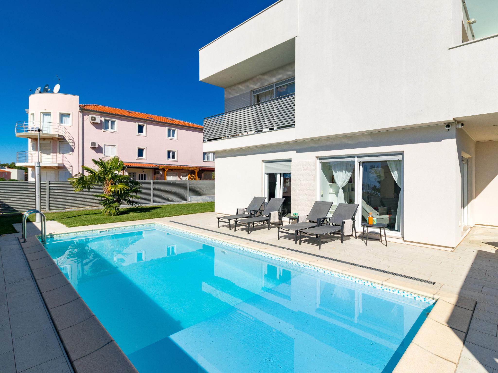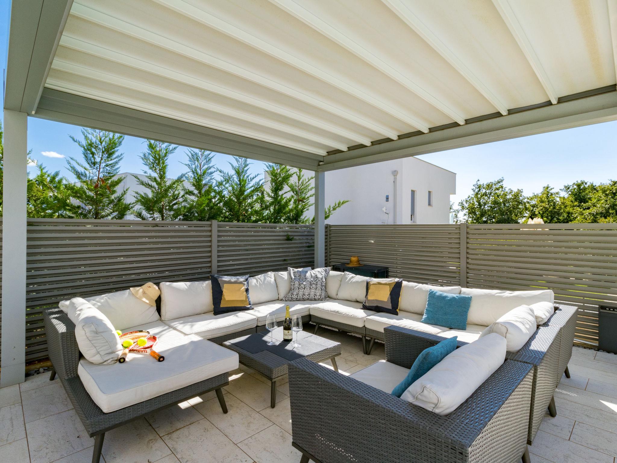 Modern single-family house "Villa Virtus", 2 storeys, built in 2016. 4 km from the centre of Novigrad, 8 km from the centre of Umag, 24 km from the centre of Porec, in the residential district, from the sea, 200 m from the beach. Private: property 500 m2 (fenced), swimming pool angular, heated (8 x 4 m, depth 145 cm, seasonal availability: 27.Mar. - 05.Nov.). Outdoor shower, hot tub, terrace, garden furniture. In the house: internet access, roof terrace, burglar alarm system, washing machine. Parking (for 2 cars) at the house on the premises. Shop 200 m, supermarket 4 km, bus stop 290 m, rocky beach 200 m. Marina 8 km.