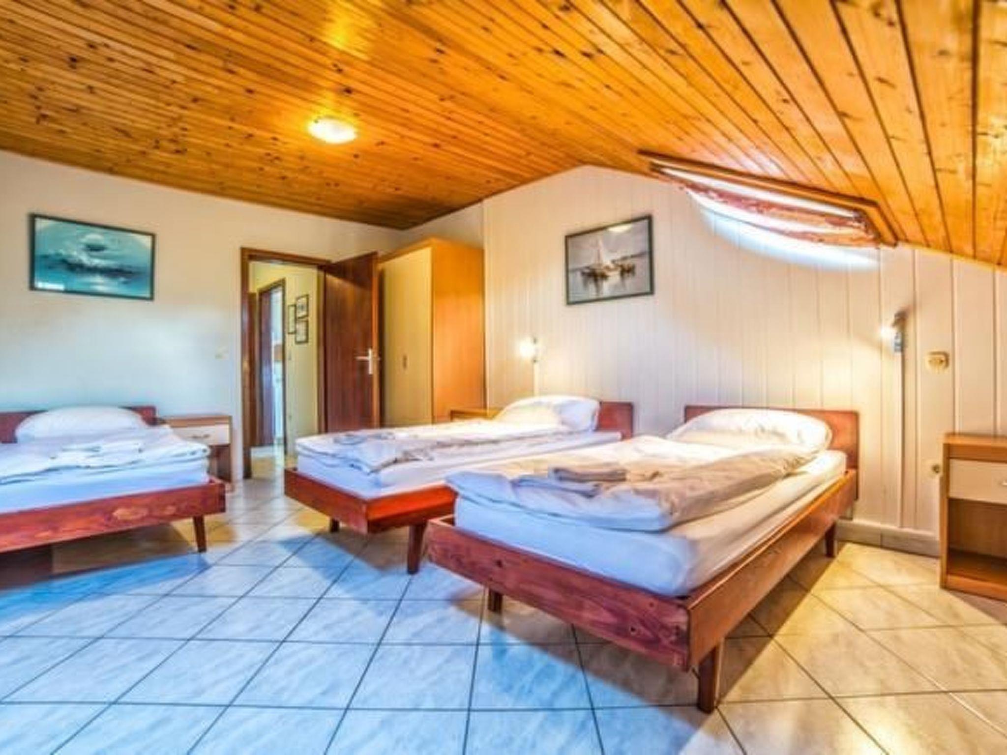 This 75 m² attic flat is located on the second floor and has sloping ceilings. In addition to the rooms already mentioned, there are two bedrooms, each furnished with a double bed (200x200cm) and an additional single bed (100x200cm). If necessary, the owner will be happy to provide a cot.