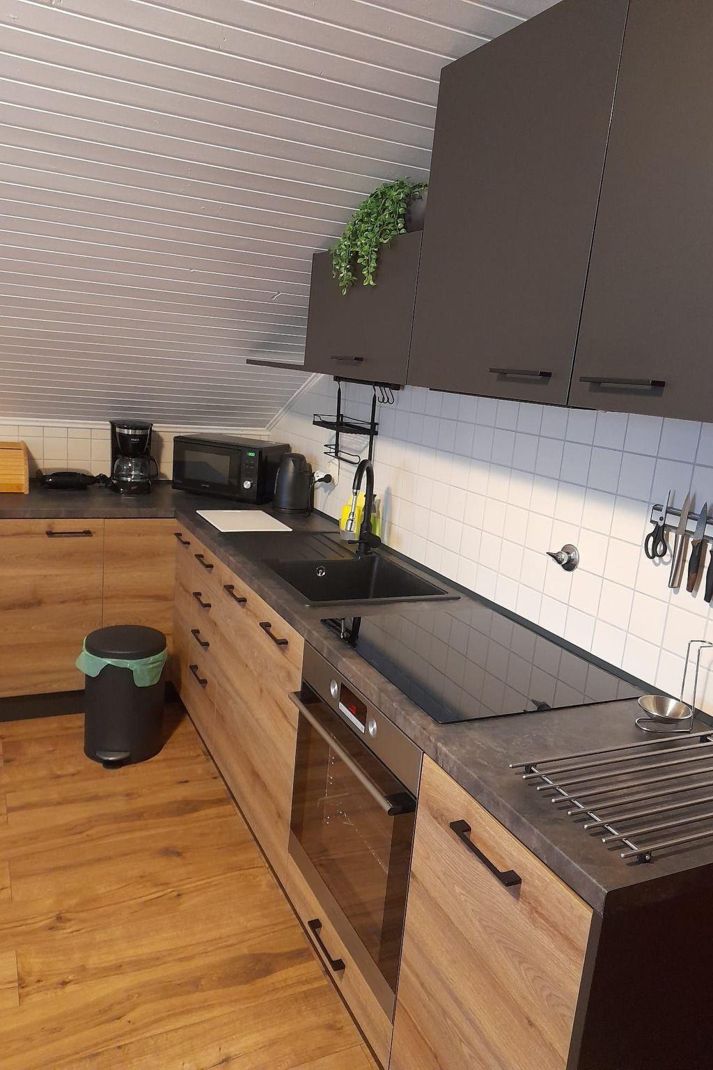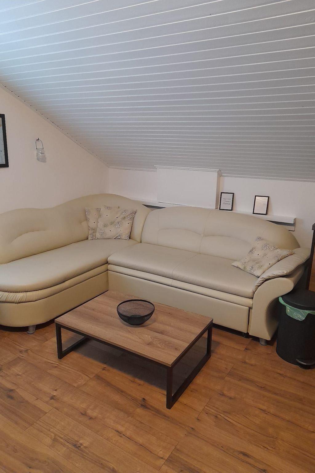 The approx. 65 m² attic flat is located on the second floor and has two bedrooms. The first bedroom is furnished with a double bed (200x200cm), while the second bedroom has two single beds (100x200cm each). The owner will be happy to provide you with a cot free of charge.