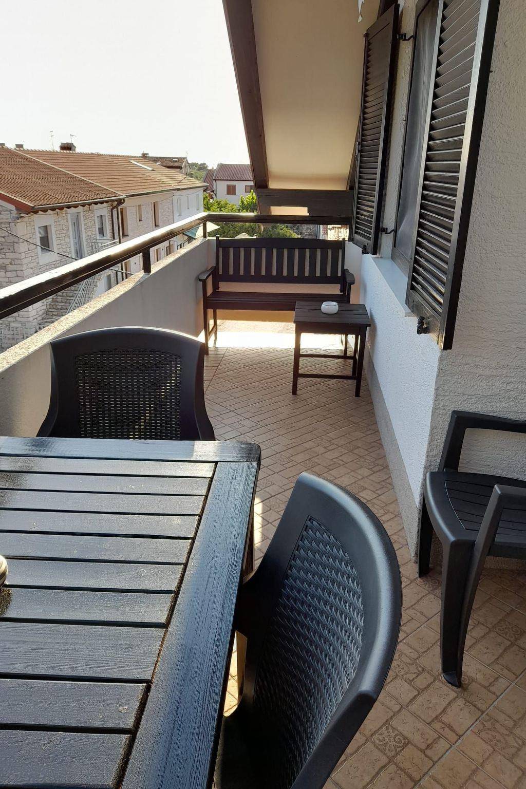 The balcony, equipped with garden furniture and an awning, is approximately 15 m² in size.