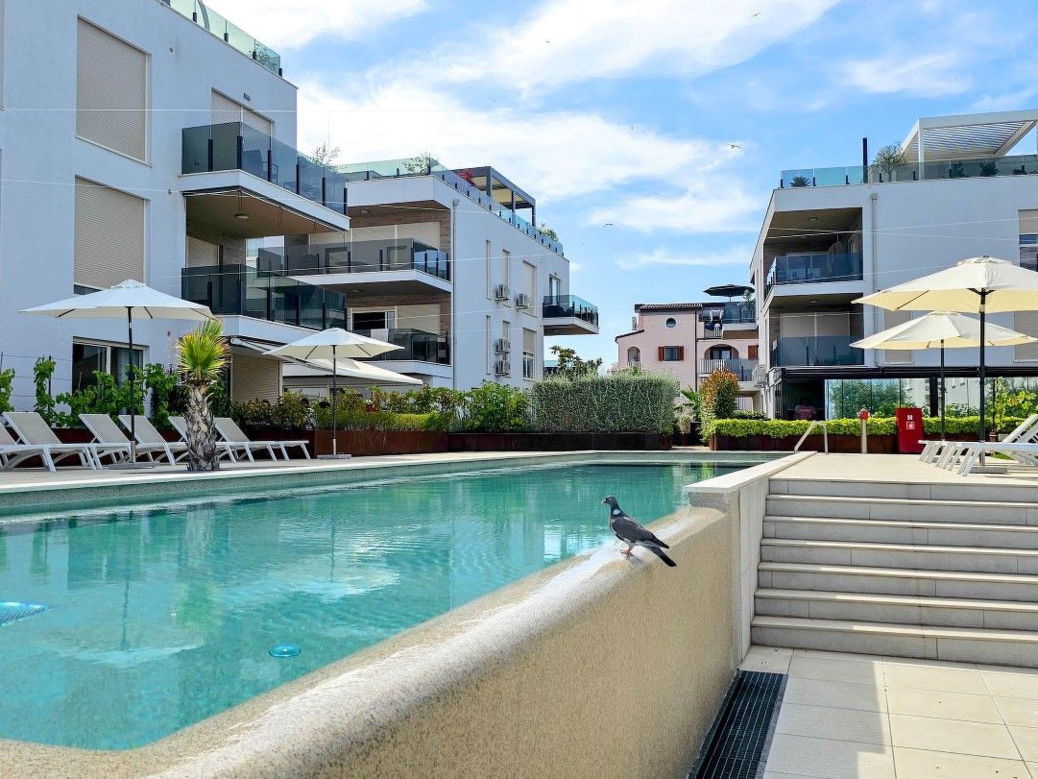 Apartment Green Oasis B3 is located in a modern building complex. With a shared outdoor pool equipped with deckchairs and umbrellas, guests can enjoy a refreshing swim and relax in the sun.
