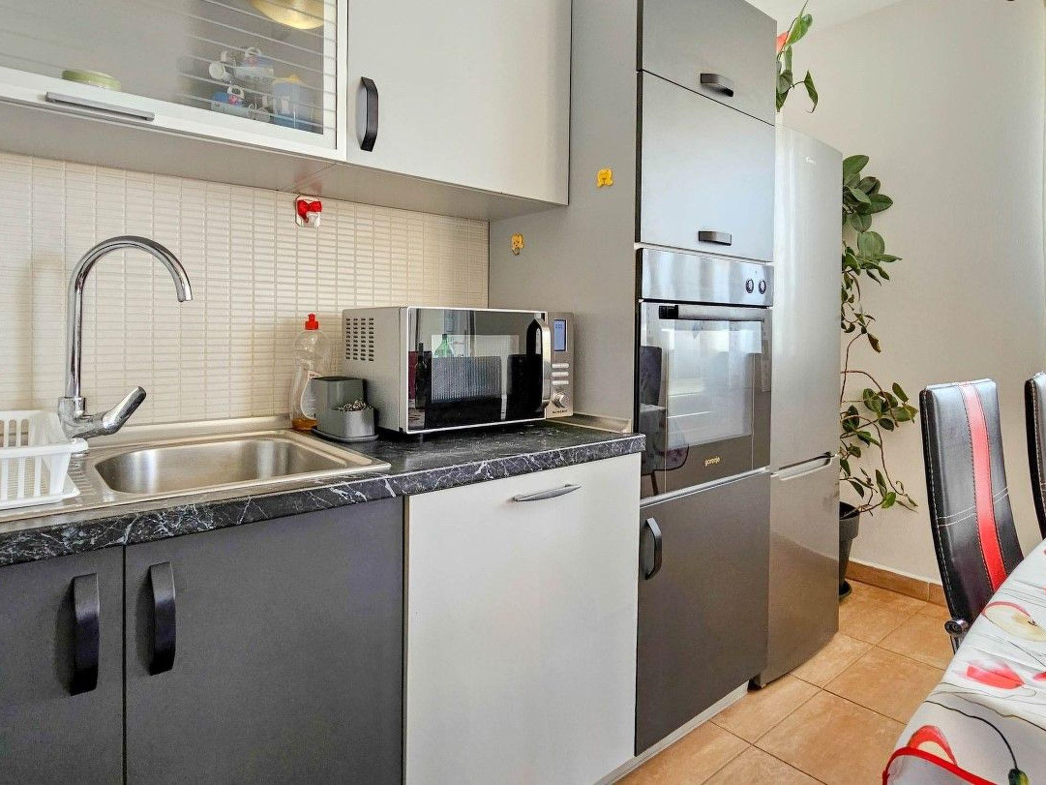 Step outside to the lovely terrace, an ideal spot for leisurely mornings or tranquil evenings. The apartment is part of a complex that offers a garden and a pool for communal use, providing a perfect blend of private retreat and social interaction opportunities. The outdoor offerings are designed to enhance your vacation, allowing for refreshing swims or relaxed lounging under the sun.