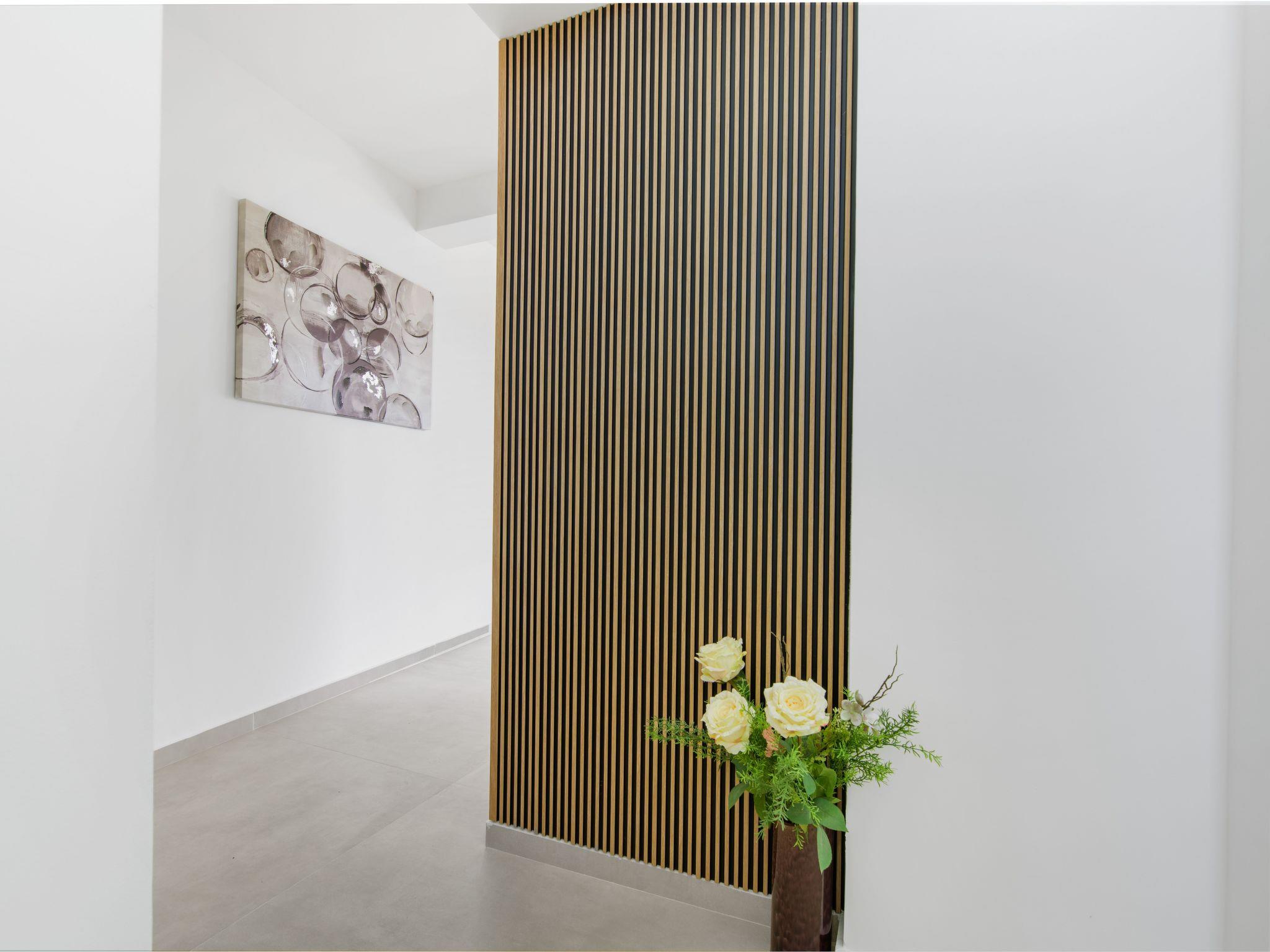 In the outdoor area of the villa, the 32 m2 pool invites you to relax and enjoy a refreshing dip. The surrounding terrace and the spacious garden offer plenty of space for relaxing under the sun and spending time together outdoors. Whether reading, sunbathing or enjoying the peace and quiet, this area will become your private paradise.