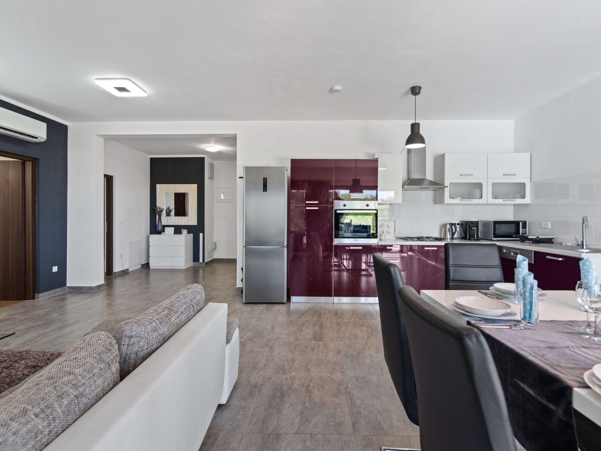 The area surrounding Bužinija is rich in activities and sights. In addition to the immediate proximity to the sea, where you can enjoy various water sports, the surrounding area invites you to take long walks and cycle tours. The nearest town centre and shopping facilities are just 2500 m away. Other towns such as Porec, Umag and Kopar are easily reached by car and offer cultural attractions and gastronomic delights. There is also an amusement park just 1 km away, perfect for a fun day out for children.