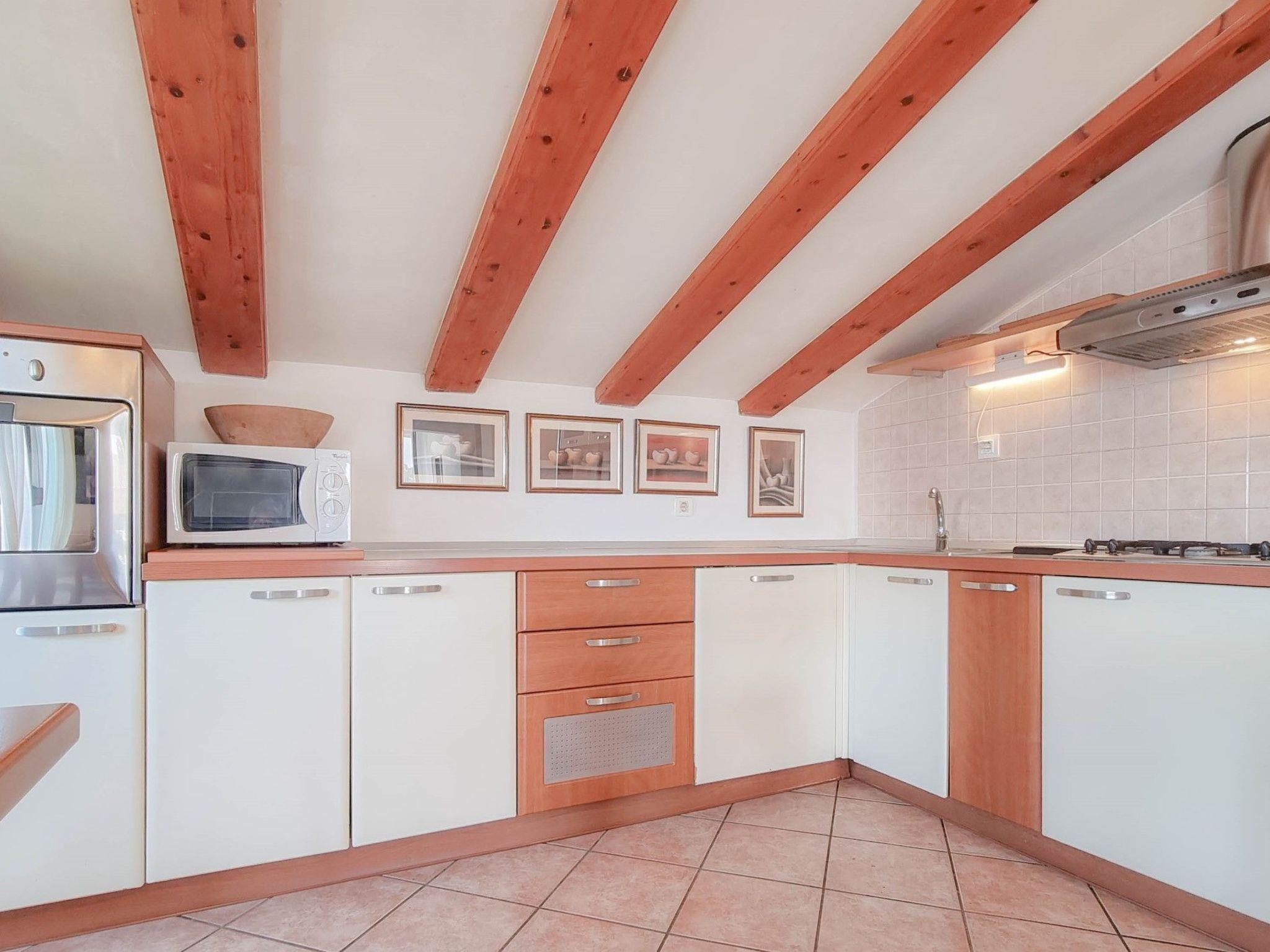 This second-floor haven spans 20 square meters, offering a well-appointed interior that combines comfort with functionality. The bedroom, furnished with a comfortable double bed, promises restful nights. The integrated kitchen area is fully equipped to cater to your culinary needs, featuring a combination of gas and electric stove, oven, refrigerator, dishwasher, microwave, and coffee maker. Added conveniences include a washing machine, ensuring a worry-free stay. Air conditioning, available in part of the apartment, ensures your comfort during warmer days.