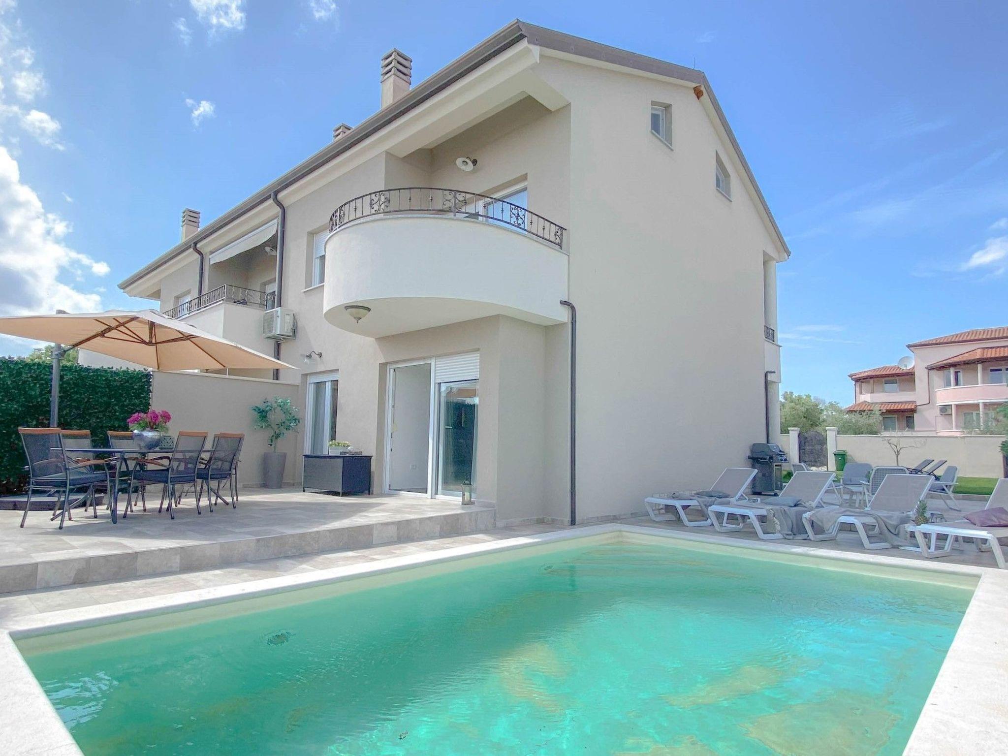 On the first floor there are three comfortable bedrooms, each with comfortable beds, and an additional bathroom with shower and toilet. Outside, a spacious terrace with a barbecue awaits you, ideal for enjoying outdoor meals, while you can seek refreshment in the private pool.