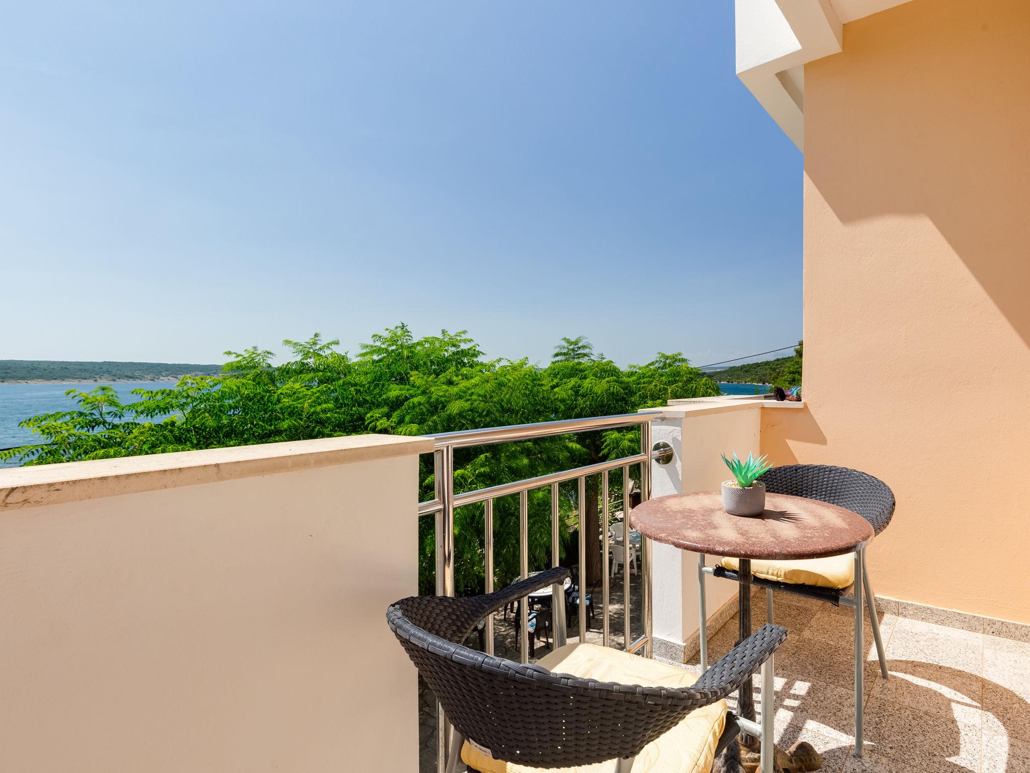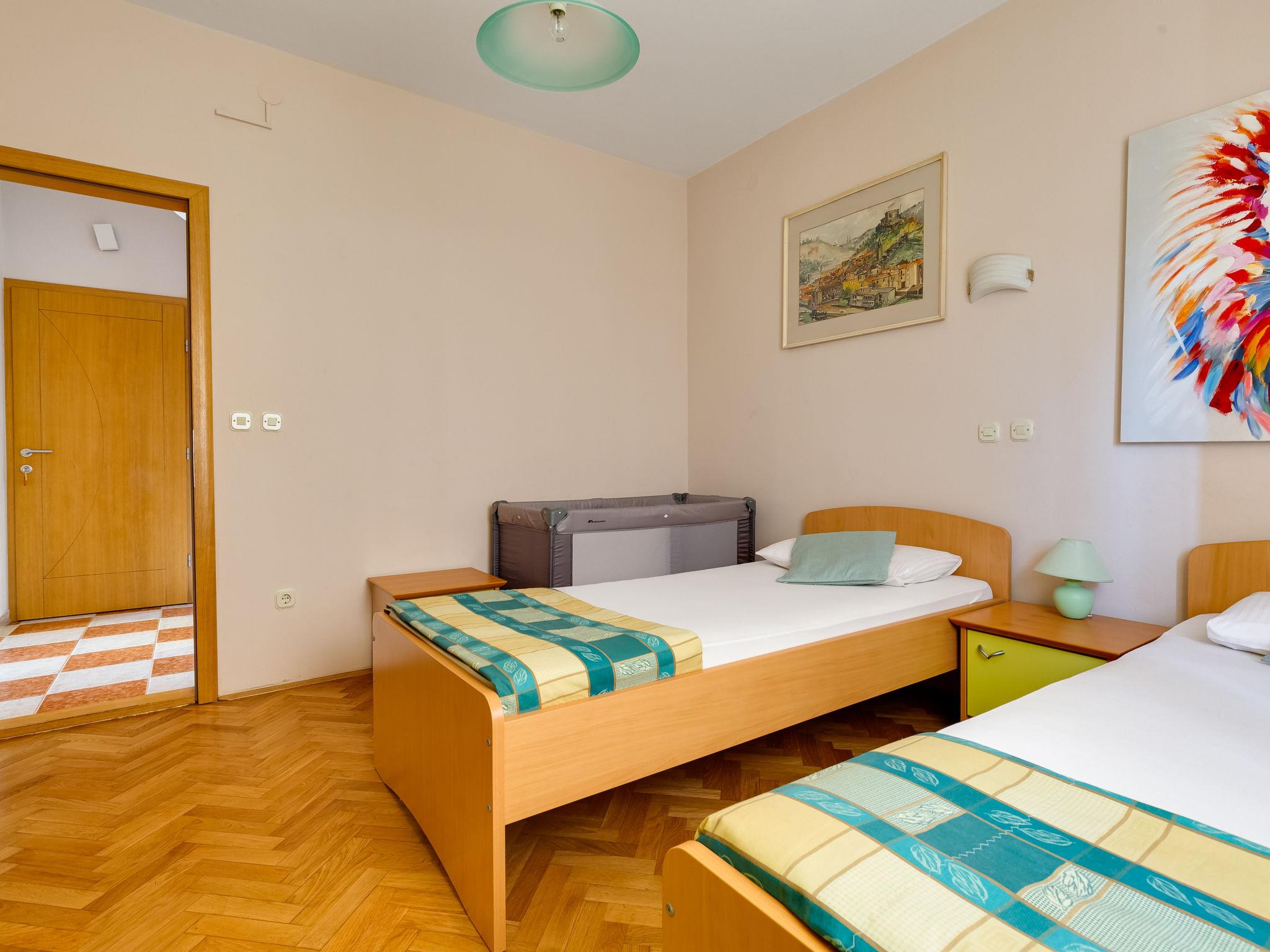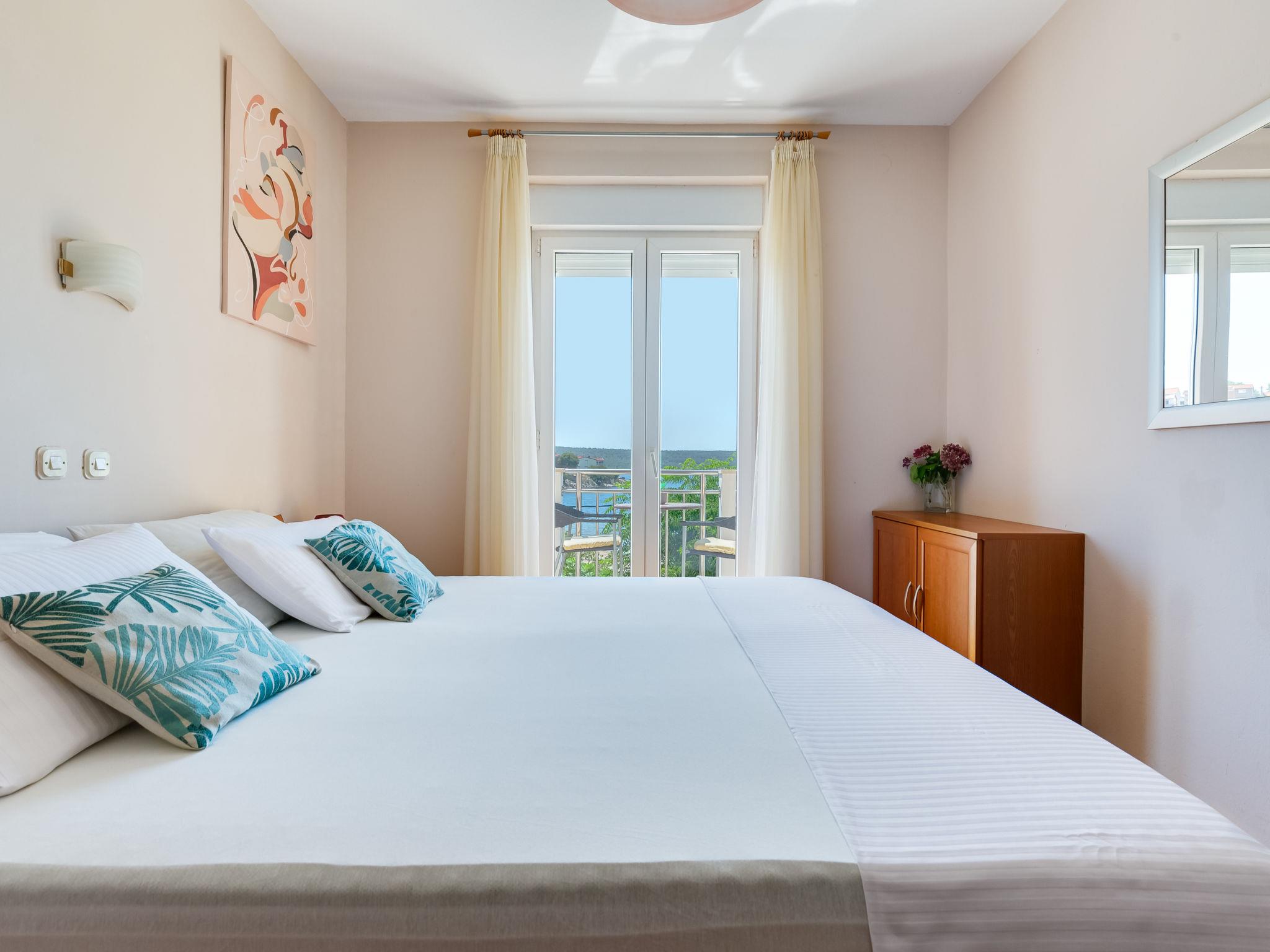 "Daria 1", 3-room apartment 90 m2 on 1st floor. Living/dining room with 1 sofabed, satellite TV and air conditioning. Exit to the terrace. 1 room with 1 double bed and shower/WC. Exit to the terrace. 1 room with 2 beds. Open kitchen (oven, dishwasher, 4 ceramic glass hob hotplates, freezer). Bath/bidet/WC. No heating option. Terrace 20 m2, roofed, south facing position terrace 4 m2. Terrace furniture. Marvellous view of the sea. Facilities: washing machine. Internet (WiFi, free).