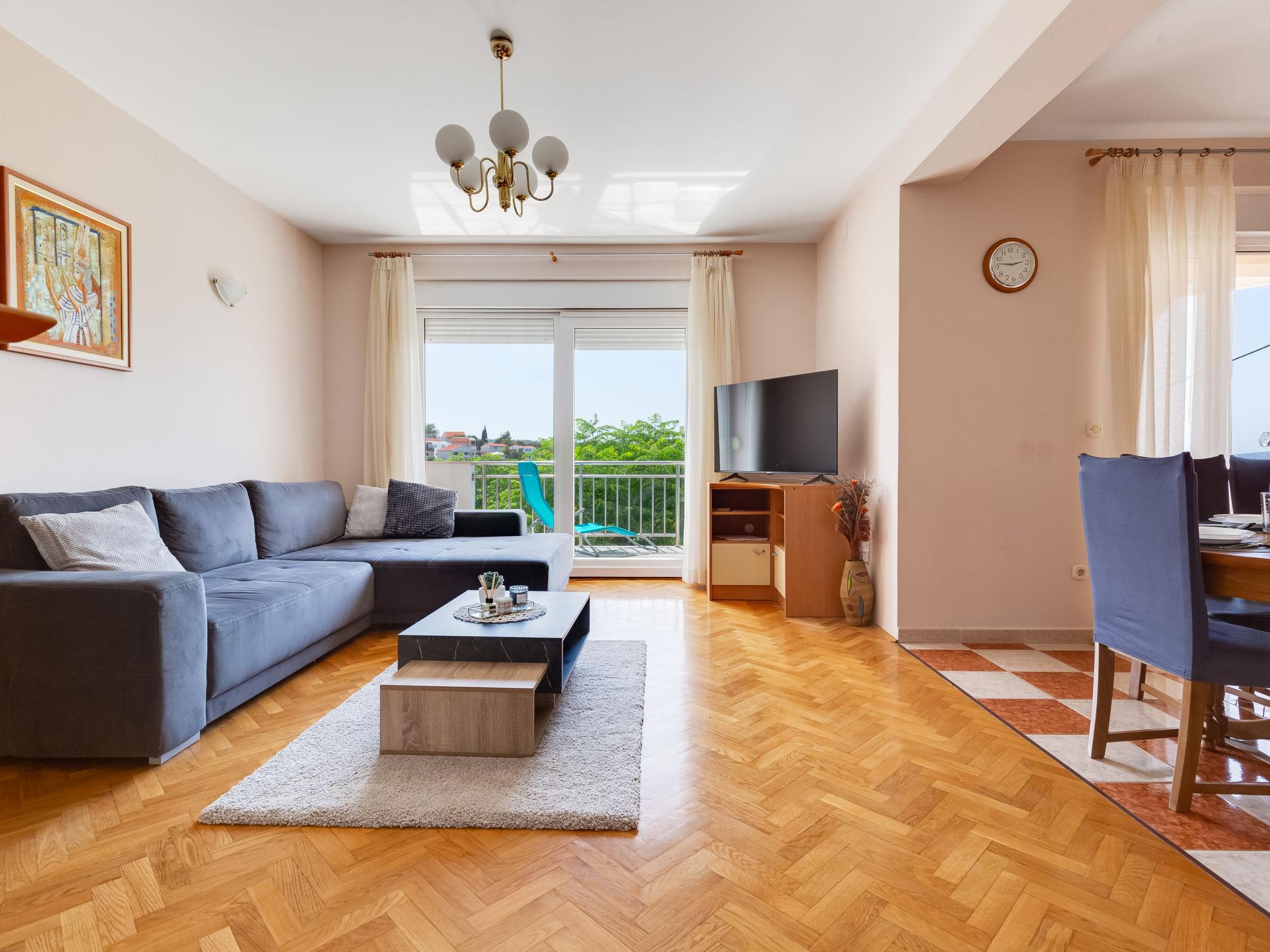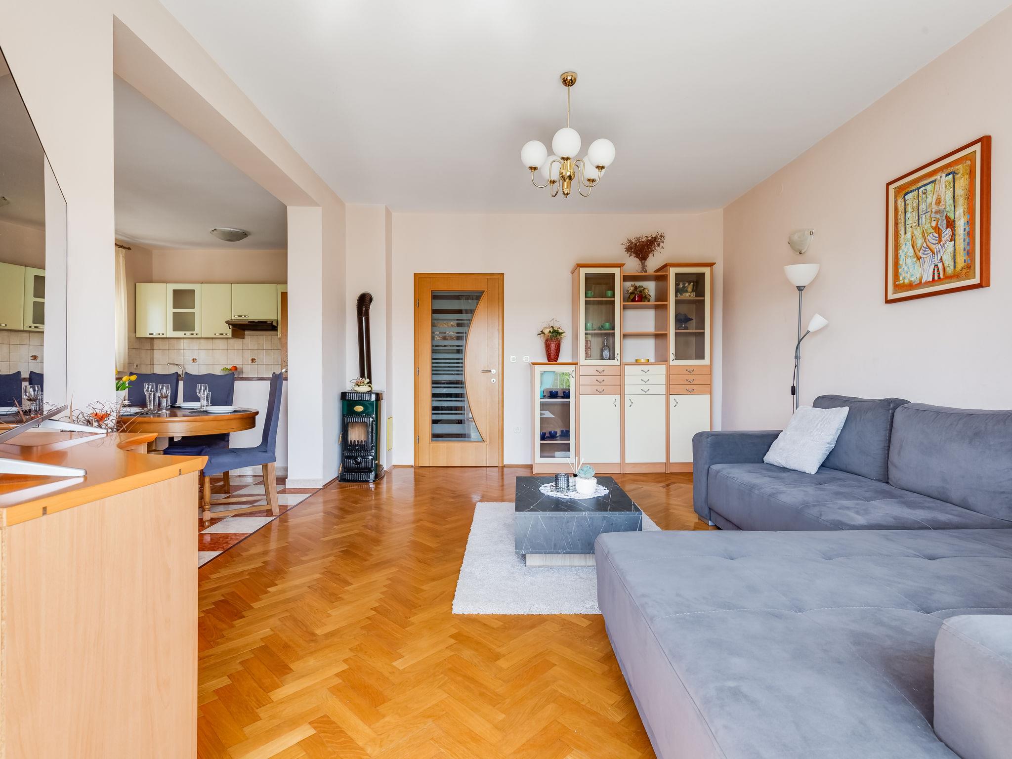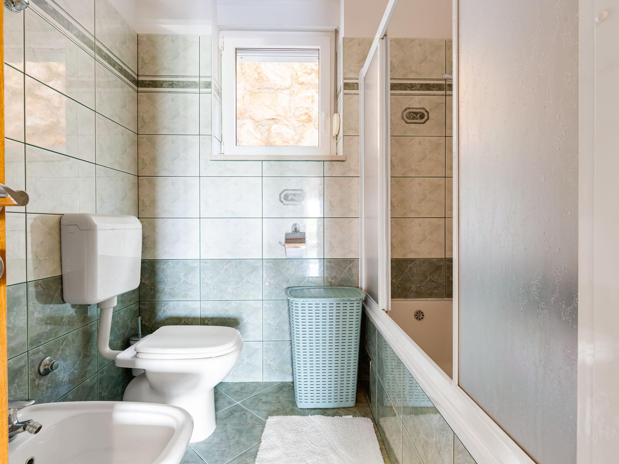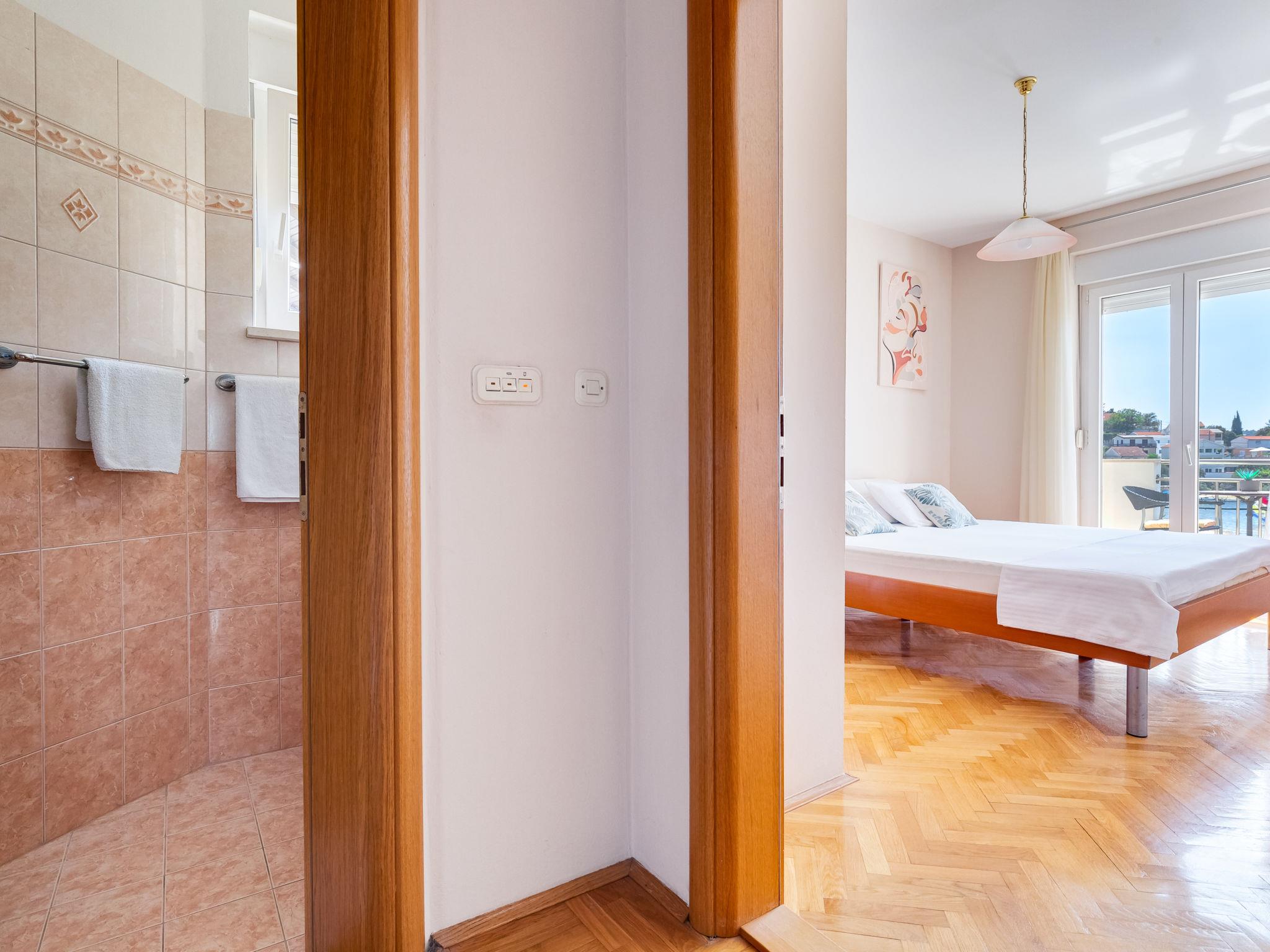 "Daria 1", 3-room apartment 90 m2 on 1st floor. Living/dining room with 1 sofabed, satellite TV and air conditioning. Exit to the terrace. 1 room with 1 double bed and shower/WC. Exit to the terrace. 1 room with 2 beds. Open kitchen (oven, dishwasher, 4 ceramic glass hob hotplates, freezer). Bath/bidet/WC. No heating option. Terrace 20 m2, roofed, south facing position terrace 4 m2. Terrace furniture. Marvellous view of the sea. Facilities: washing machine. Internet (WiFi, free).
