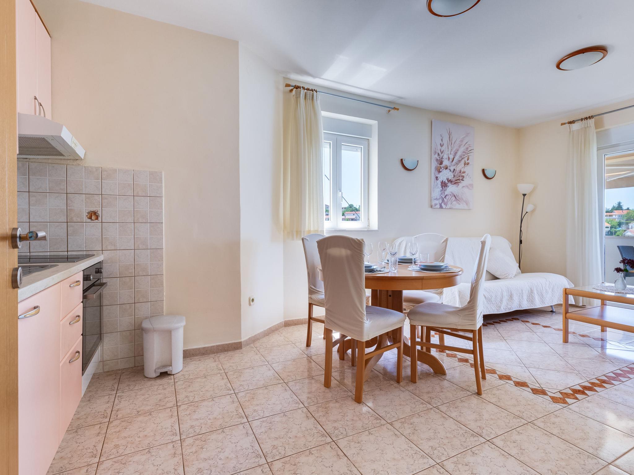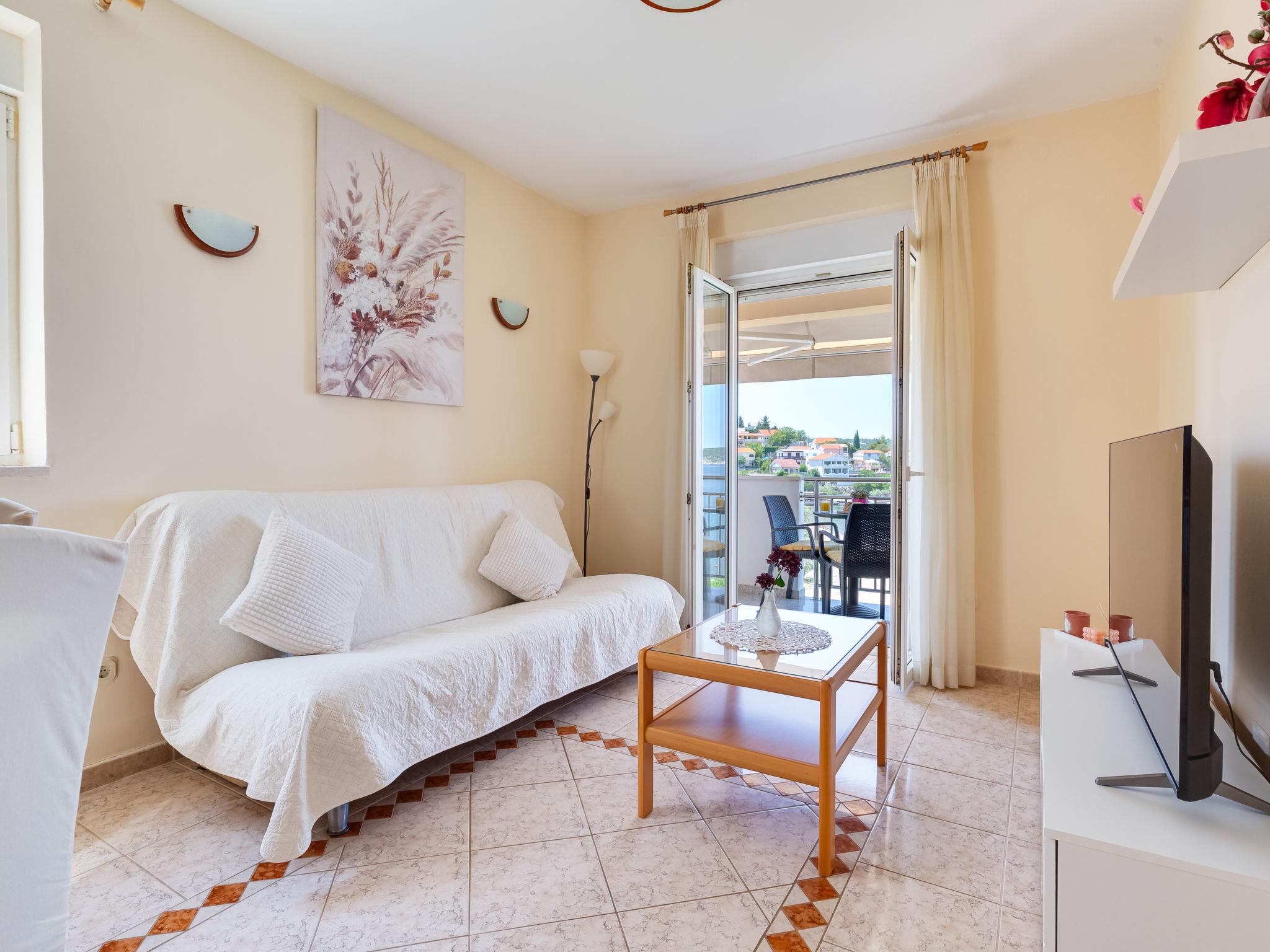 "Daria 3", 2-room apartment 50 m2 on 2nd floor. Living/dining room with 1 sofabed, satellite TV and air conditioning. Exit to the balcony. 1 room with 1 double bed. Open kitchen (4 hot plates, oven, dishwasher, freezer). Shower/WC. No heating option. Balcony. Balcony furniture. Marvellous view of the sea. Facilities: washing machine. Internet (WiFi, free).