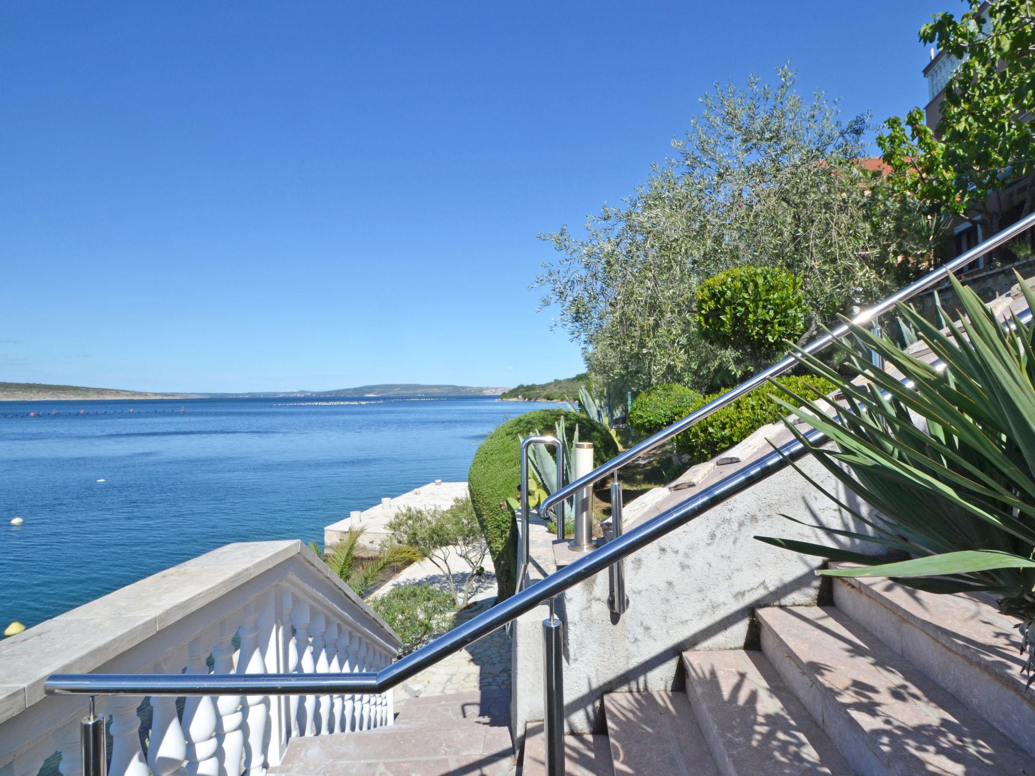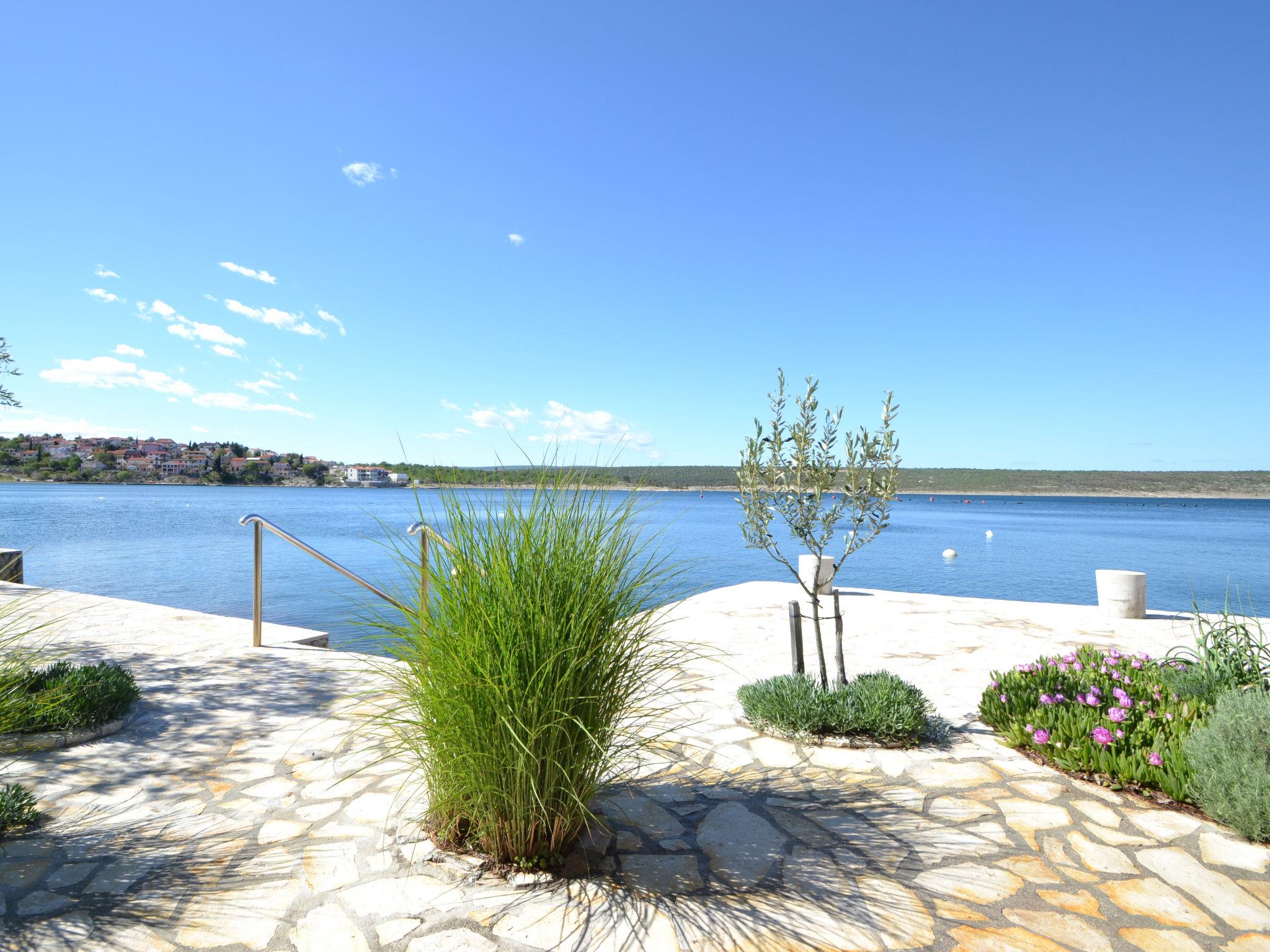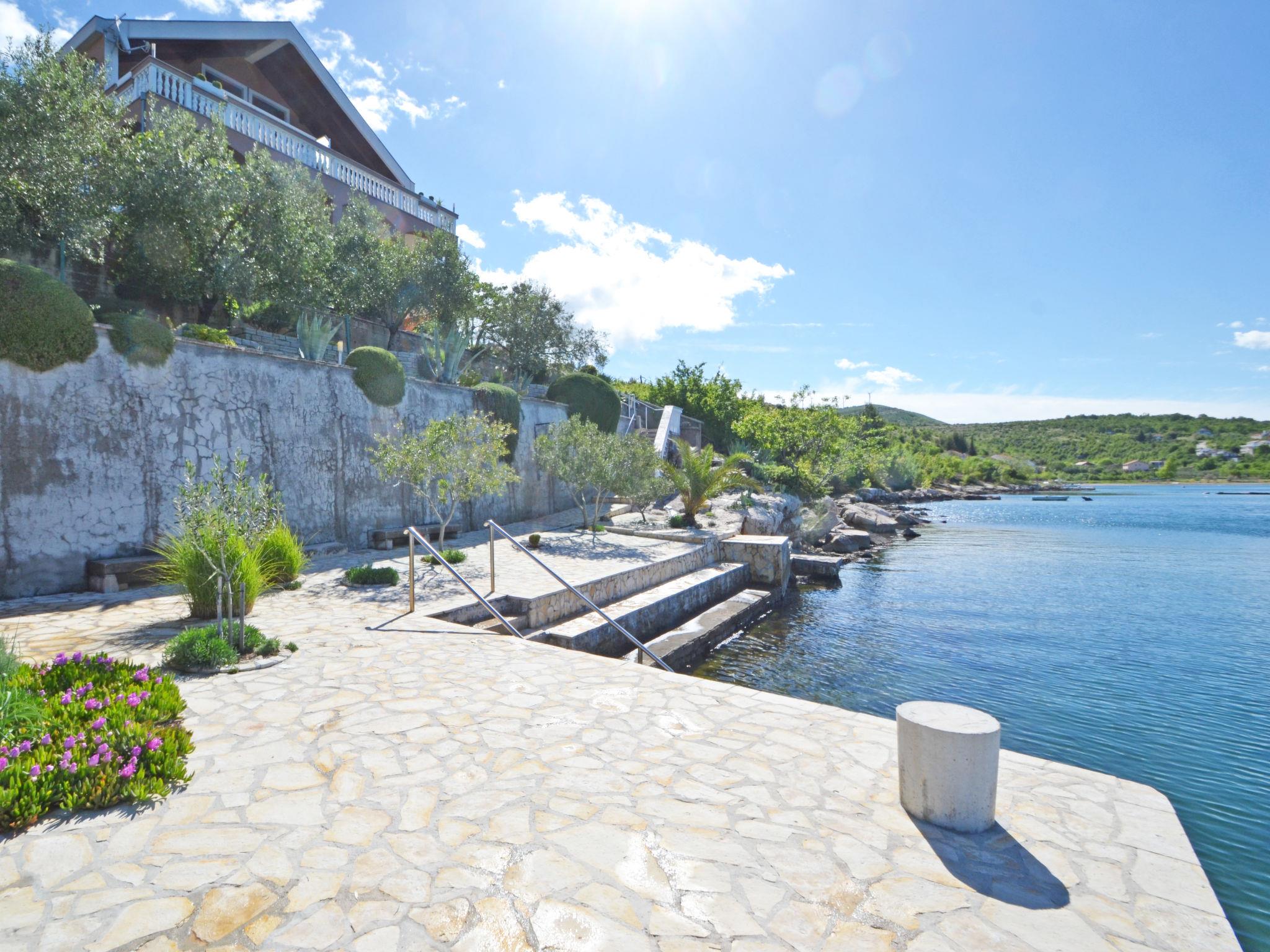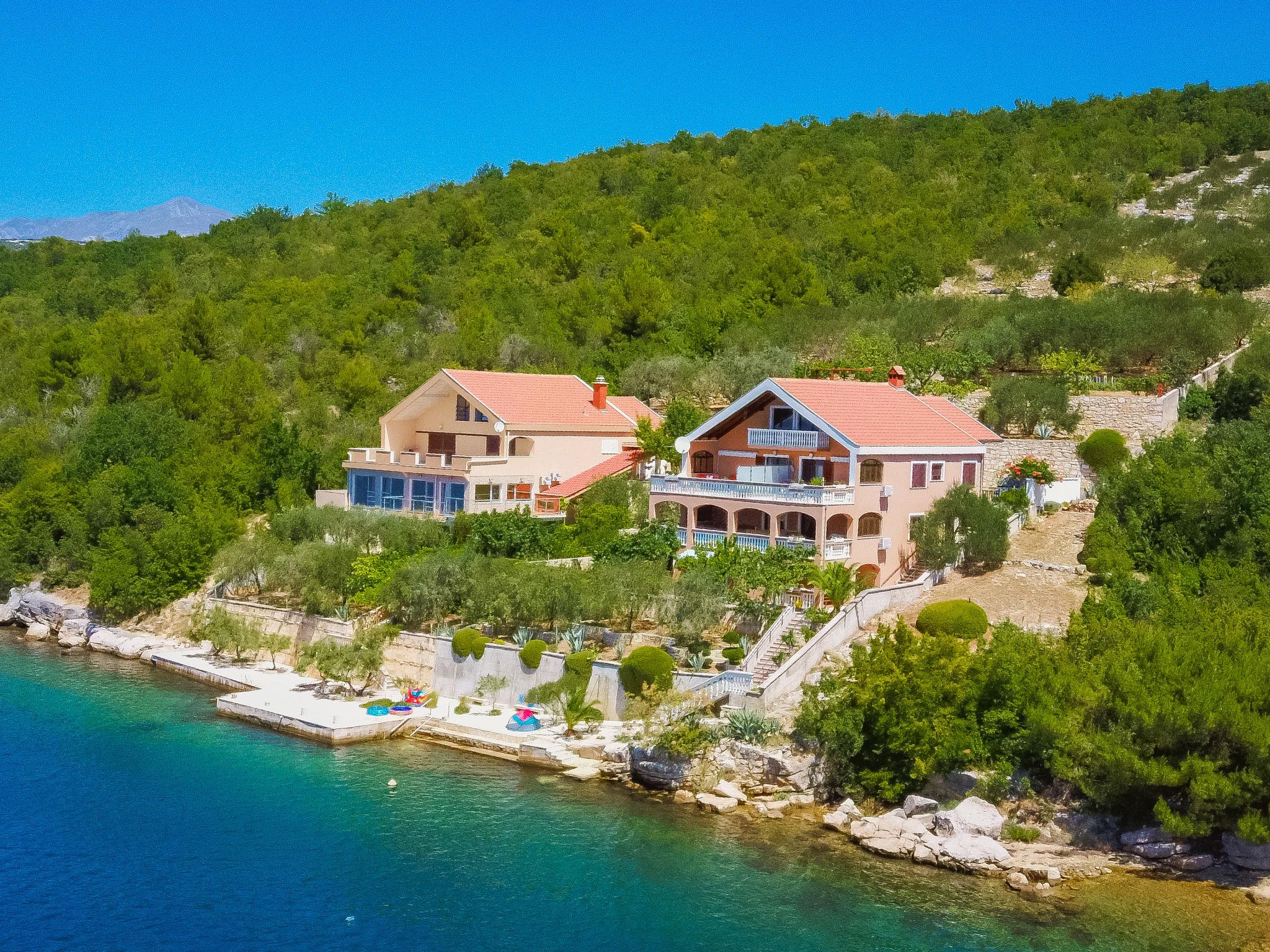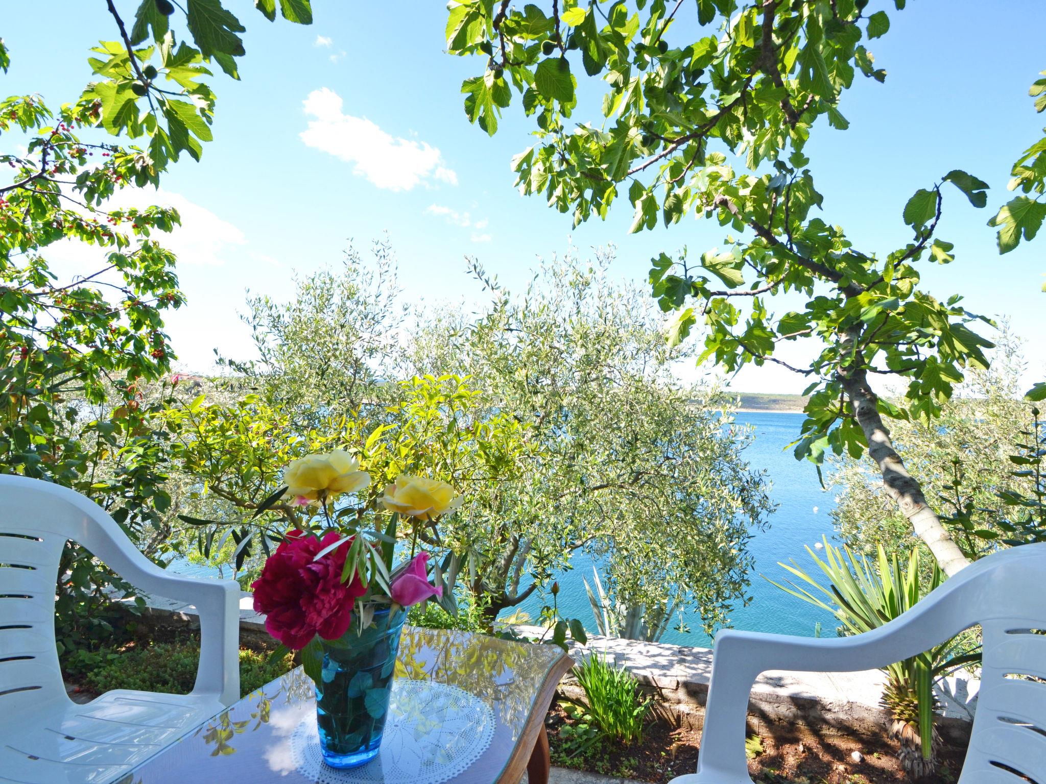 Ribnica 15 km from Novigrad: Apartment house "Ika". 8 km from the centre of Obrovac, in a quiet, sunny position on a slope, at the seaside, 15 m from the beach. For shared use: property 500 m2 (fenced), garden with lawn 50 m2, plants. Barbecue, children's playground (swing). In the house: internet access. Parking at the house on the premises. Shop 700 m, restaurant 1.5 km, bus stop 25.7 km, pebble beach 400 m, rocky beach, concrete beach 15 m. Please note: private mooring (extra) on request. Waterfront and concrete beach with outdoor shower in front of the house.
