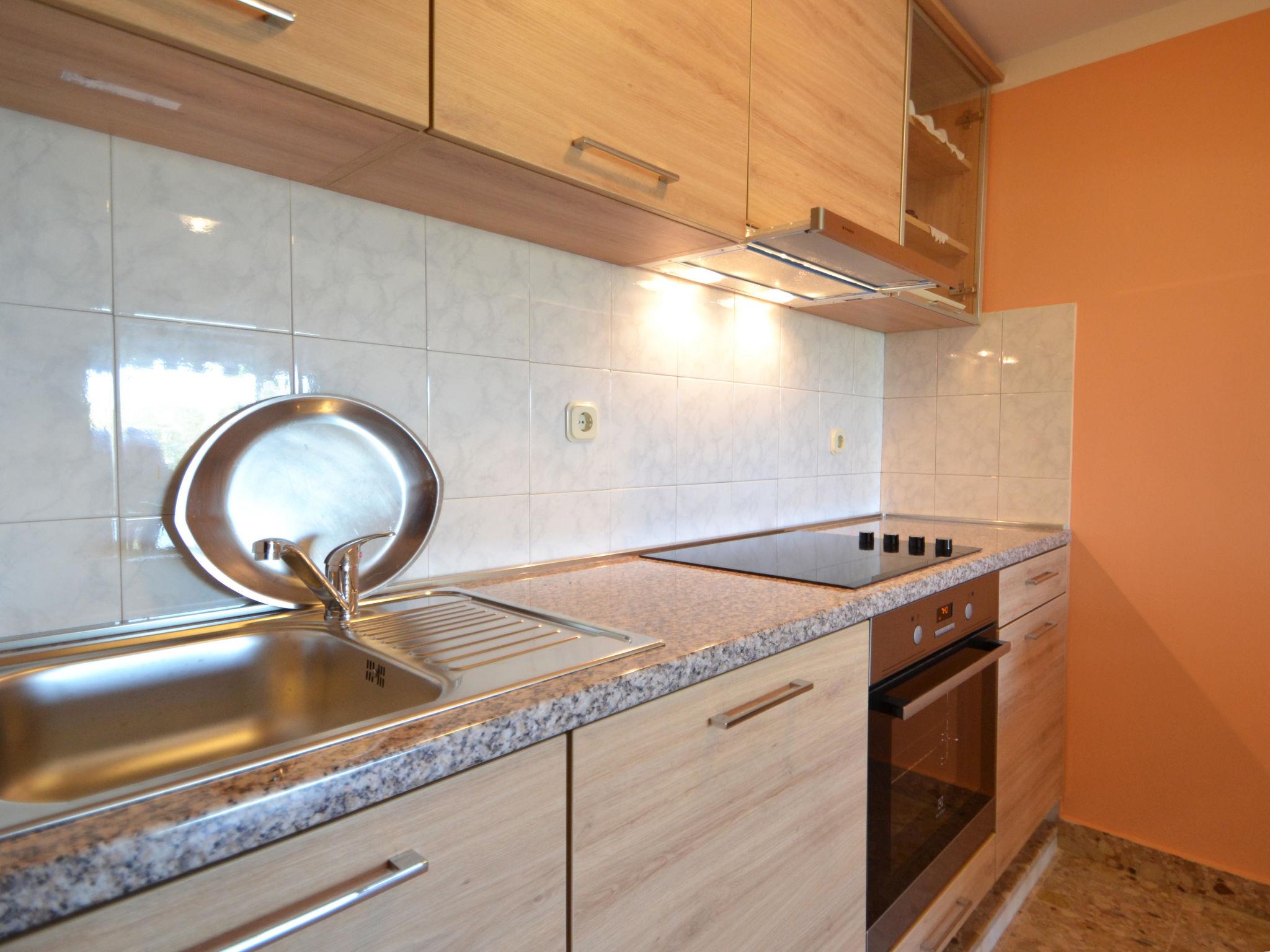 1-room apartment 25 m2, on the lower ground floor, south-west facing position. 1 room with 1 double bed (2 x 80 cm, length 200 cm). Dining room with satellite TV. Exit to the terrace. Open kitchen (oven, 4 ceramic glass hob hotplates). Shower/WC. No heating option. Terrace 6 m2, roofed. Terrace furniture. Facilities: Internet (WiFi, free). Parking (fenced).