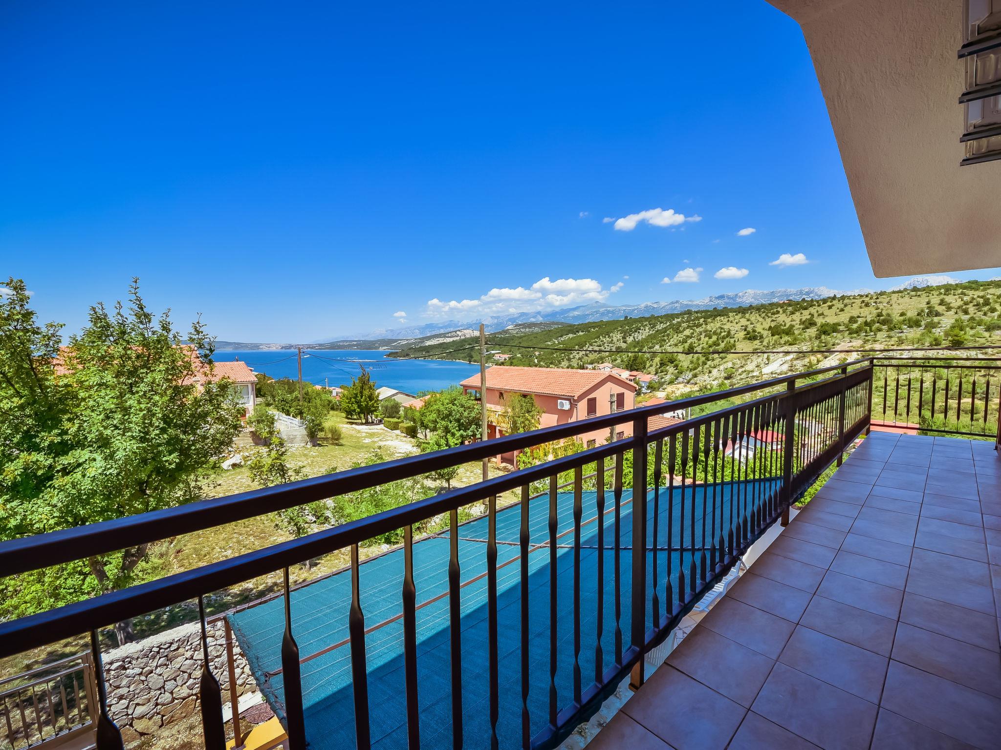 6-room house 150 m2 on 2 levels. Living/dining room 33 m2 with open-hearth fireplace, satellite TV and air conditioning. Exit to the terrace. 2 rooms, each room with 1 french bed (160 cm, length 200 cm). Open kitchen (4 hot plates, oven, dishwasher, freezer). Shower/WC. Upper floor: (exterior staircase) living room with 1 sofabed, satellite TV and air conditioning. Exit to the balcony. 1 room with 1 bed (90 cm, length 200 cm), 1 french bed (160 cm, length 200 cm). 1 room with 1 french bed (160 cm, length 200 cm). Open kitchen (2 hot plates) with dining table, air conditioning. Exit to the balcony. 2 showers/WC. Air-conditioning (extra). No heating option. Balcony 8 m2, large terrace 35 m2, terrace 16 m2. Terrace furniture. Very beautiful panoramic view of the sea and the countryside. Facilities: washing machine. Internet (WiFi, free). Maximum 2 pets/ dogs allowed. 2198-18-01/4-23-4