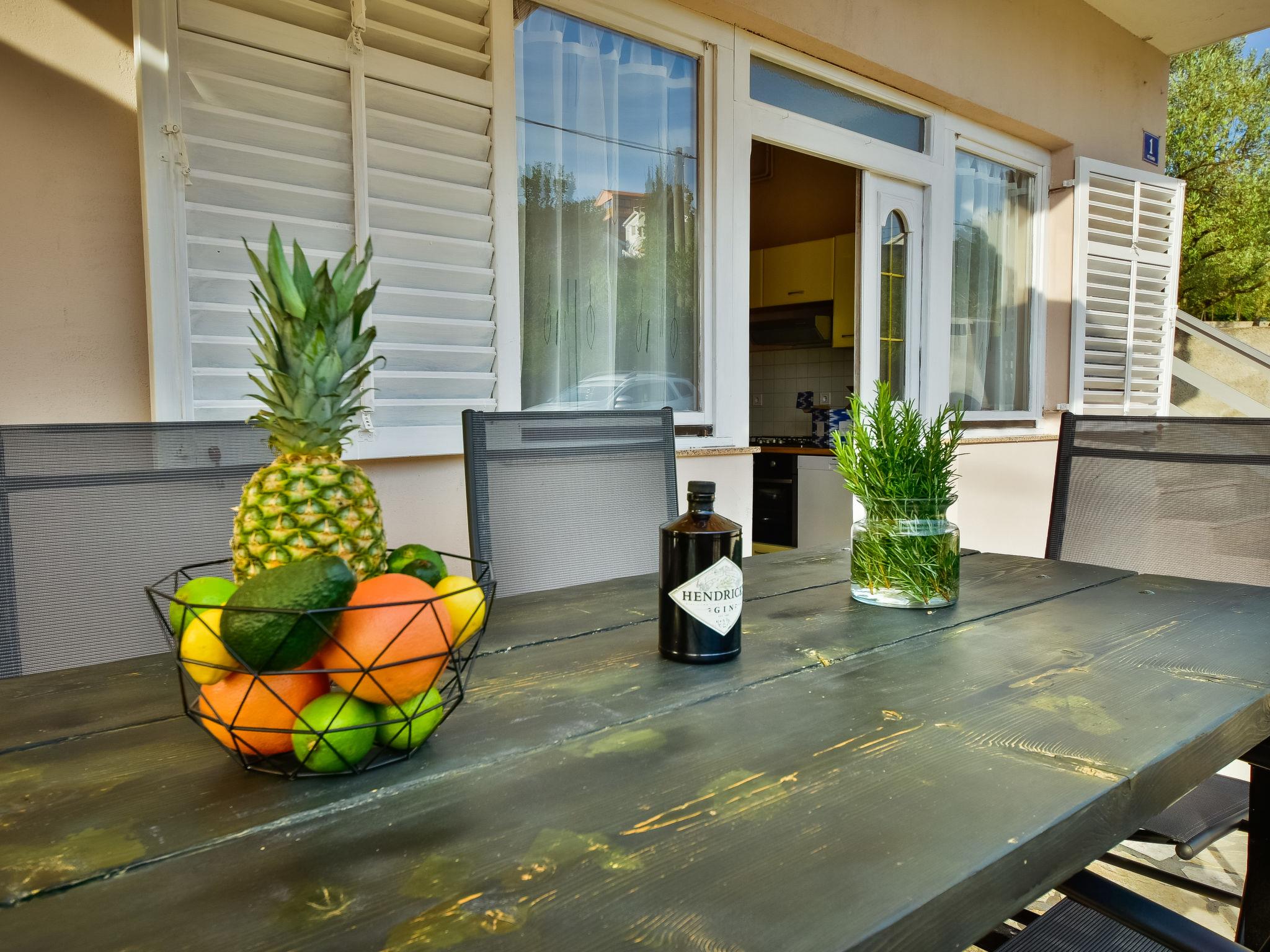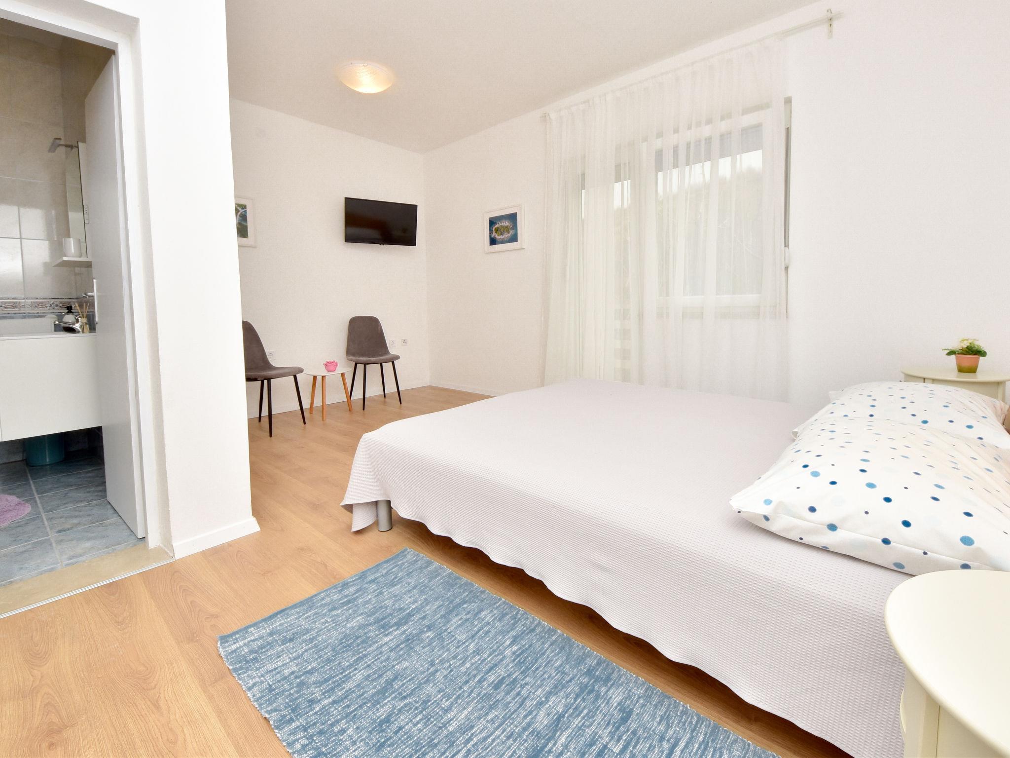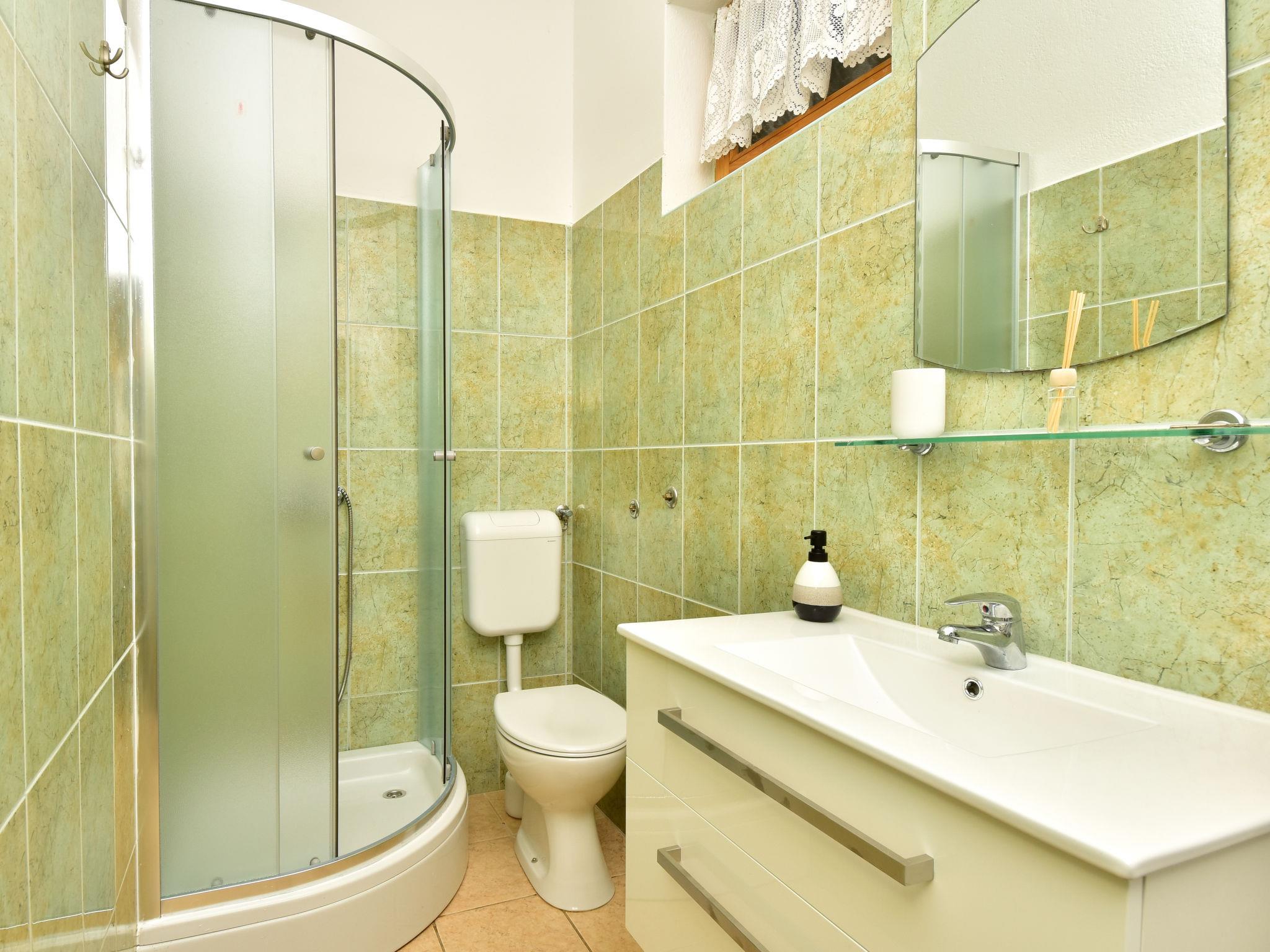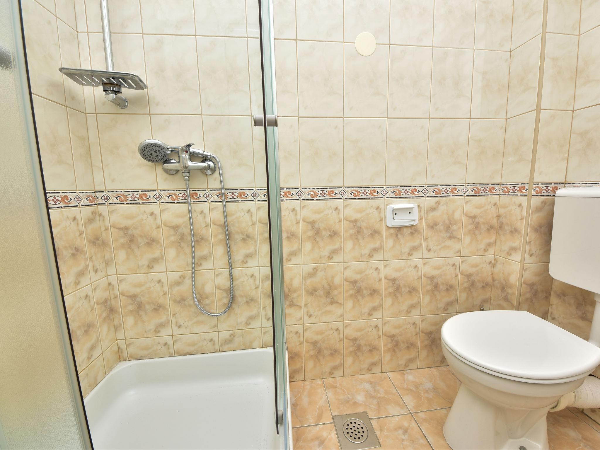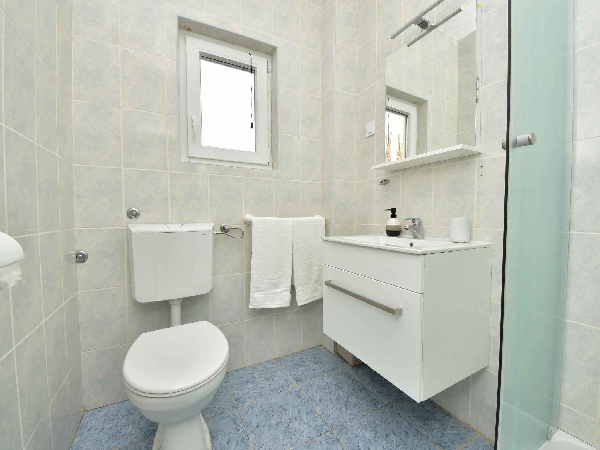 6-room house 150 m2 on 2 levels. Simple furnishings: living/dining room 35 m2 with satellite TV and air conditioning. Exit to the terrace. 1 room with 1 french bed (160 cm, length 200 cm). Open kitchen (4 hot plates, oven, dishwasher, microwave, freezer). Shower/WC. No heating option. Upper floor: entrance hall with air conditioning. 1 room with 2 beds (80 cm, length 190 cm), shower/WC and satellite TV. Exit to the balcony. 1 room with 1 sofabed (120 cm, length 200 cm), 1 french bed (160 cm, length 200 cm), shower/WC. Exit to the balcony. 1 room with 2 beds (80 cm, length 200 cm), shower/WC and satellite TV. Exit to the balcony. 1 room with 1 sofabed (120 cm, length 200 cm), 1 double bed (2 x 80 cm, length 200 cm), shower/WC and satellite TV. Exit to the balcony. Balcony 12 m2, balcony 12 m2, large terrace 30 m2 partly roofed terrace 15 m2. Terrace furniture. View of the sea. Facilities: children's high chair, baby cot. Internet (WiFi, free). Please note: maximum 1 pet/ dog allowed. Fire extinguisher. klasa:UP/i-335-03/20-01/1104 urbroj : 2198/1-19-0