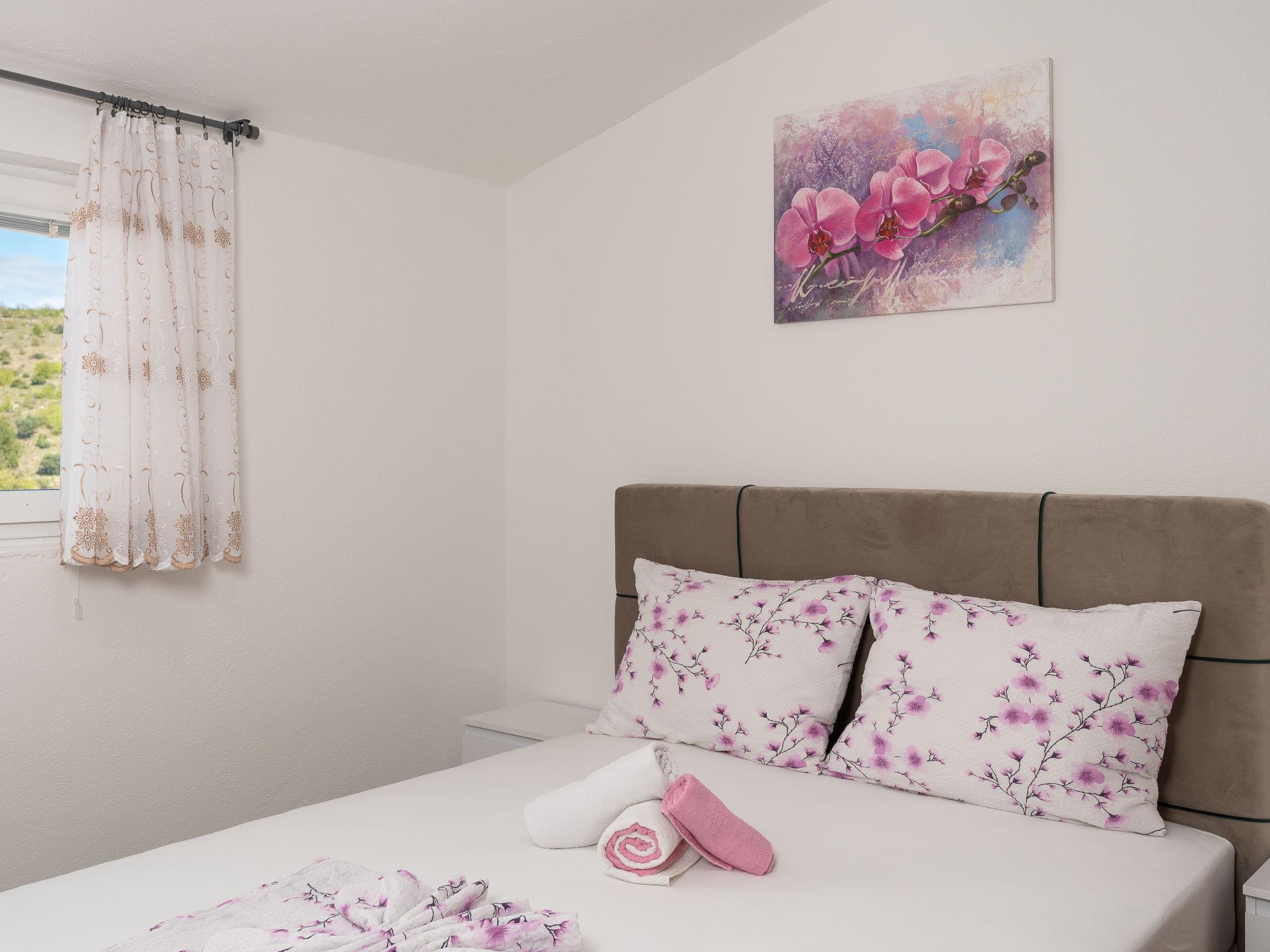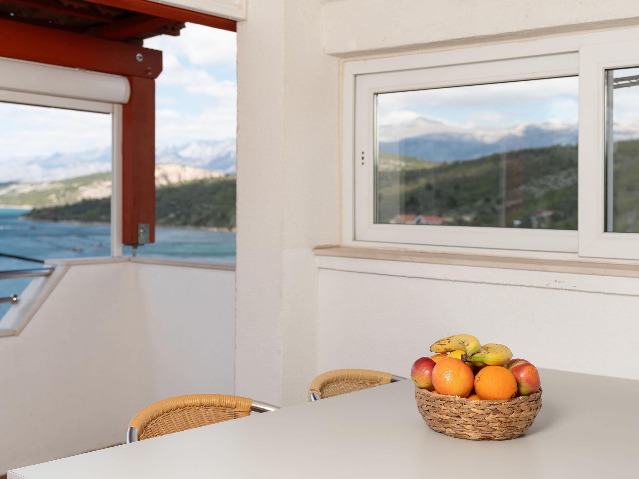 Ribnica 15 km from Novigrad: 3-family house "Mia". 12 km from the centre of Obrovac, in a quiet, sunny, elevated position, 80 m from the sea, 80 m from the beach. For shared use: property 160 m2 (fenced). Garden furniture, barbecue. In the house: internet access. Parking at the house on the premises. Shop 1 km, restaurant 1 km, bus stop 25.1 km, pebble beach 80 m. Access to the beach via 30 steps.