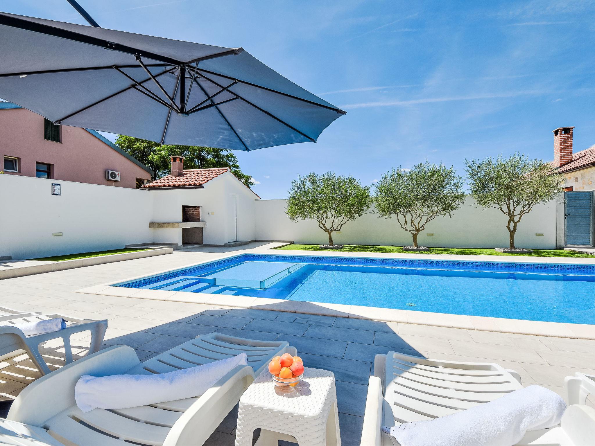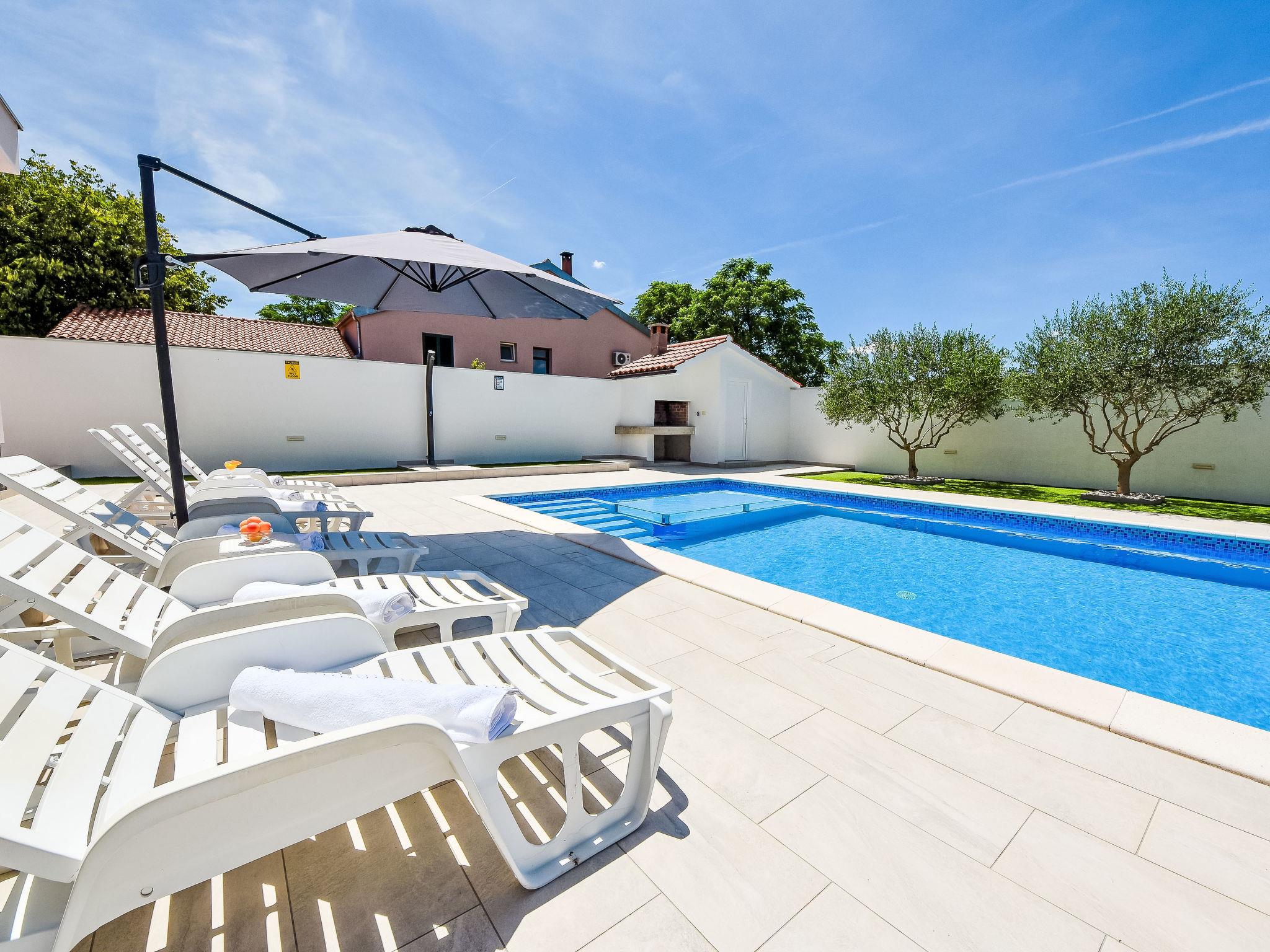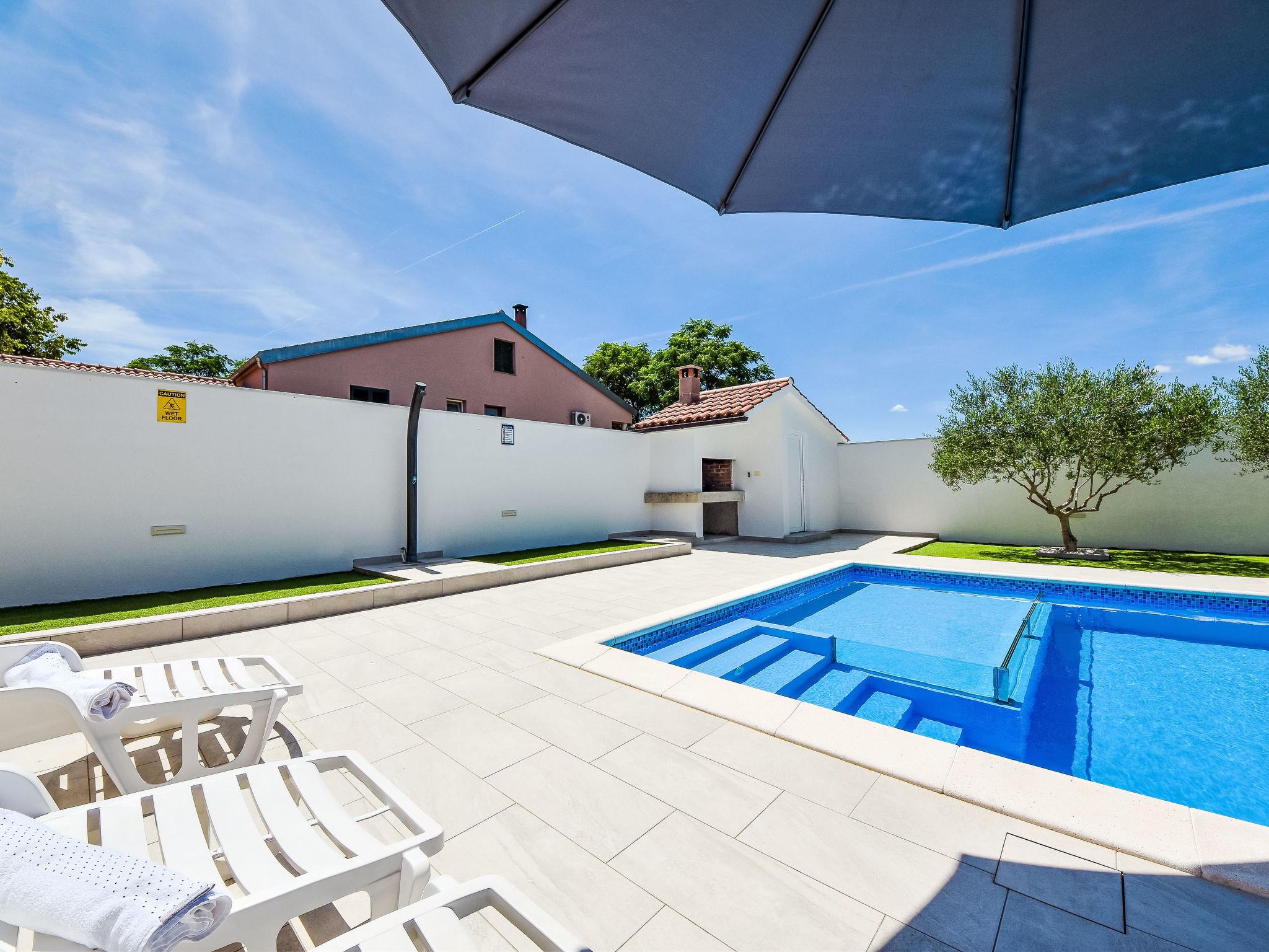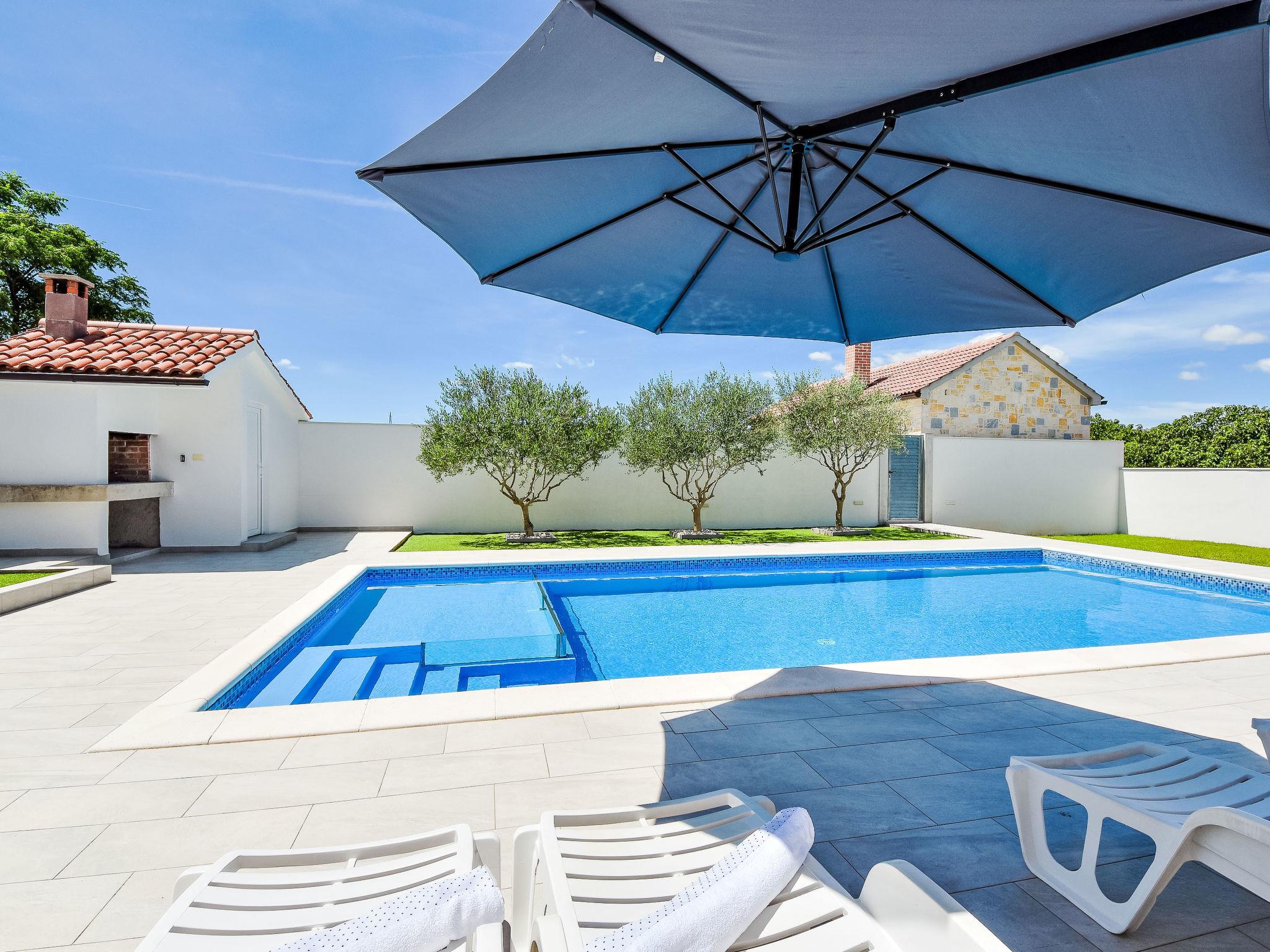 Smilcic 9 km from Novigrad: Single-family house "Anic". In a quiet, sunny position, 9 km from the sea. Private: property 800 m2, swimming pool angular (8 x 4 m, depth 140 cm, seasonal availability: 04.May. - 05.Oct.) with internal staircase. Outdoor shower, barbecue. In the house: internet access, washing machine. Parking (for 2 cars) at the house on the premises, single garage. Shop 200 m, restaurant 9 km, bus stop 13.8 km, shingle beach 9 km. The owner does not accept any youth groups. Possibility of trips by house owner's boat (on request, extra).