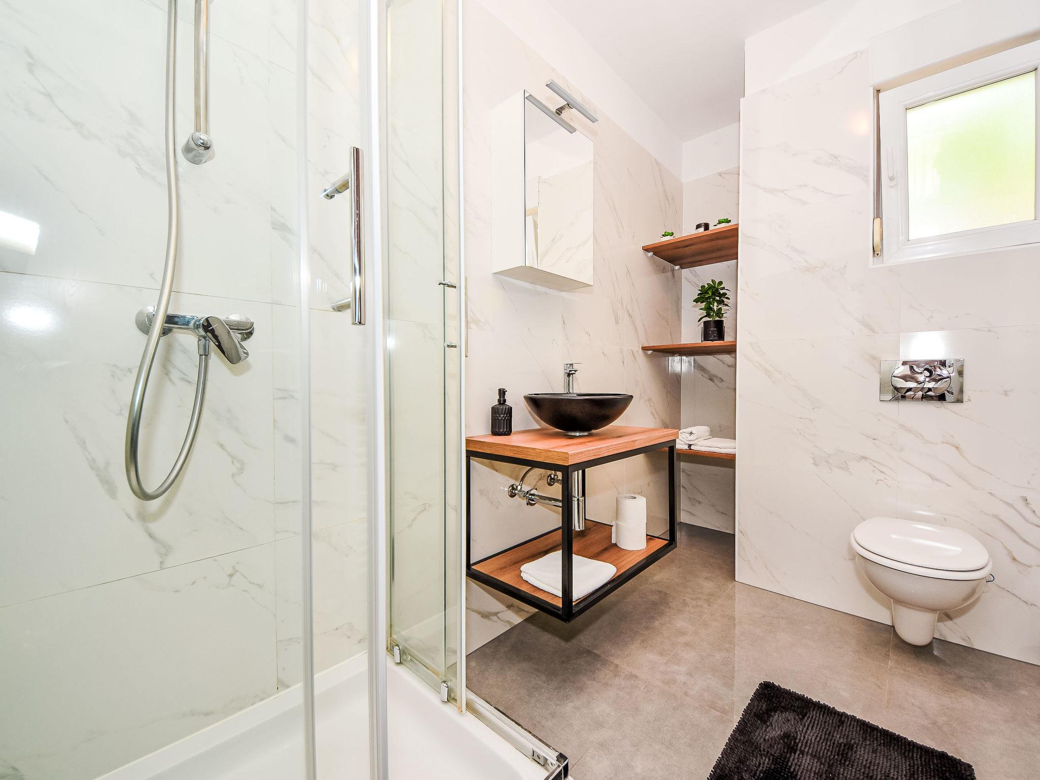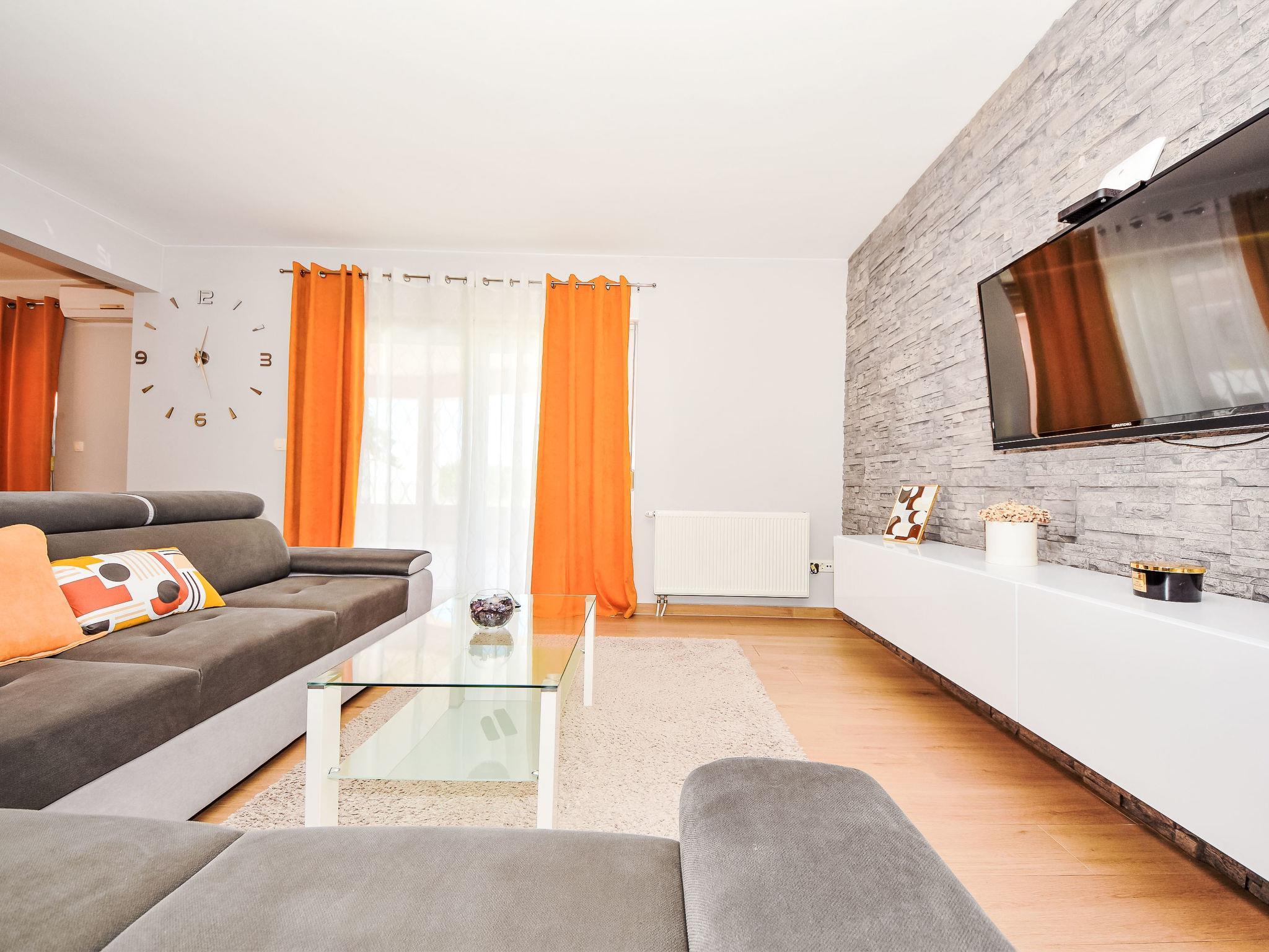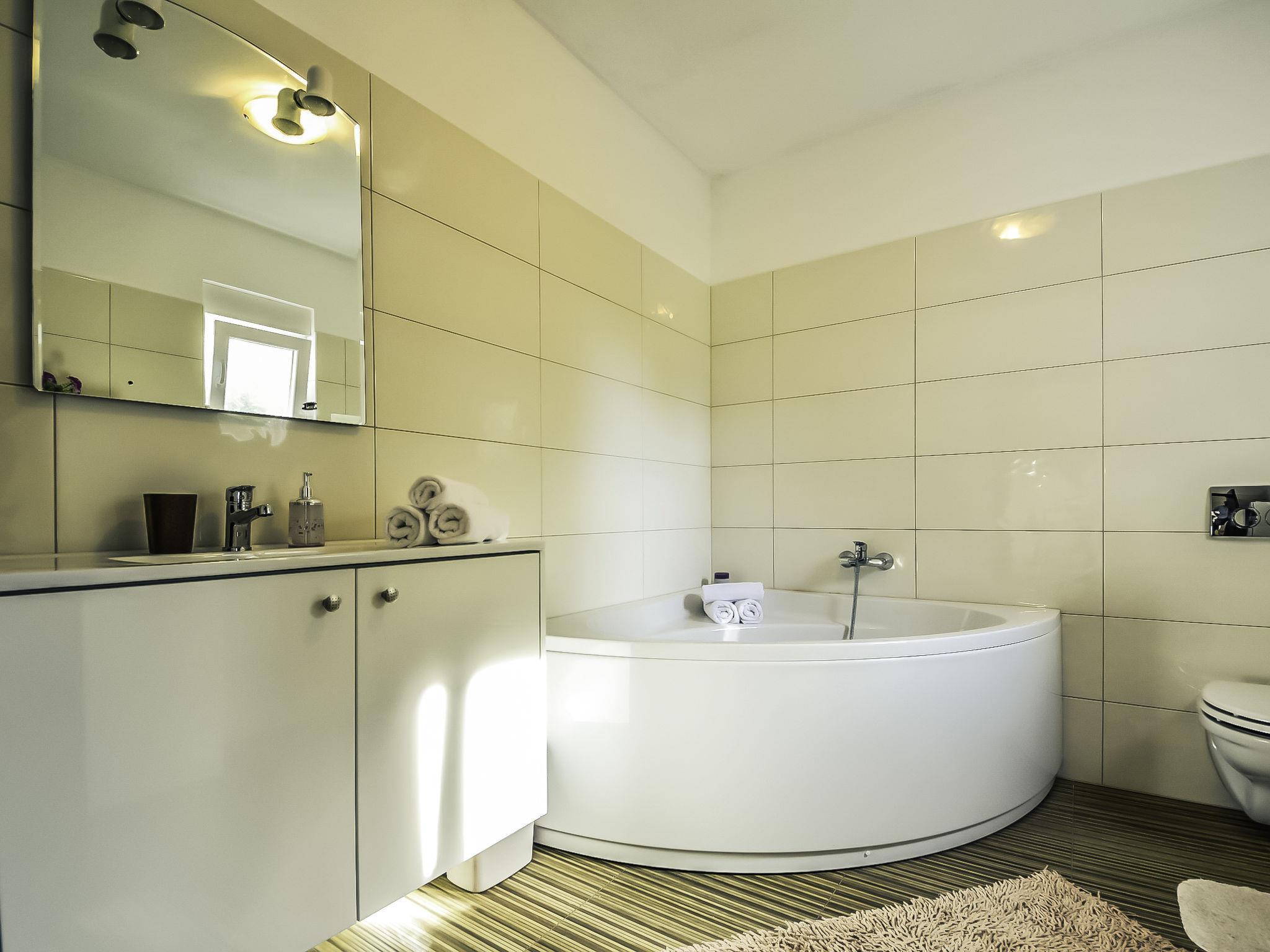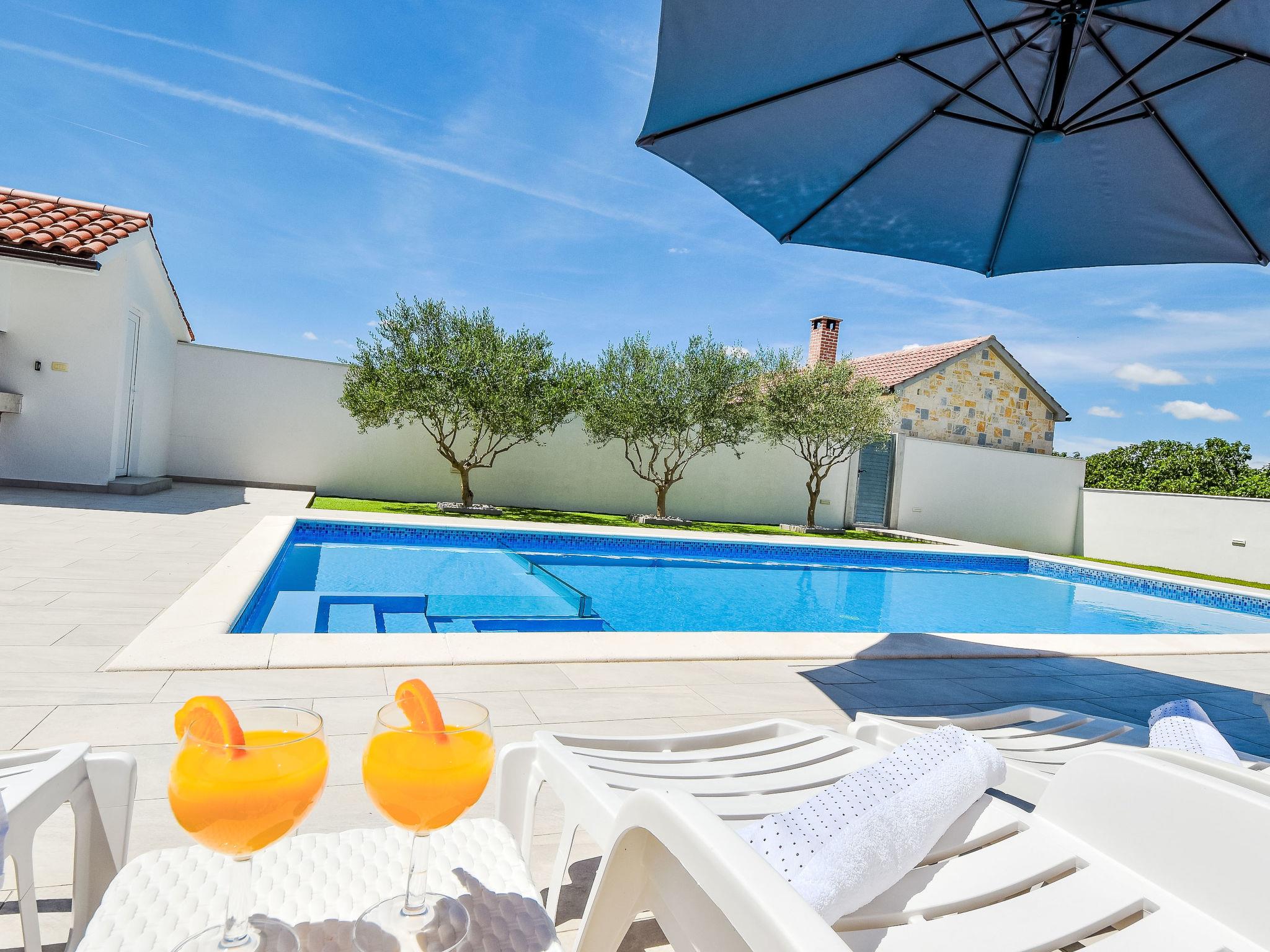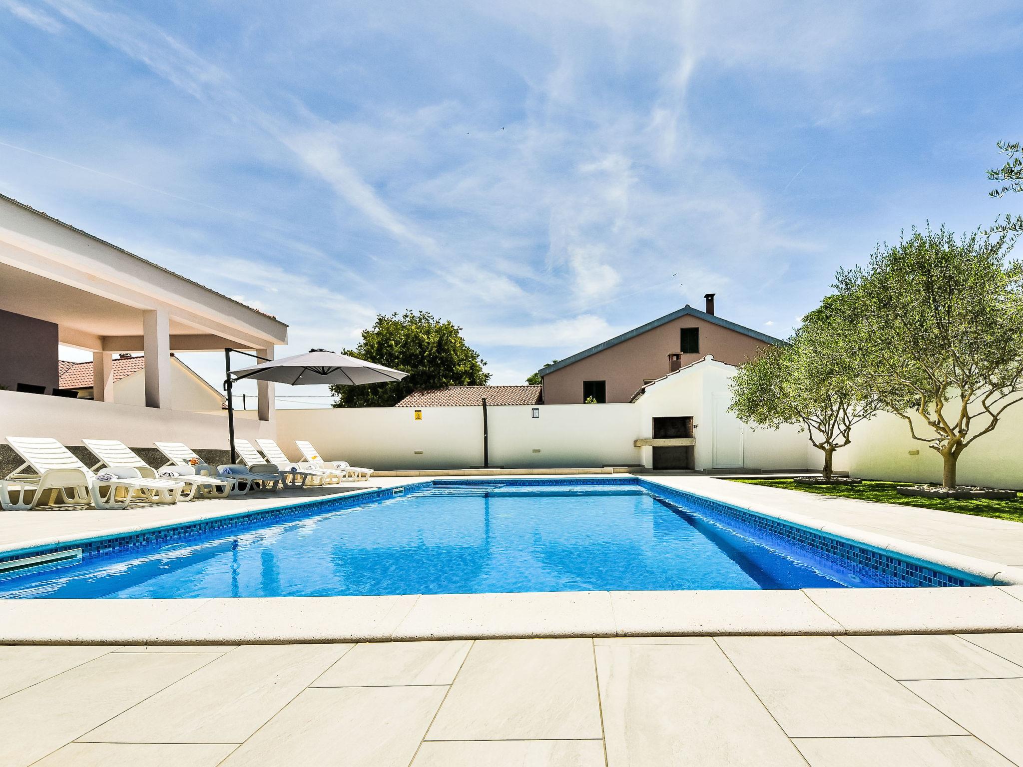 Smilcic 9 km from Novigrad: Single-family house "Anic". In a quiet, sunny position, 9 km from the sea. Private: property 800 m2, swimming pool angular (8 x 4 m, depth 140 cm, seasonal availability: 04.May. - 05.Oct.) with internal staircase. Outdoor shower, barbecue. In the house: internet access, washing machine. Parking (for 2 cars) at the house on the premises, single garage. Shop 200 m, restaurant 9 km, bus stop 13.8 km, shingle beach 9 km. The owner does not accept any youth groups. Possibility of trips by house owner's boat (on request, extra).