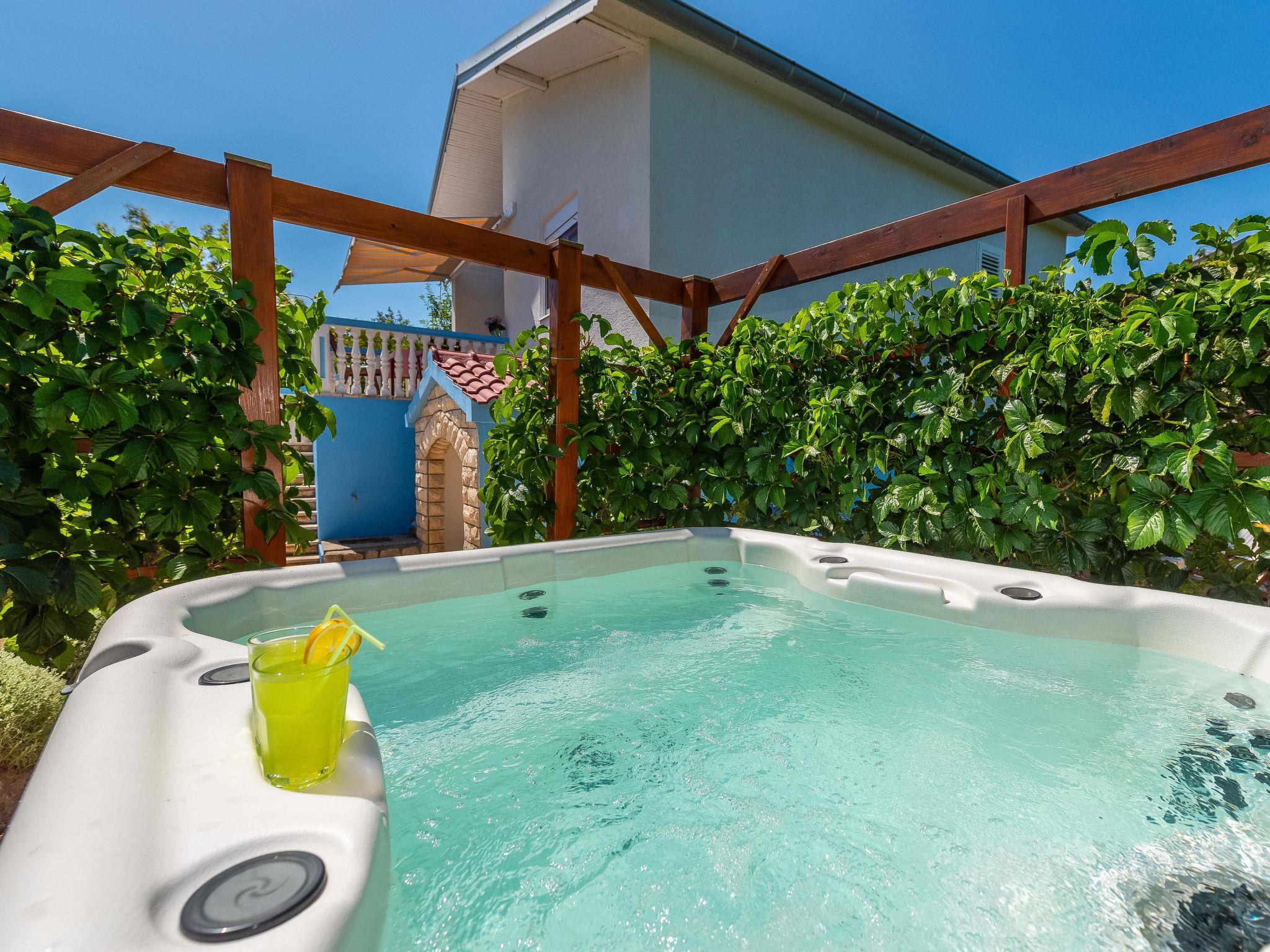 Pridraga 5 km from Novigrad: Beautiful single-family house "Milka", 2 storeys, surrounded by trees. In the hamlet Cuskijaš, in a sunny position, 40 m from the sea, 40 m from the beach, in the countryside, east facing position. Private: well-kept garden (fenced) with wildlife garden. Outdoor shower, hot tub, barbecue house. In the house: internet access, washing machine. Available: bicycles (2). Roofed, parking (for 2 cars) at the house. Shop 1 km, restaurant 1.5 km, bus stop 17.2 km, pebble beach, shingle beach 40 m. Walking paths from the house 20 m, cycle lane 30 m. The area is suitable for windsurfing.