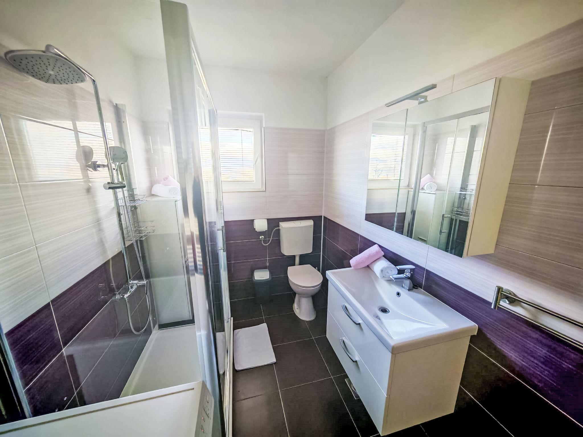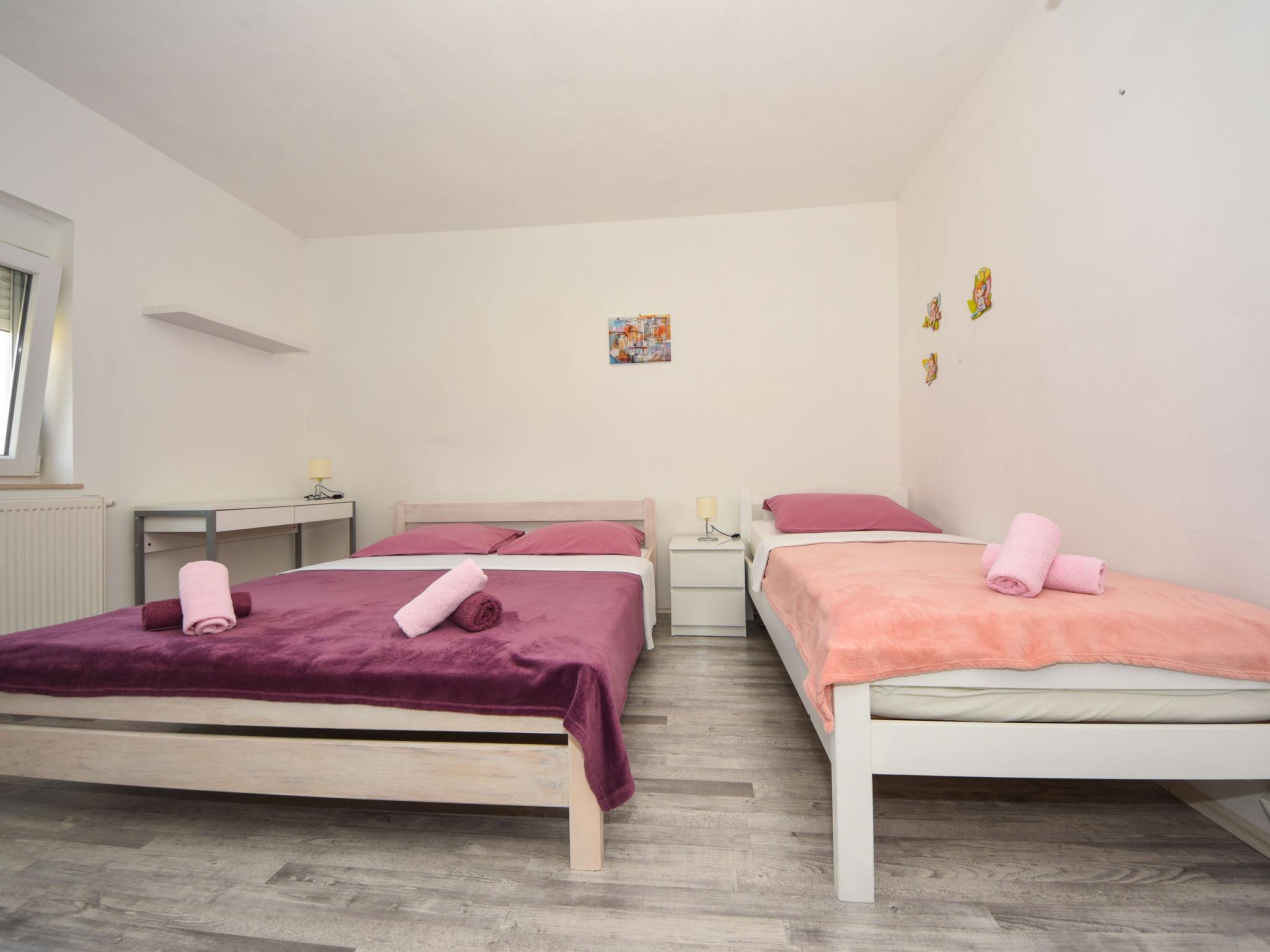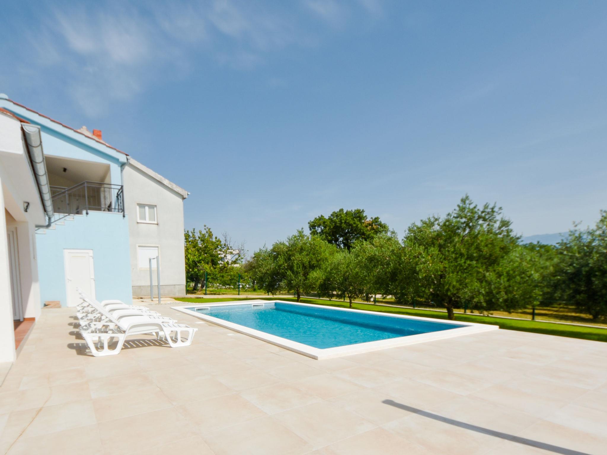 Podgradina 8 km from Novigrad: Terraced house "Elena". 7 km from the centre of Posedarije, in a sunny, elevated position, 2.2 km from the sea, 2.2 km from the beach. Private: property 450 m2 (fenced), swimming pool angular (8 x 4 m, depth 150 cm, seasonal availability: 04.May. - 05.Oct.). WC in the pool area, garden furniture, barbecue house, pool maintenance by the owner/gardener. In the house: internet access. Parking (for 2 cars) at the house on the premises. Shop 750 m, supermarket 6 km, restaurant 5 km, bus stop 500 m, sandy beach 4 km, shingle beach 2.2 km. Nearby attractions: NP Paklenica 30 km, NP Krka 80 km. Groups of teenagers on request only. Please note: the owner lives on the same property.