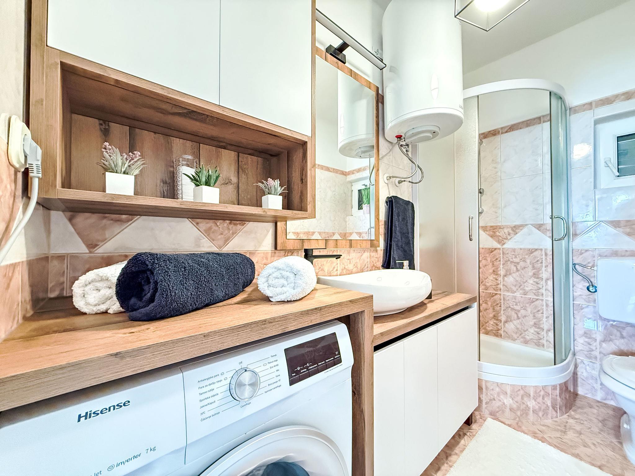 Single-family house "Karlo". 7 km from the centre of Posedarje, in a quiet, sunny position, 2 km from the sea, 2.2 km from the beach. Private: property 1'200 m2, swimming pool (8 x 4 m, depth 150 cm, seasonal availability: 01.May. - 01.Oct.). Outdoor shower, table tennis, garden furniture, barbecue. In the house: internet access, trampoline, washing machine. Parking (for 3 cars) at the house on the premises. Shop 750 m, supermarket 6 km, restaurant 4.5 km, bus stop 6.1 km, sandy beach 4 km. Nearby attractions: Np Paklenica 30 km, Np Krka 80 km.