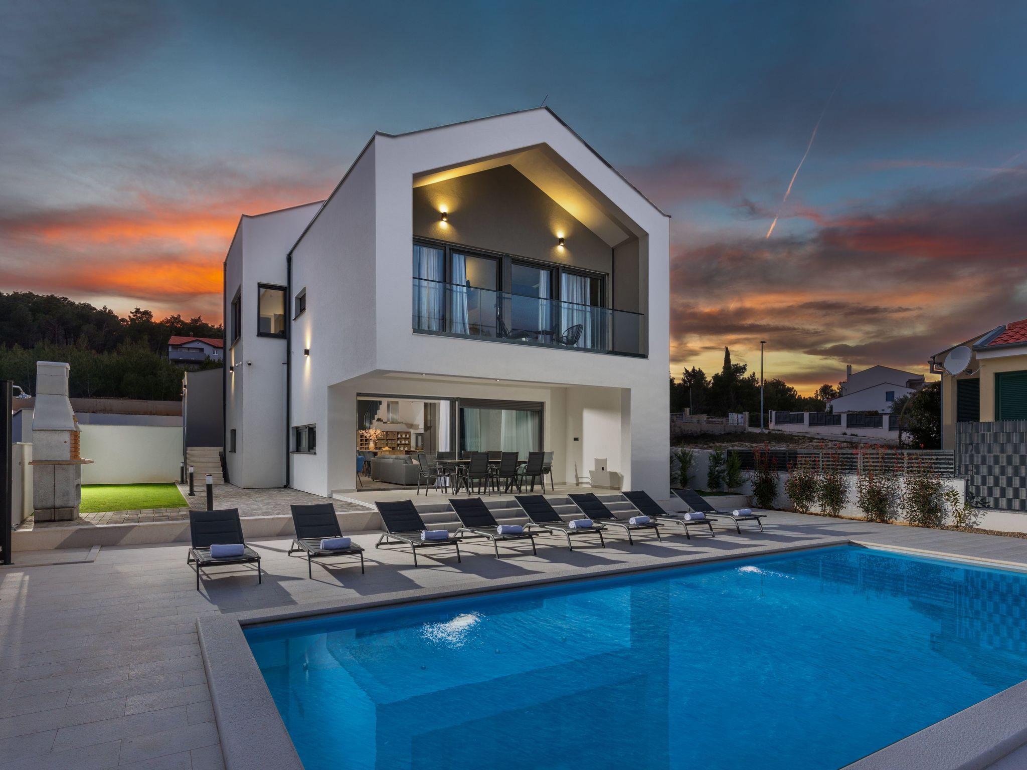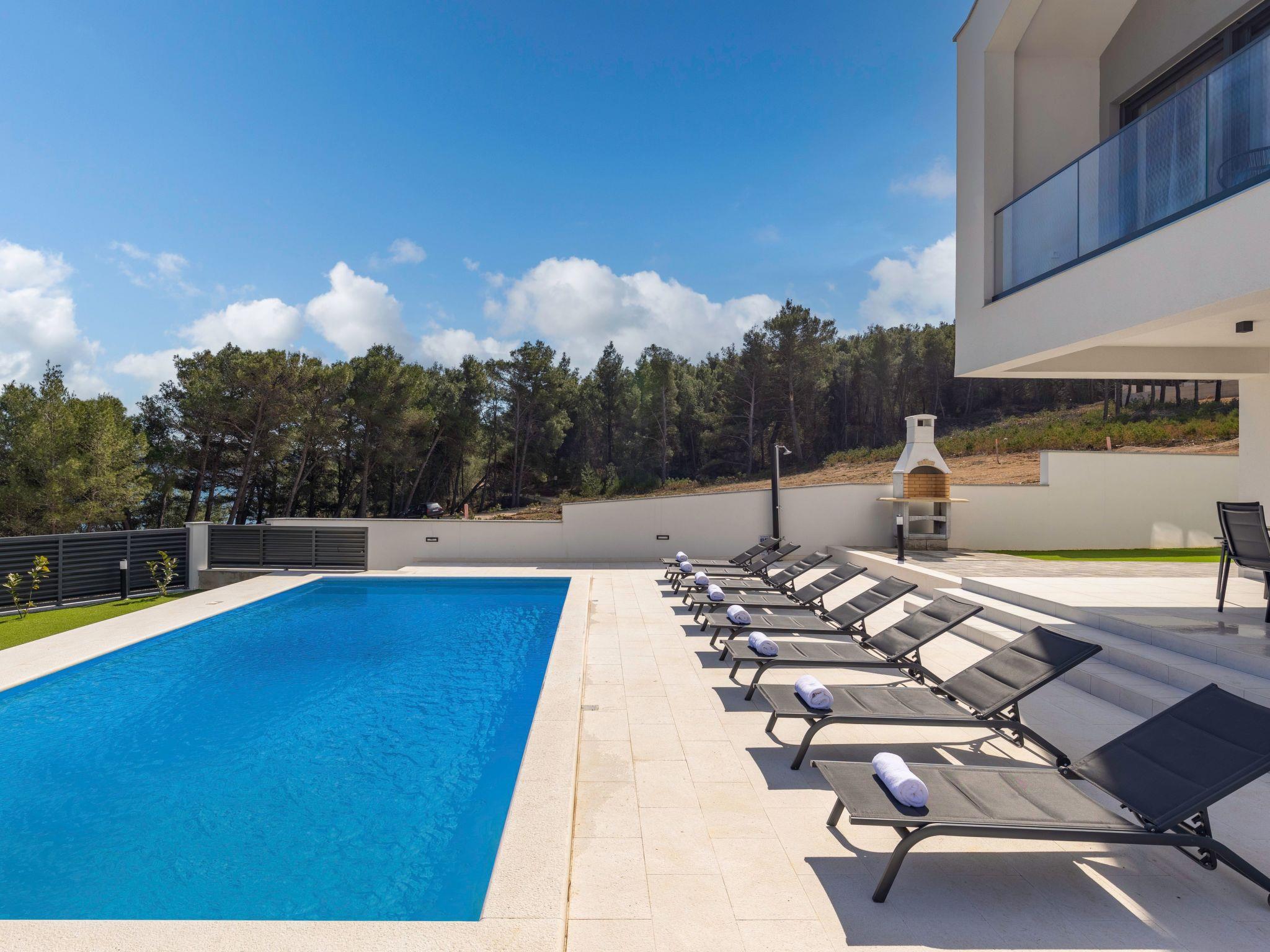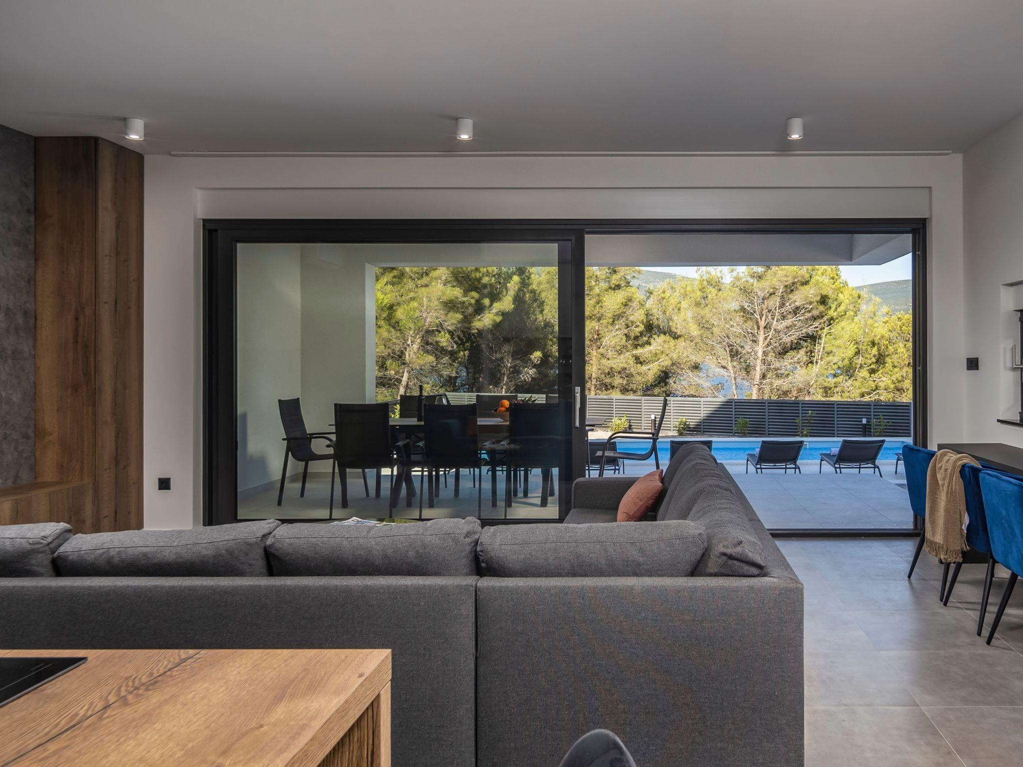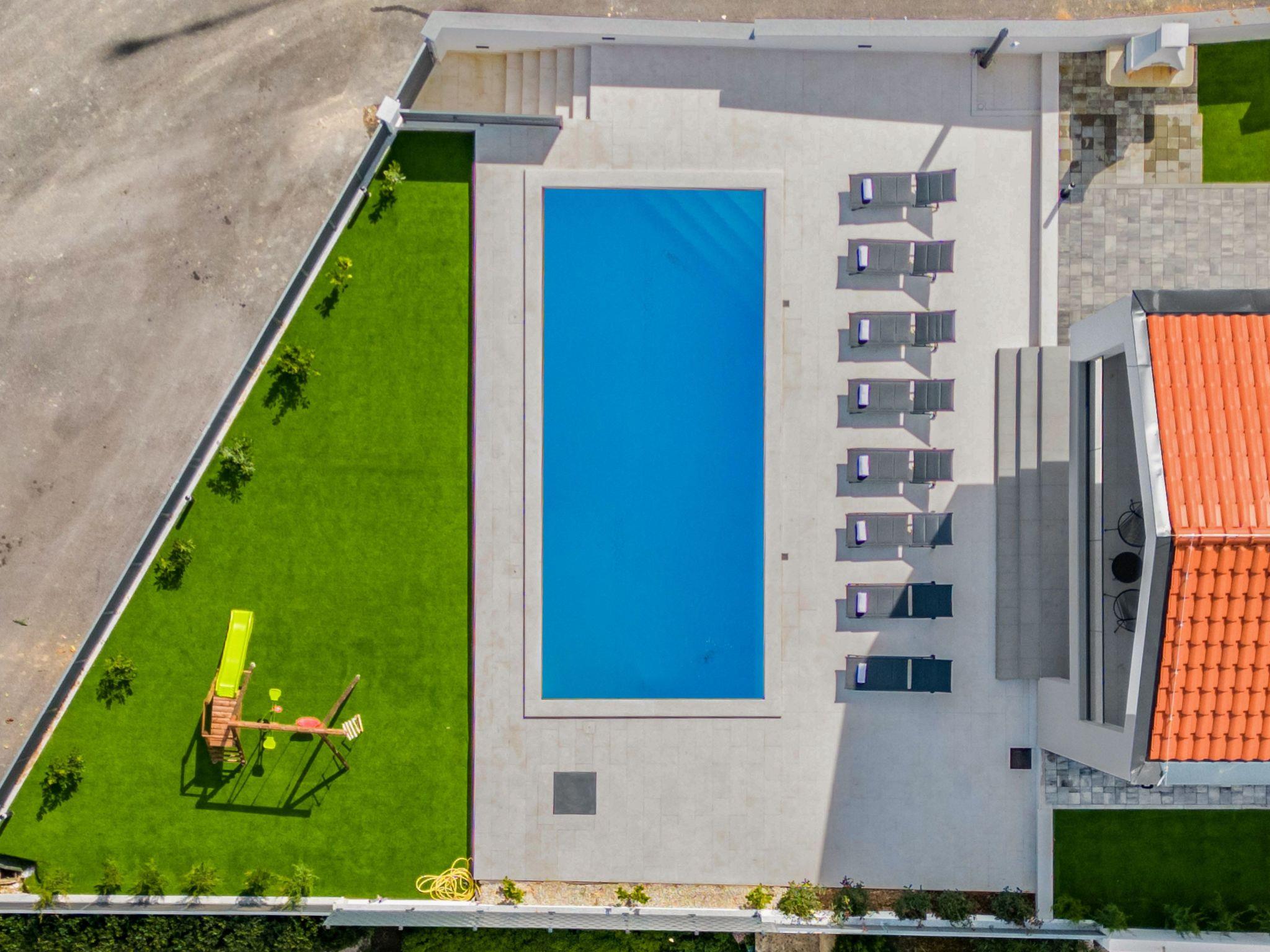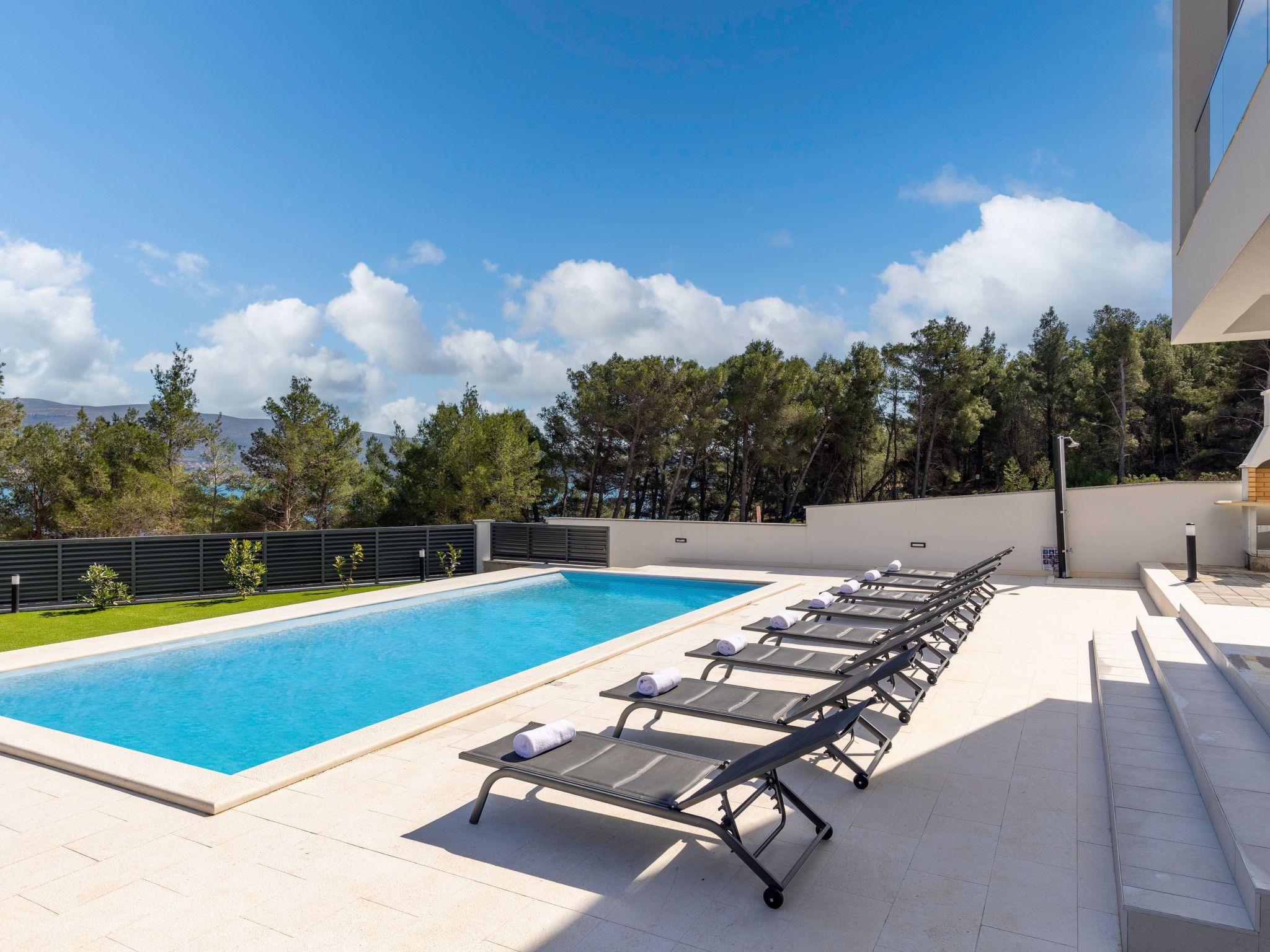 The outdoor area of this property is equally impressive. A swimming pool, reserved exclusively for your use, promises endless fun and relaxation under the sun. The spacious terrace and the private garden invite you to enjoy leisurely afternoons or dine al fresco while cherishing the serene ambiance of the Dalmatian landscape.