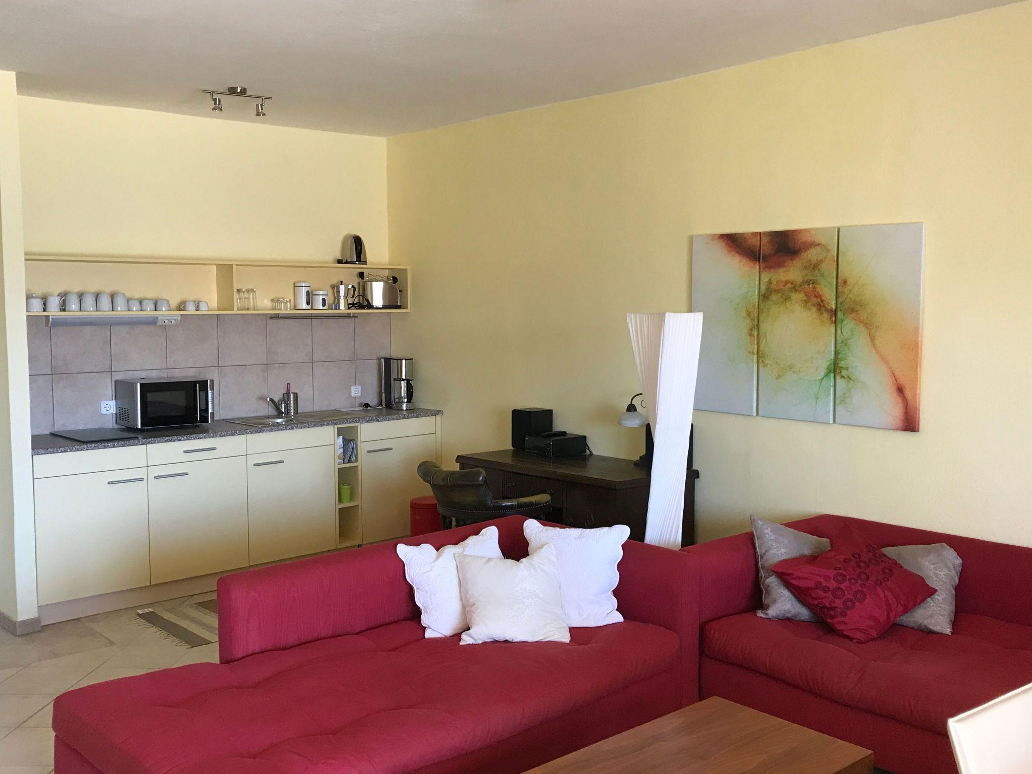 The 51 m² ground floor flat can accommodate up to four people. Children from 3 years are welcome. It is a studio (sleeping, living and dining area are one room). There are high-quality and comfortable sofa beds for two people. (with slatted frame and mattress)