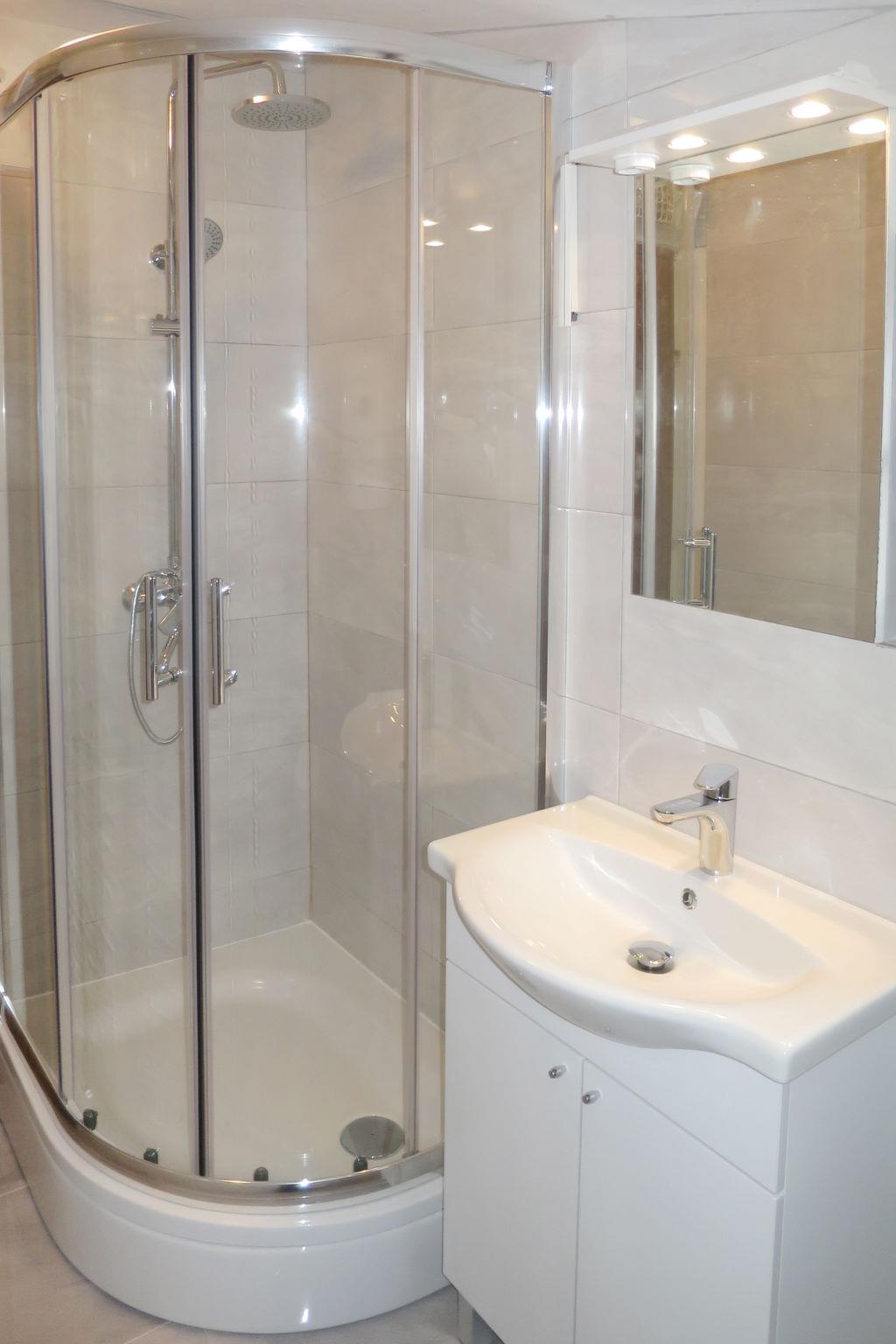 5-room house 150 m2 on 2 levels. Living/dining room with TV (flat screen), air conditioning. Exit to the terrace. 2 rooms, each room with 1 french bed (180 cm, length 200 cm). Open kitchen (oven, dishwasher, 4 gas rings, kettle, electric coffee machine). Shower/WC, sep. WC. Upper floor: entrance hall with air conditioning. 1 room with sloping ceilings, ceiling height 175 - 280 cm with 1 french bed (180 cm, length 200 cm). 1 room with sloping ceilings, ceiling height 175 - 260 cm with 1 bed (90 cm, length 200 cm), 1 double bed (2 x 90 cm, length 200 cm). Shower/WC. No heating option. Balcony 15 m2, terrace 15 m2, roofed. Terrace furniture, barbecue, deck chairs (6). Facilities: Internet (WiFi, free). Maximum 1 pet/ dog allowed.