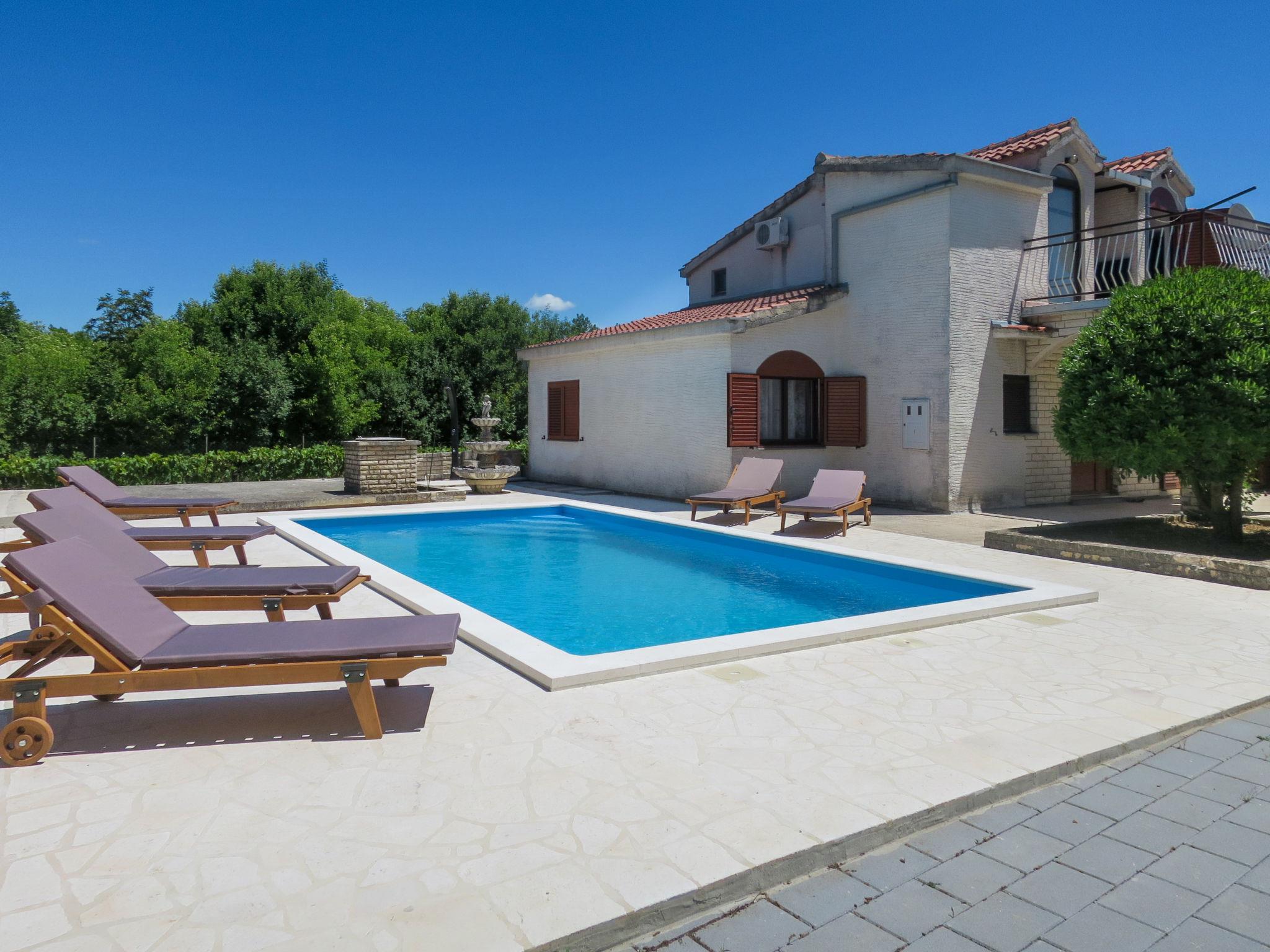 Pridraga 5 km from Novigrad: Single-family house "Culina", 2 storeys. 1.1 km from the centre of Pridraga, in a sunny position, 1.9 km from the sea, 1.9 km from the beach. Private: property 3'000 m2 (fenced), wildlife garden and trees, swimming pool angular, heated (8 x 4 m, depth 150 cm, seasonal availability: 01.Apr. - 01.Nov.) with internal staircase. Outdoor shower, table tennis, barbecue (swing), pool maintenance by the owner/gardener. In the house: internet access, billiard table, table football, washing machine. Parking (for 5 cars) at the house on the premises. Shop 500 m, bus stop 15.4 km, pebble beach 1.9 km. Please note: airfield 38 km from the property.